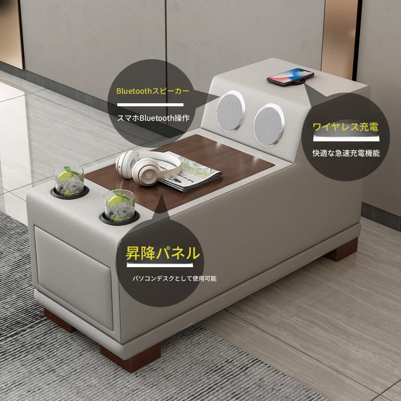 【中厚皮】ダブル+シングル+高級+フットレスト+エッジ付きテーブル