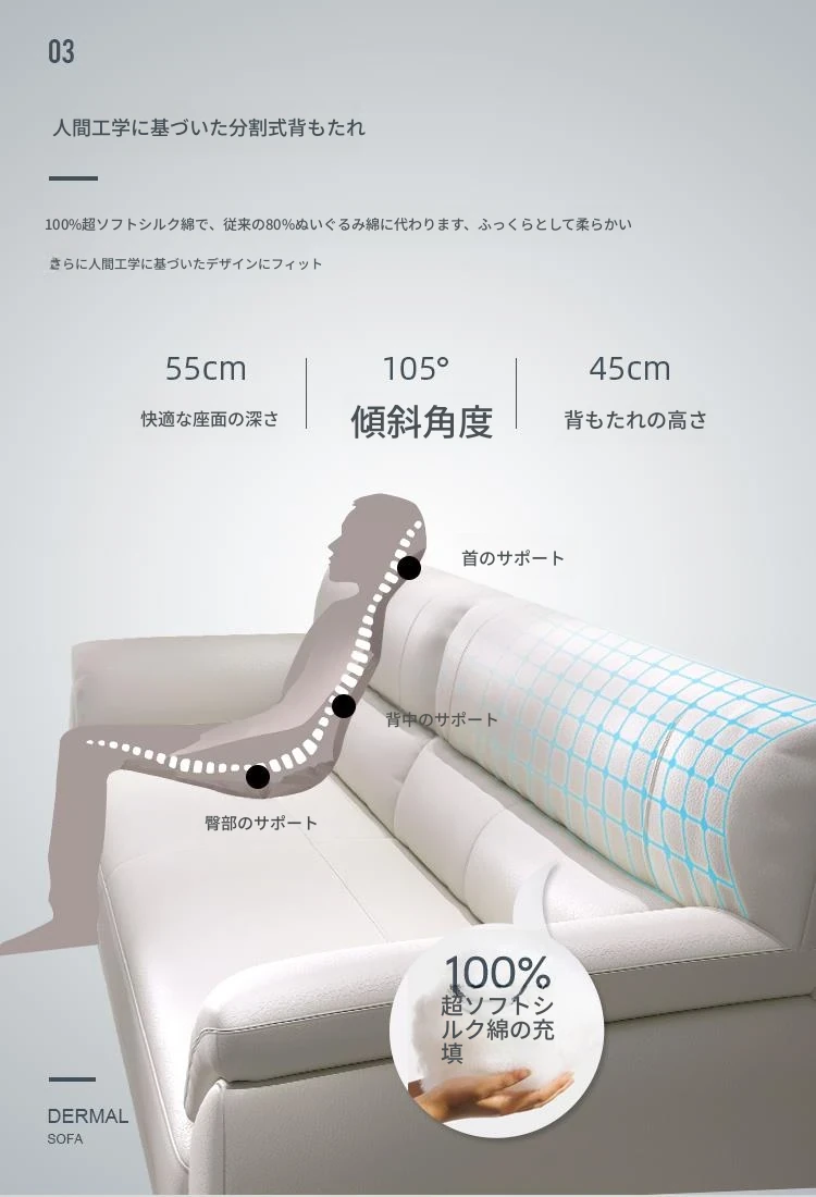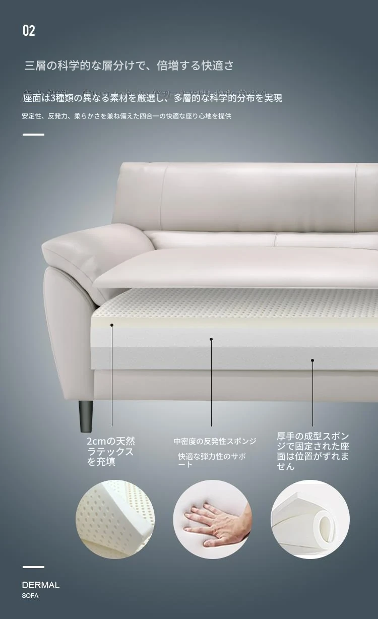 4人掛け2.1メートル-厳選本革 ラテックスマット