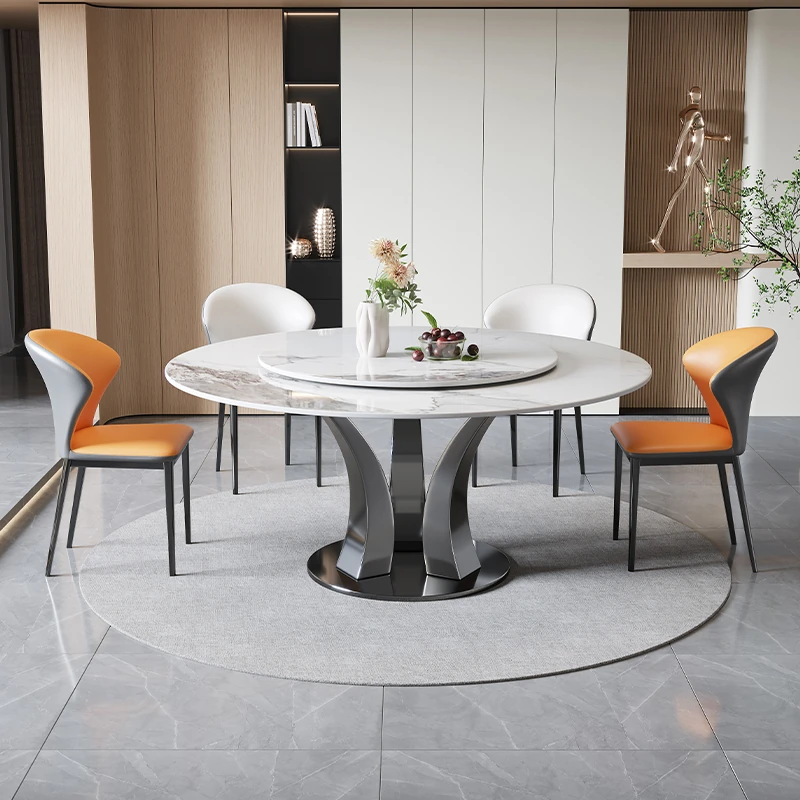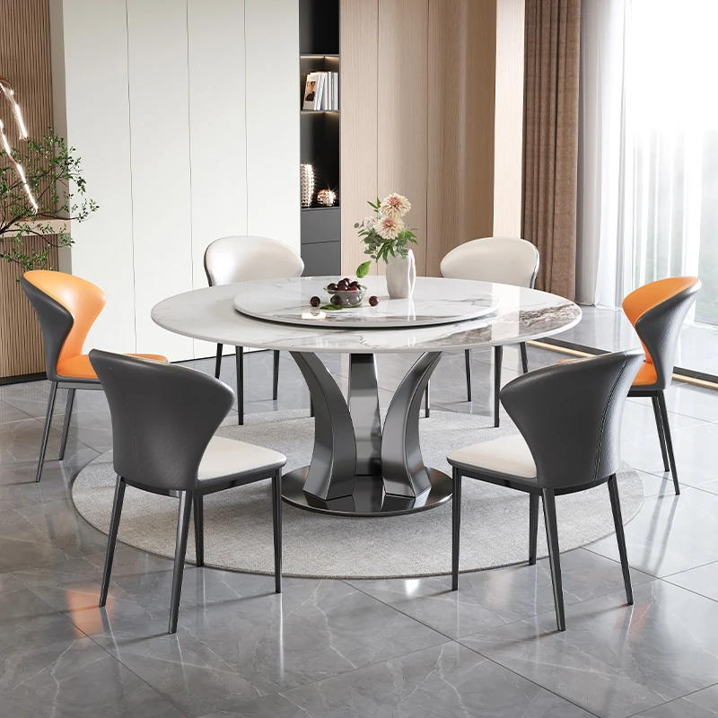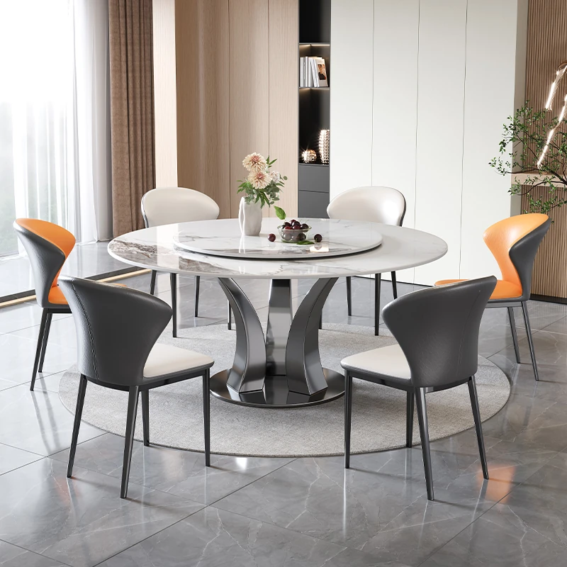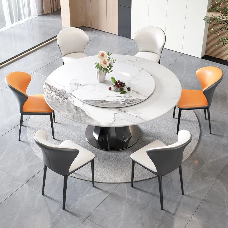 47.24in Slate Round Table + 6 Fan-Shaped Chairs
