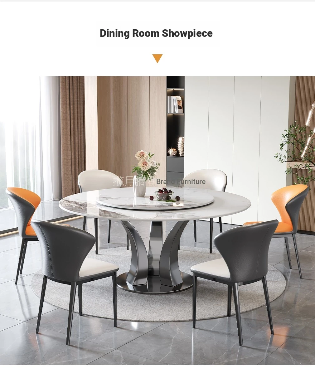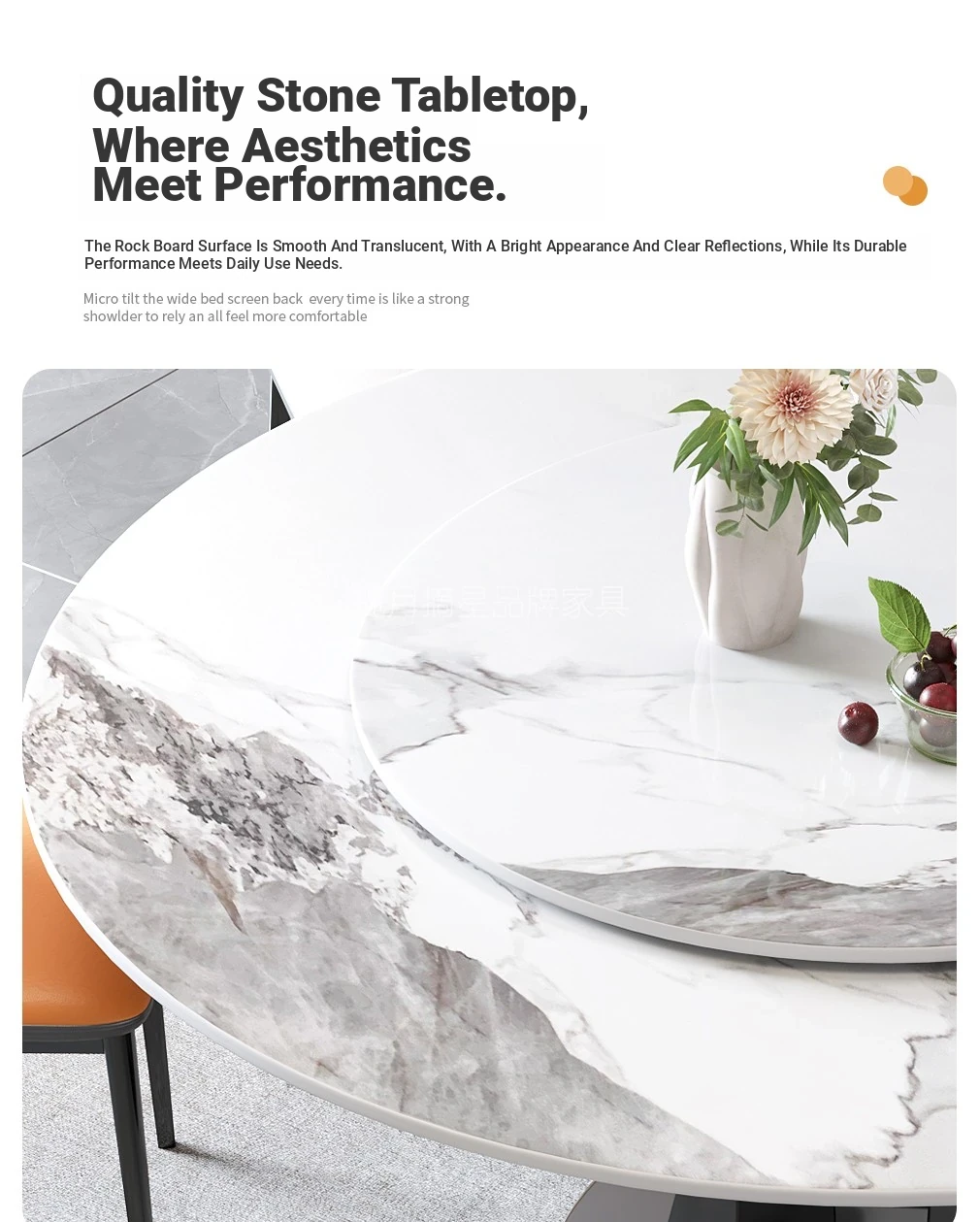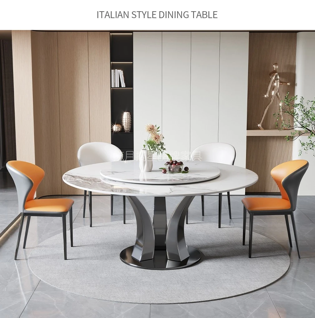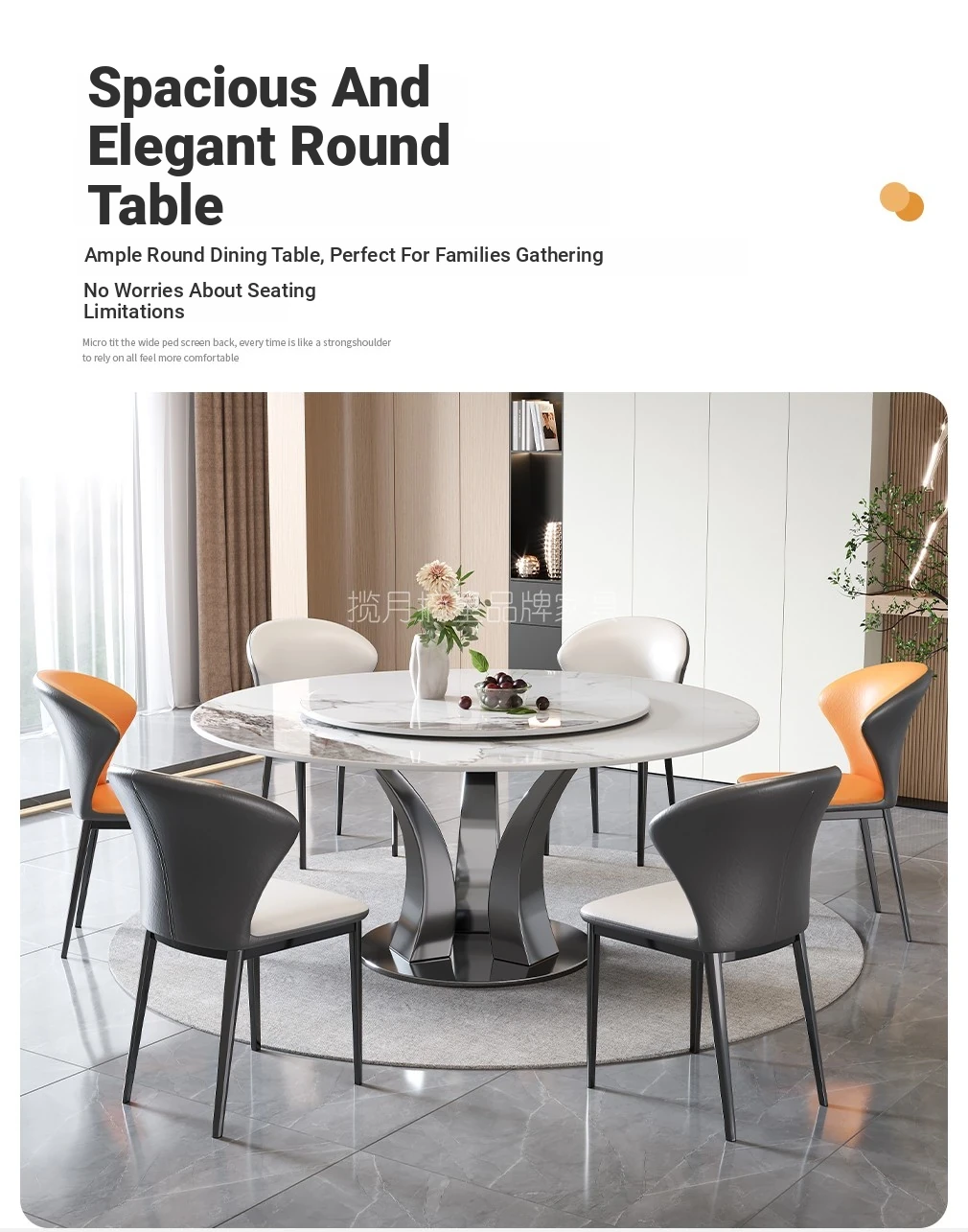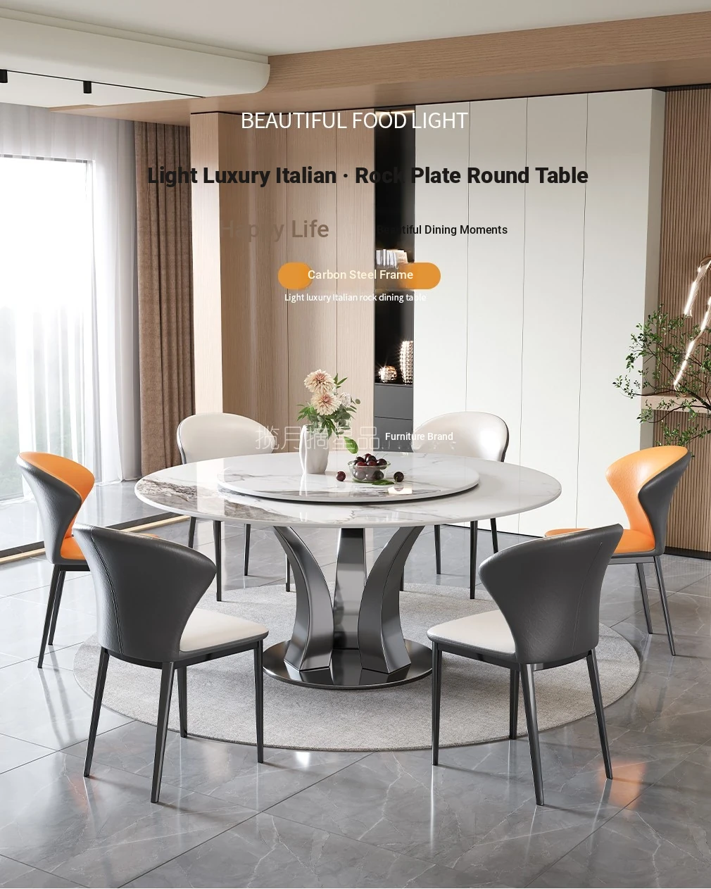 Italian Minimalist Designer Round Stone Dining Table and Chair Set - Chic Luxury for Small Dining Spaces, Perfect for Modern Homes