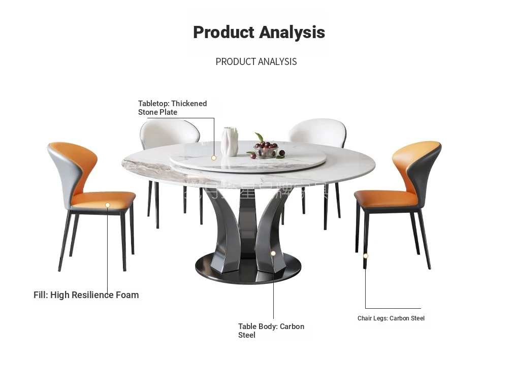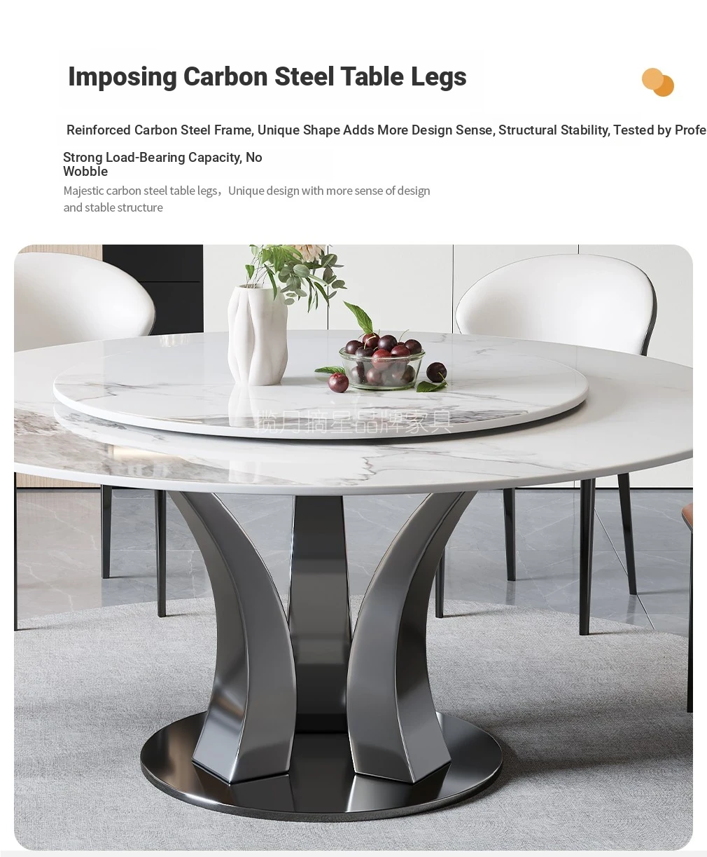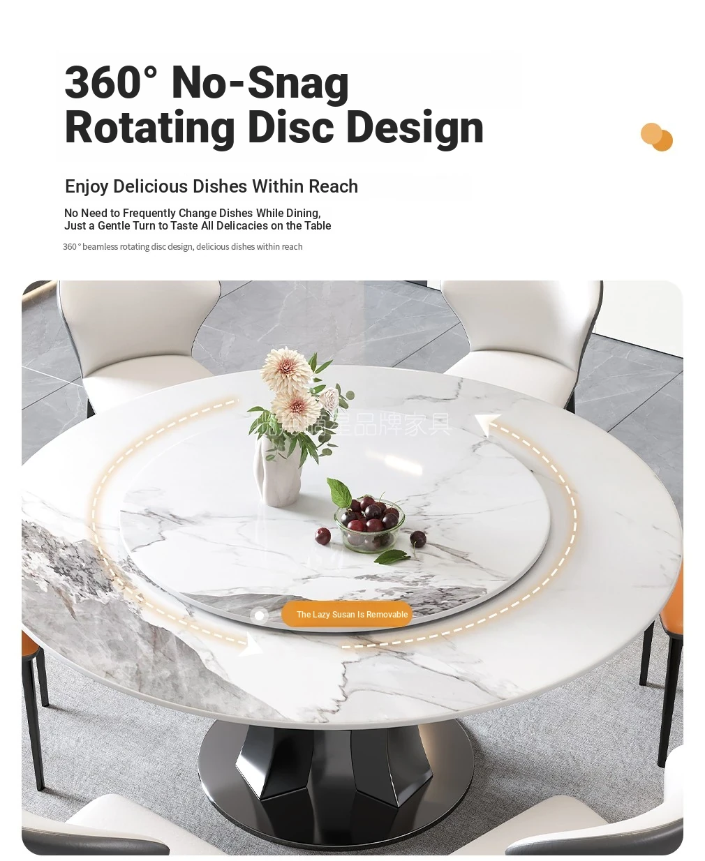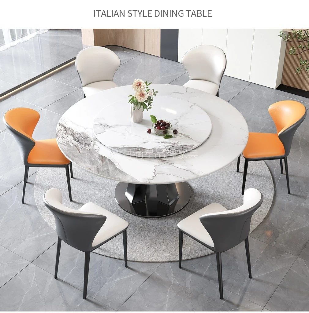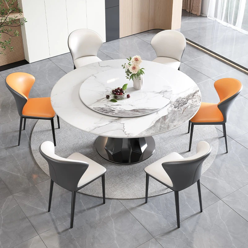 Italian Minimalist Designer Round Stone Dining Table and Chair Set - Chic Luxury for Small Dining Spaces, Perfect for Modern Homes