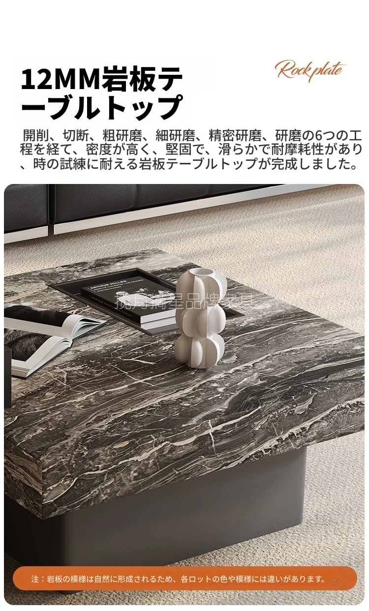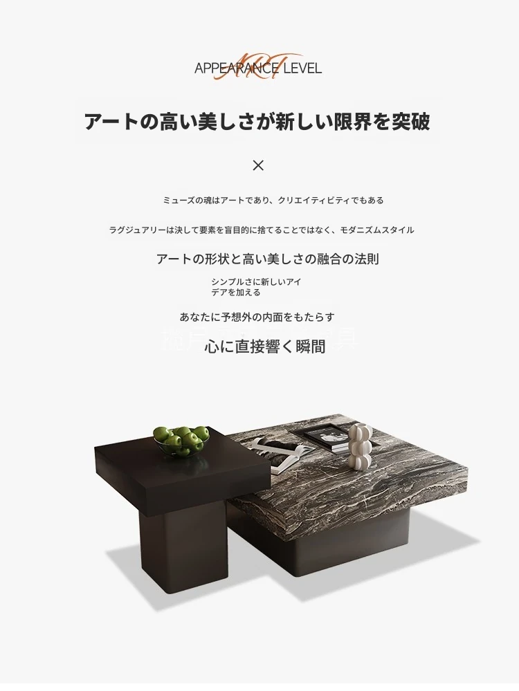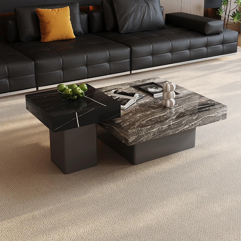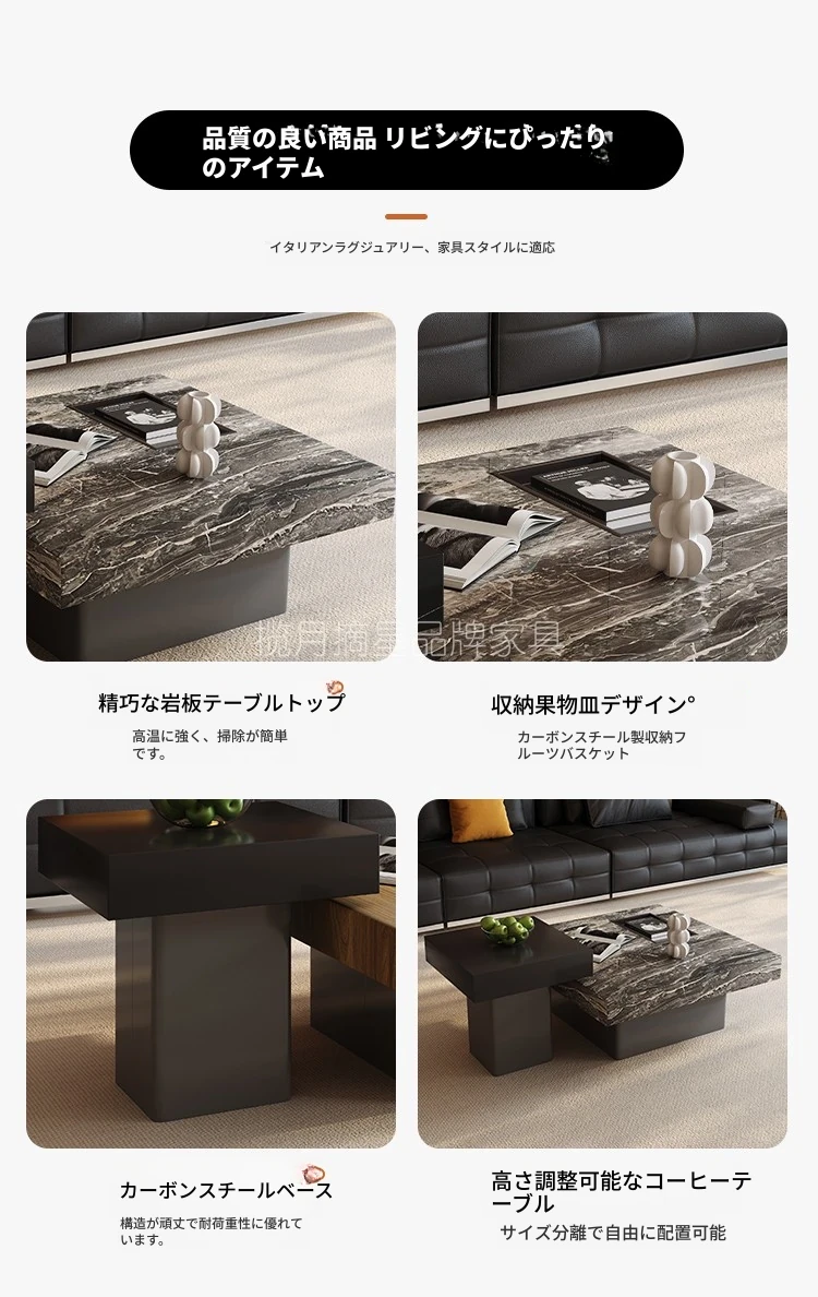 イタリアンミニマリズムの高級感溢れる岩板製コーヒーテーブルセット - シンプルで洗練されたデザインの四角形テーブル、どんな空間にもフィットするサイズ感!
