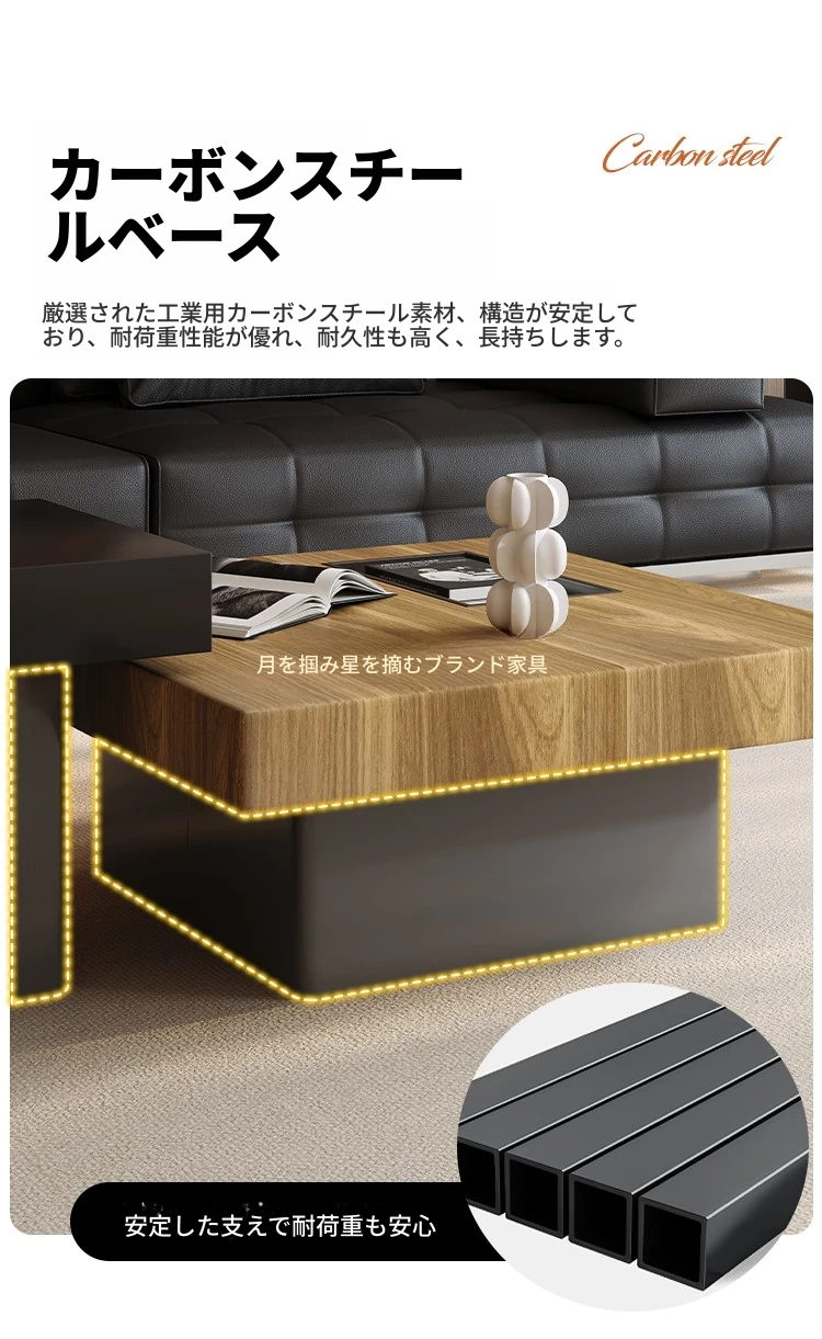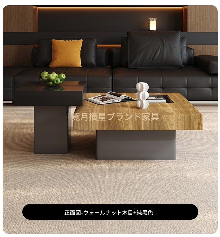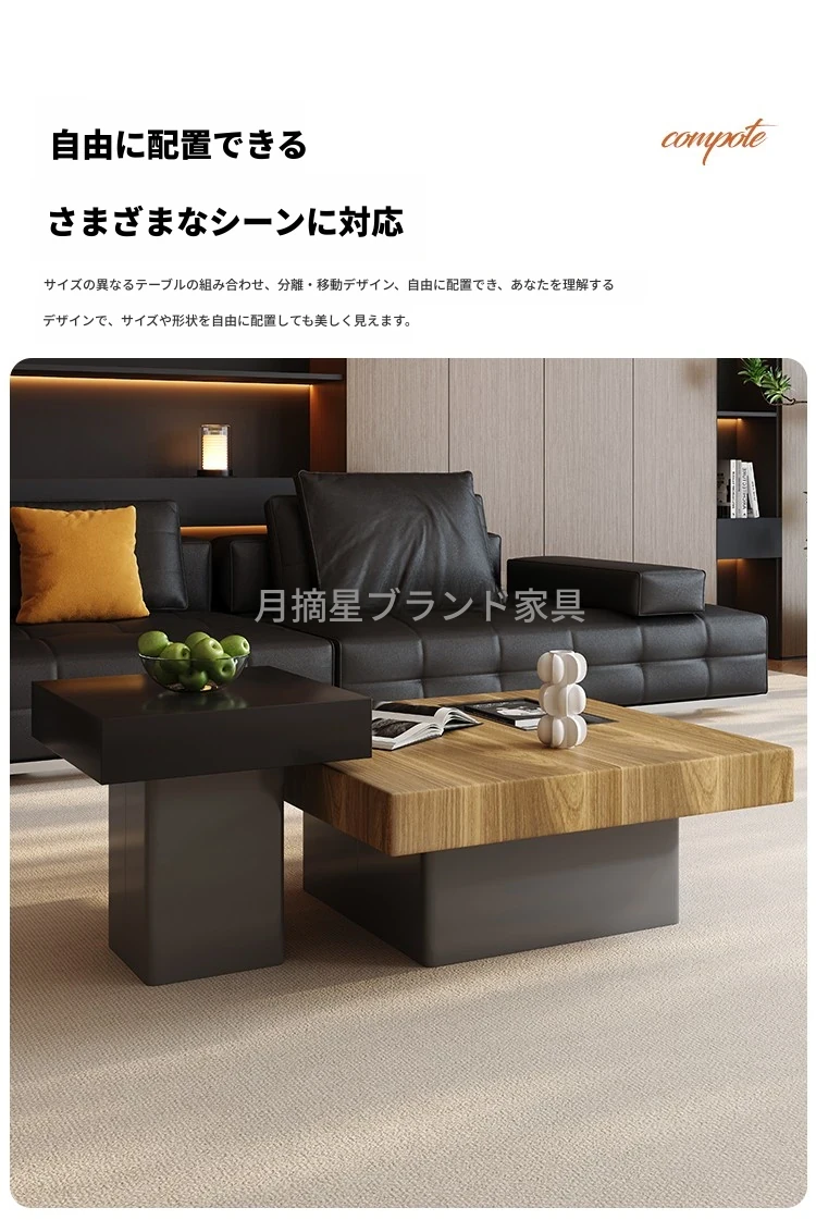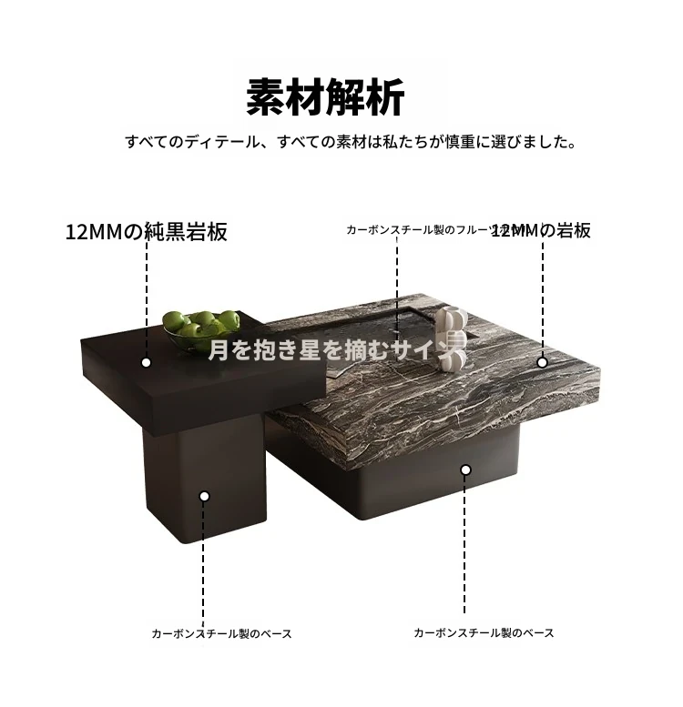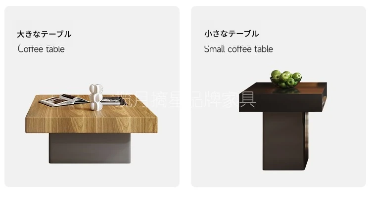 イタリアンミニマリズムの高級感溢れる岩板製コーヒーテーブルセット - シンプルで洗練されたデザインの四角形テーブル、どんな空間にもフィットするサイズ感!