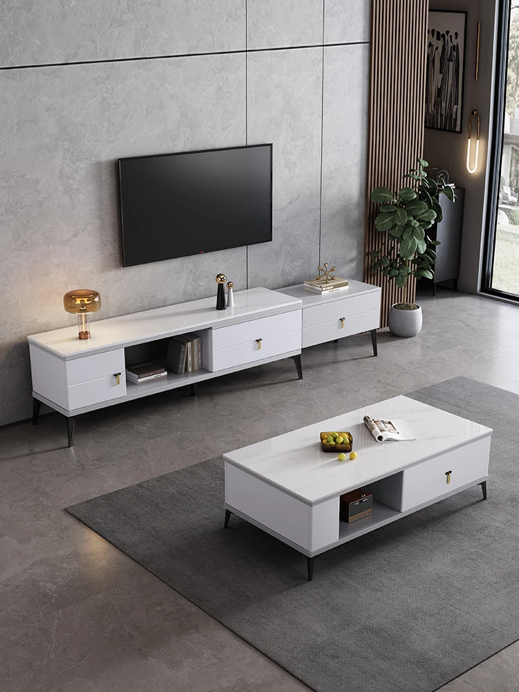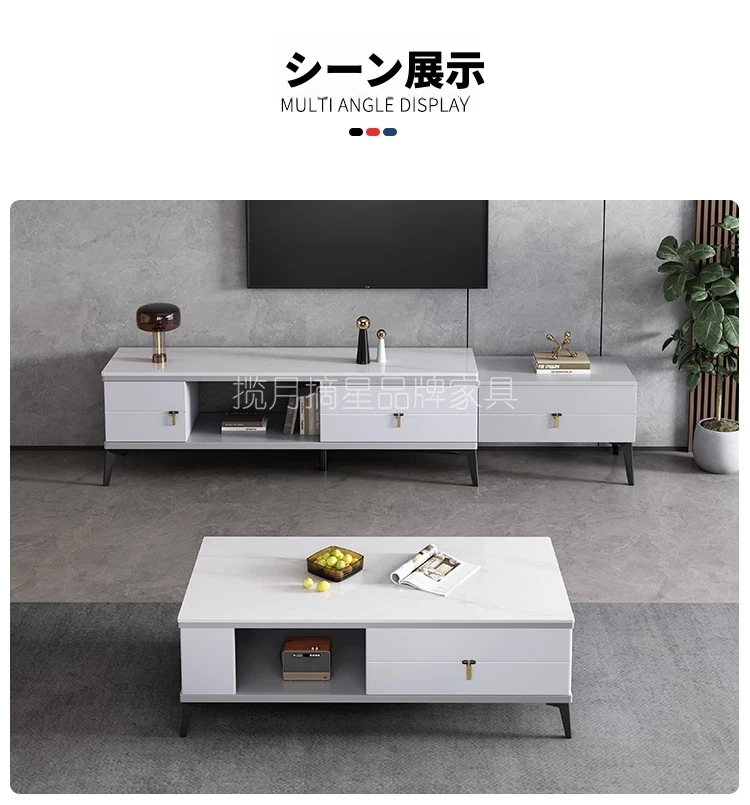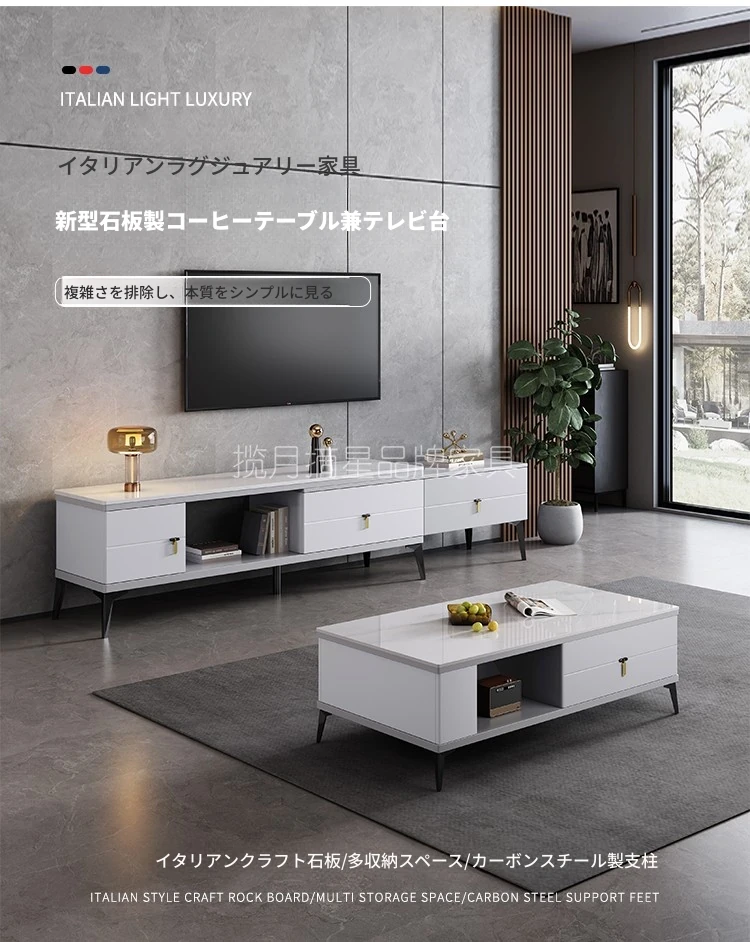 イタリアンミニマリズムの軽奢テーブルセット!多機能収納付きのスクエア型コーヒーテーブルとテレビキャビネットのコンビネーション。小型住宅にもぴったりのスタイリッシュなリビングに最適です。