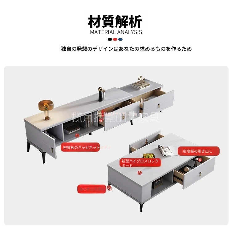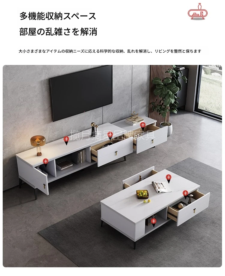 120CM岩板テーブル+伸縮テレビキャビネット
