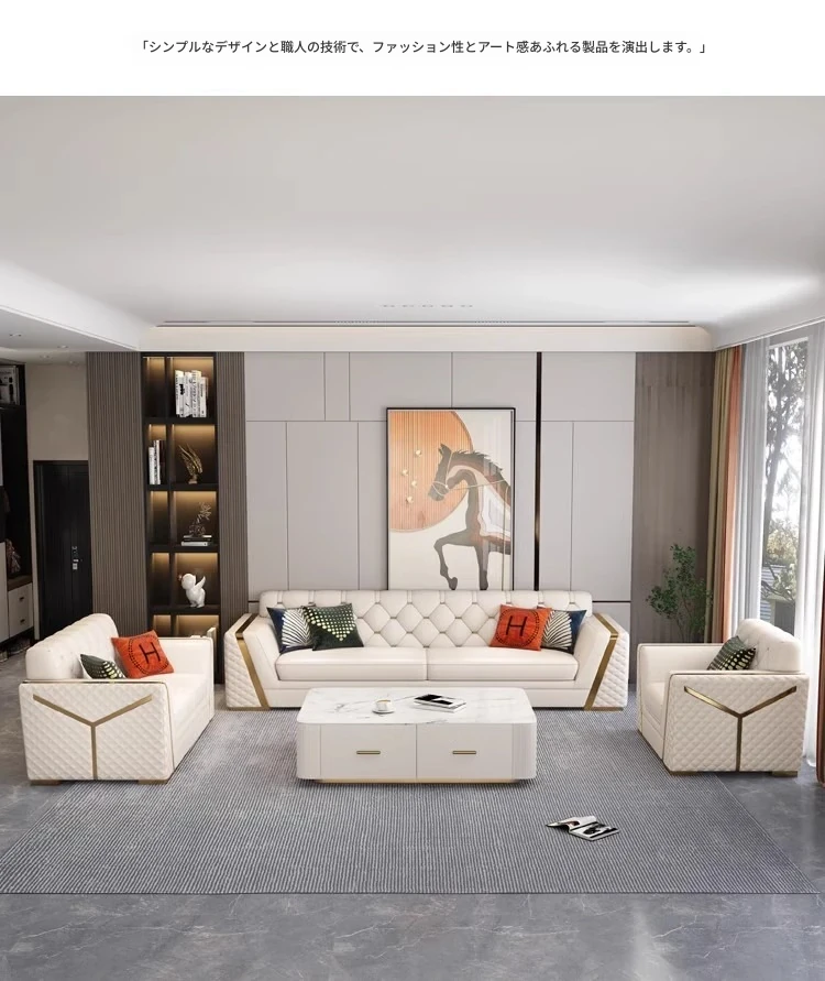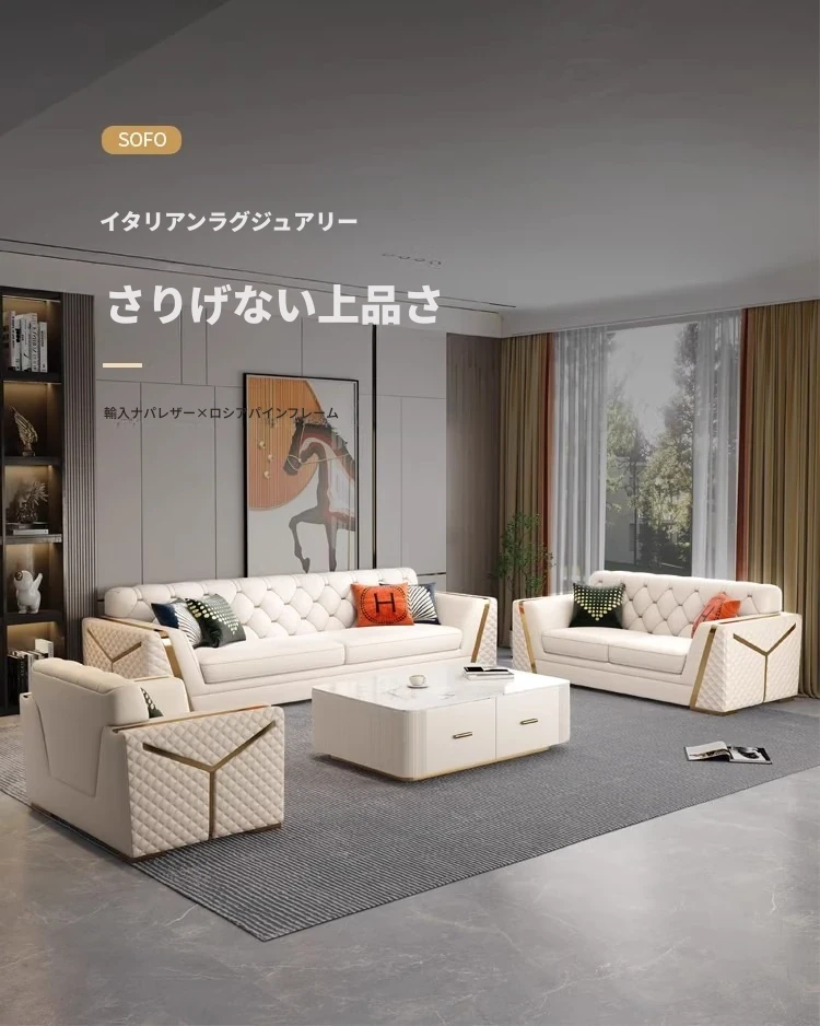 イタリアンモダンデザインのラグジュアリー本革リクライニングソファ - スペースを有効活用できる小型リビング向け、上質なトップグレイン牛革使用のデザイナーズ別荘用ソファセット!