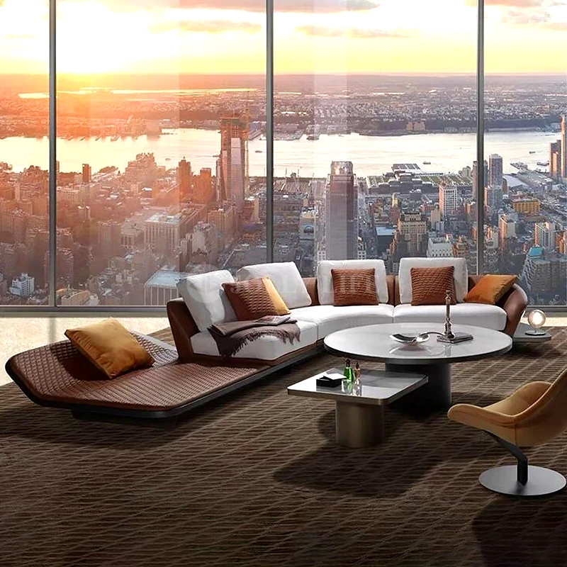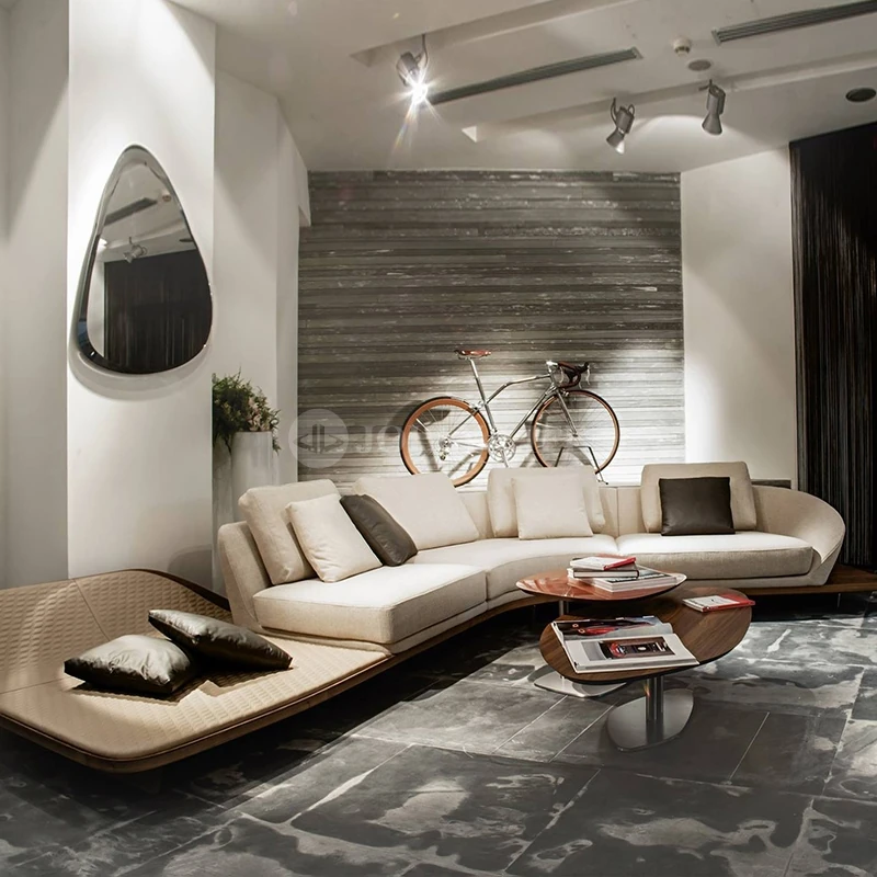 イタリアのReflex Segno製フェラーリ本革布製アーチ型イタリアンミニマル高級大リビング用牛革ソファ - 贅沢なデザインで、快適さとスタイルを両立。あなたのリビングに洗練された雰囲気をもたらします。