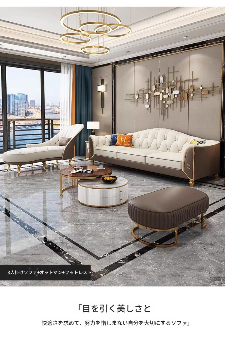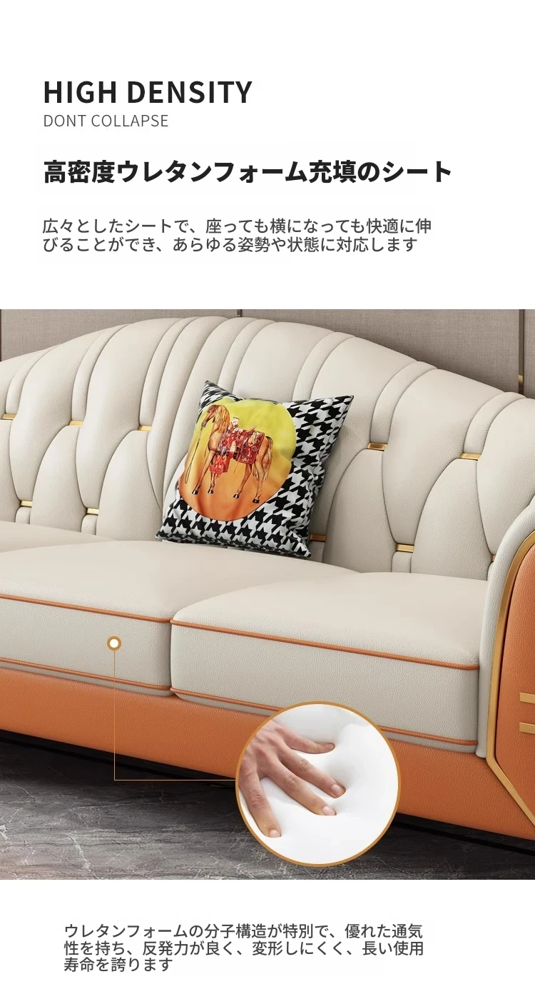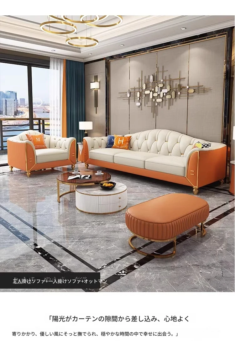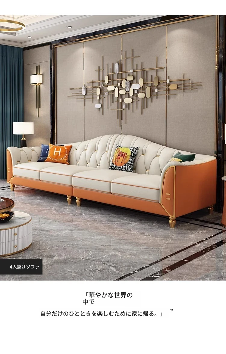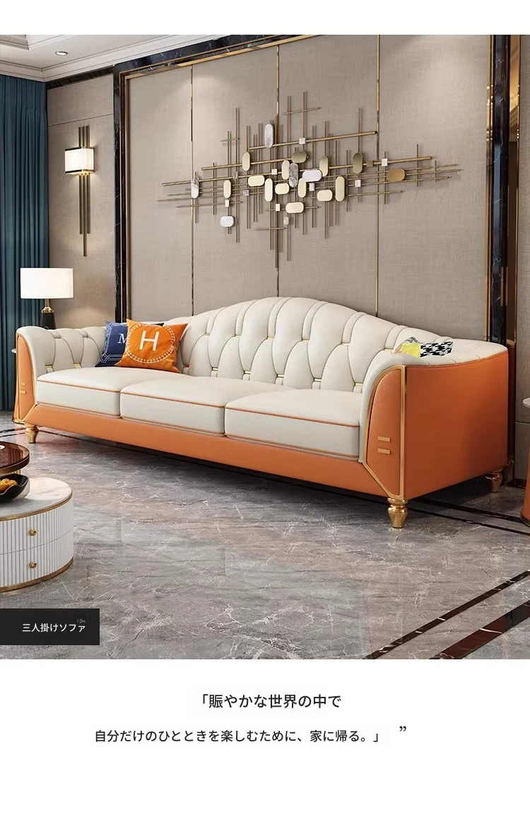 アメリカンスタイルの軽奢真皮ソファー|最上級の牛革使用|リビングにぴったりなコンパクトサイズ|新作シンプルモダンな4人掛けソファ!