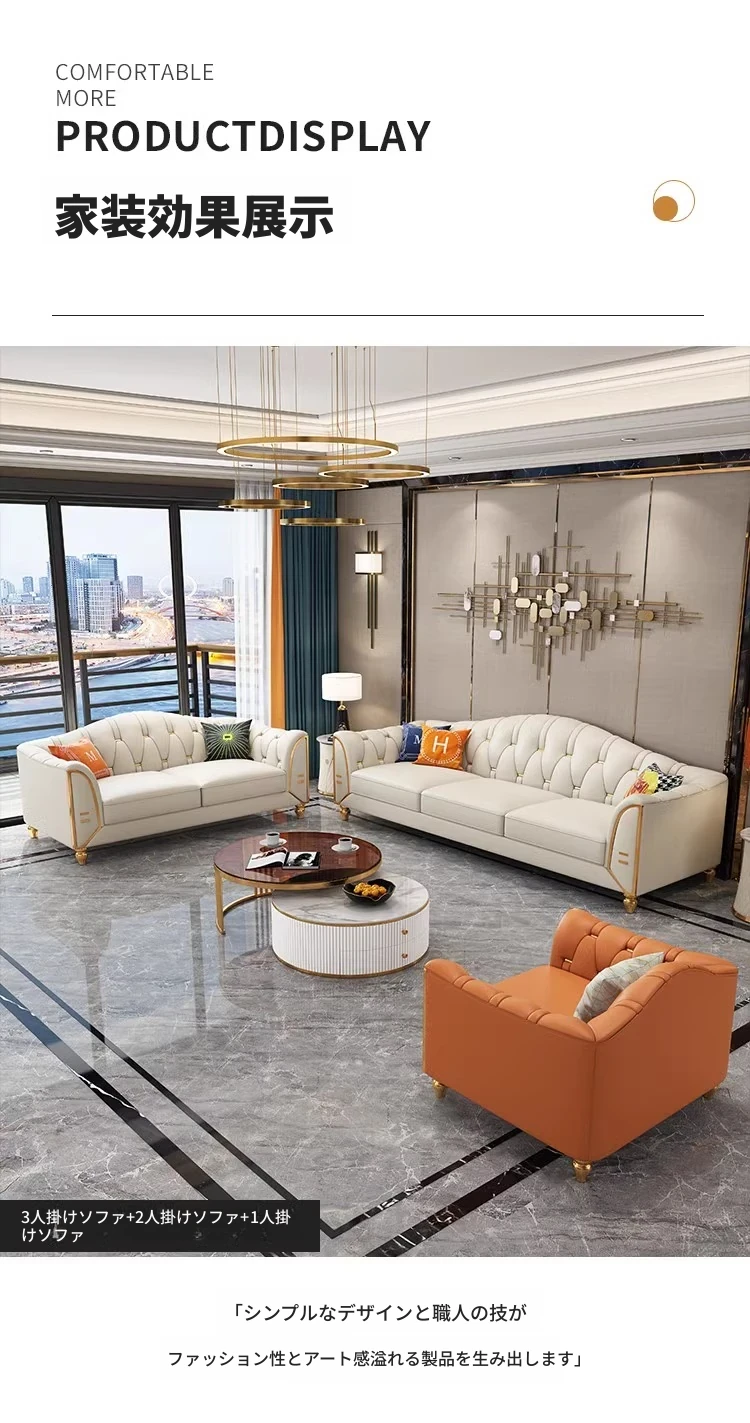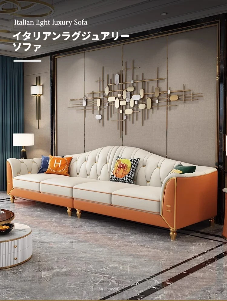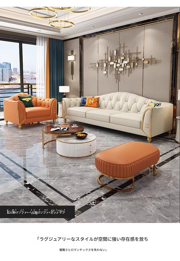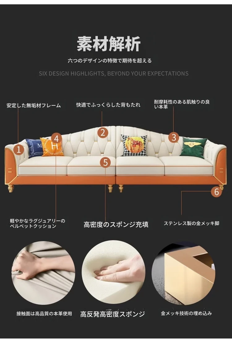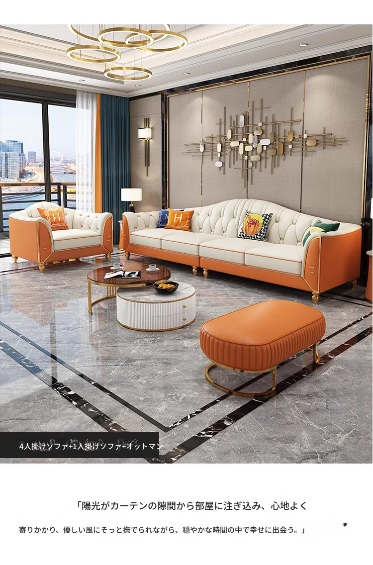 アメリカンスタイルの軽奢真皮ソファー|最上級の牛革使用|リビングにぴったりなコンパクトサイズ|新作シンプルモダンな4人掛けソファ!