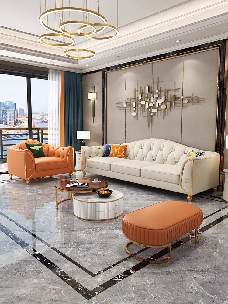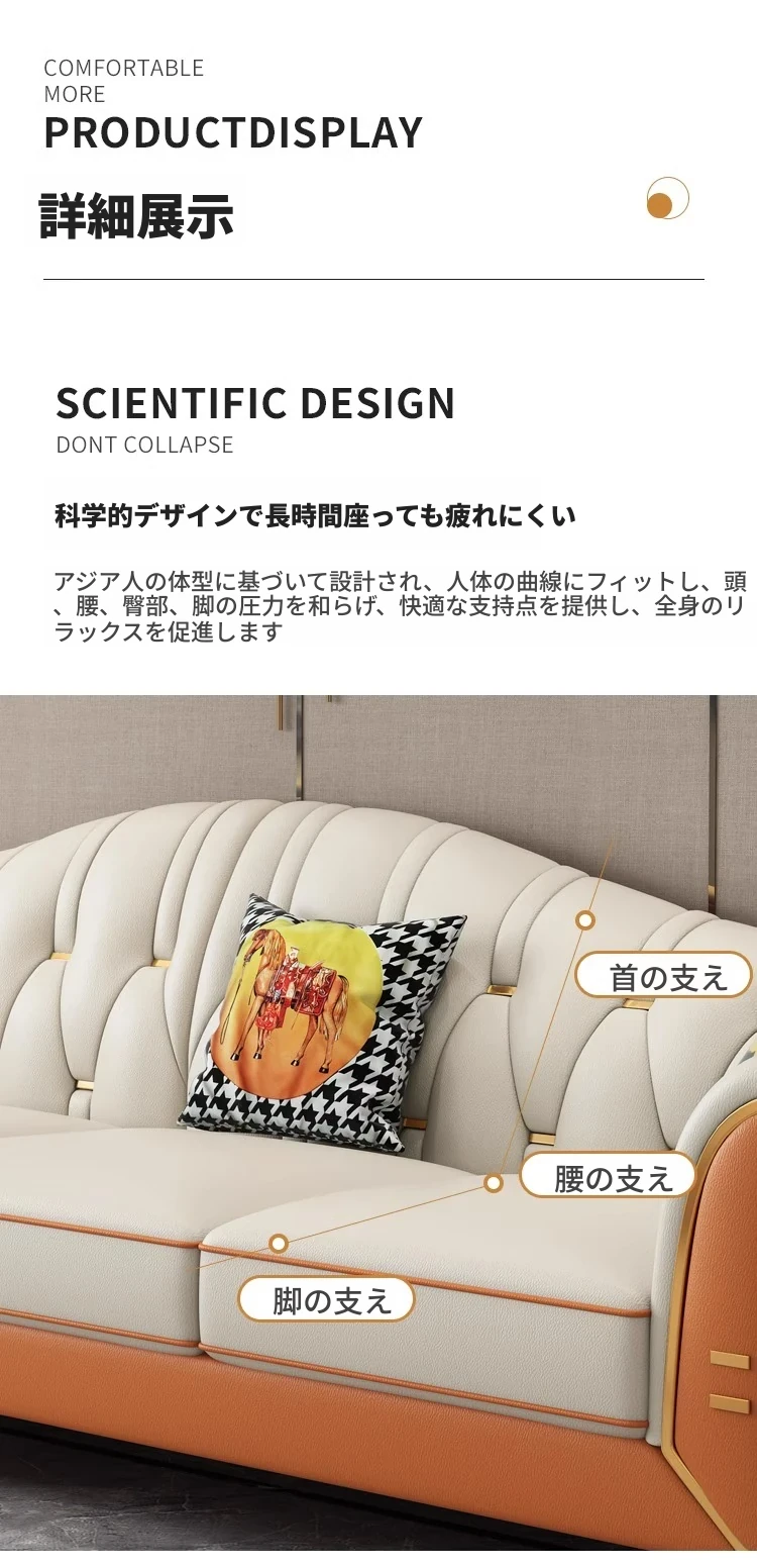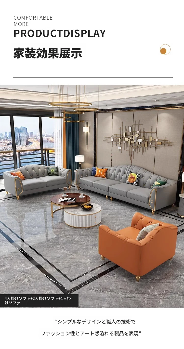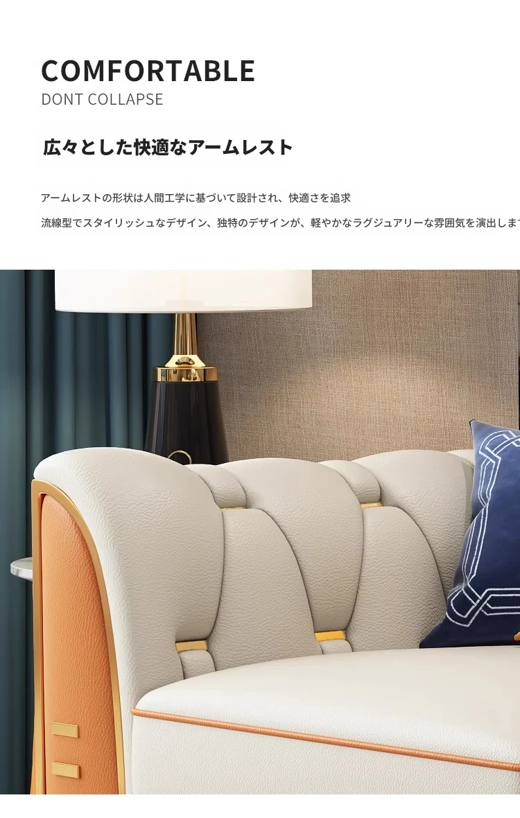 アメリカンスタイルの軽奢真皮ソファー|最上級の牛革使用|リビングにぴったりなコンパクトサイズ|新作シンプルモダンな4人掛けソファ!