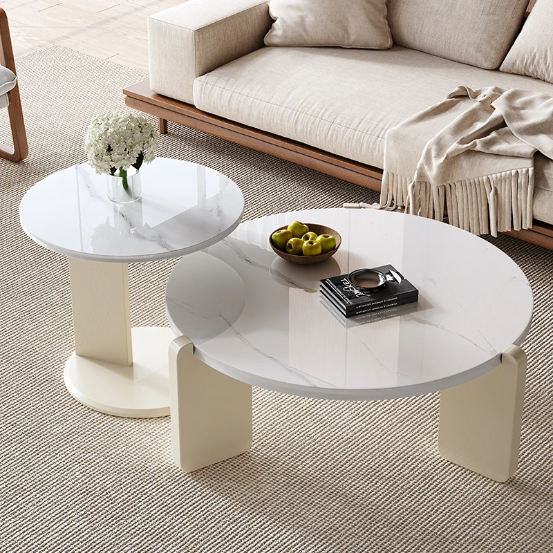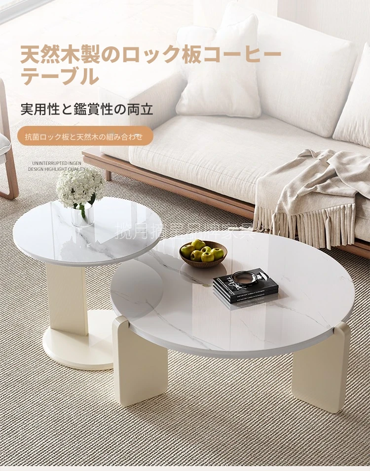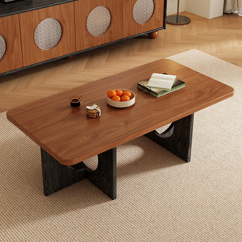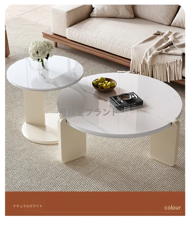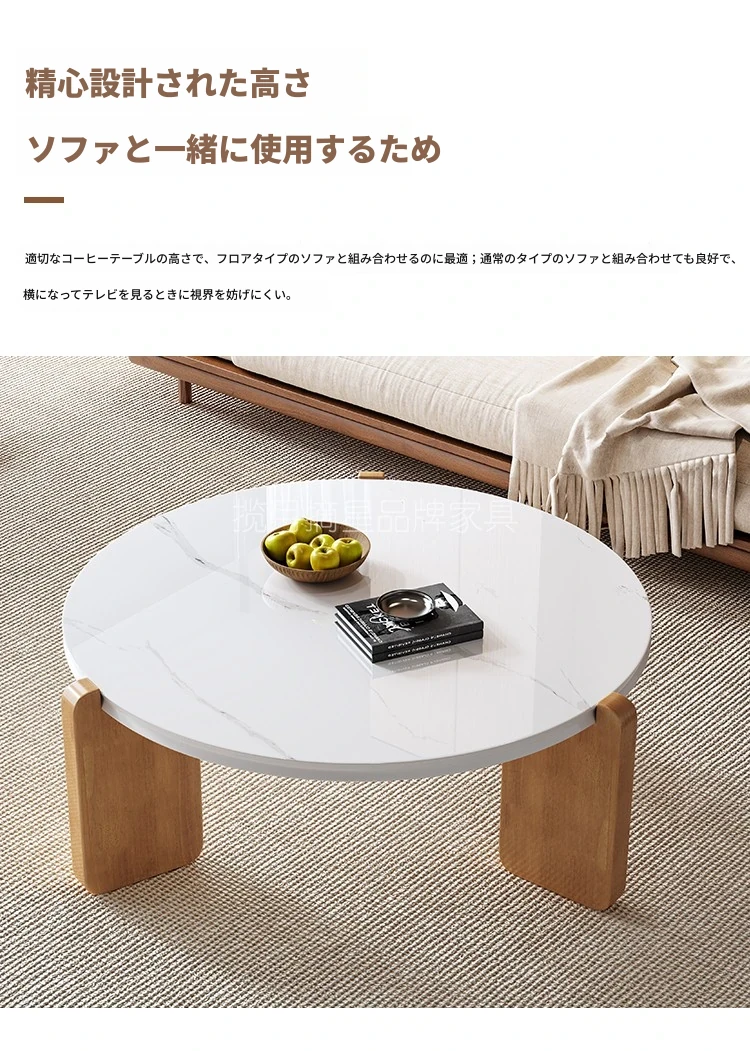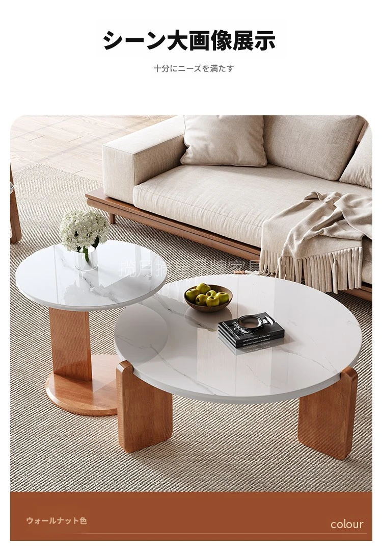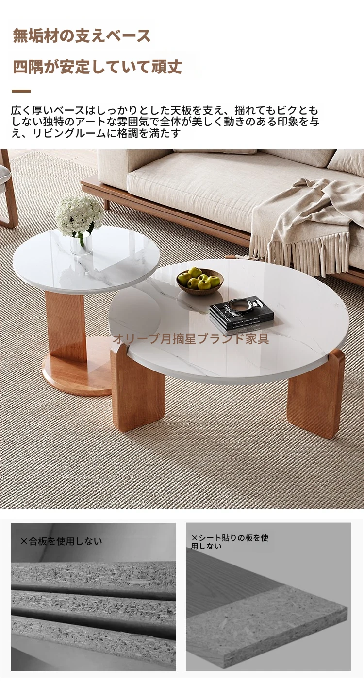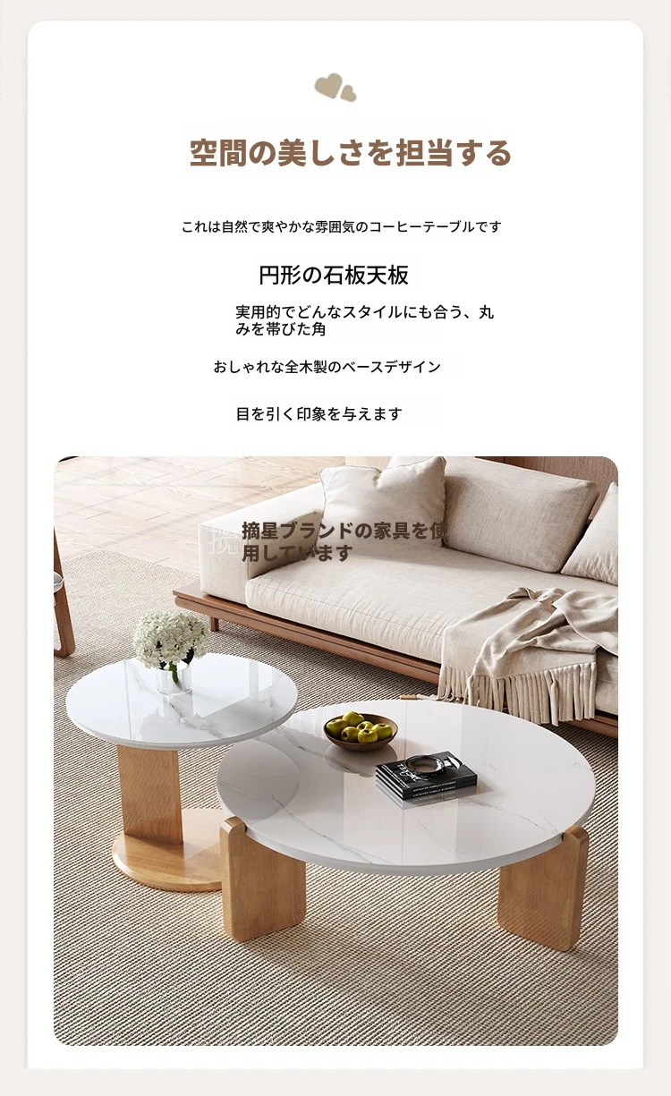 モダンでシンプルな新型リビング用ティーテーブル - イタリアンデザインの高級感あふれる天然木と岩板の組み合わせ、小型住宅にもぴったり!2025年モデル