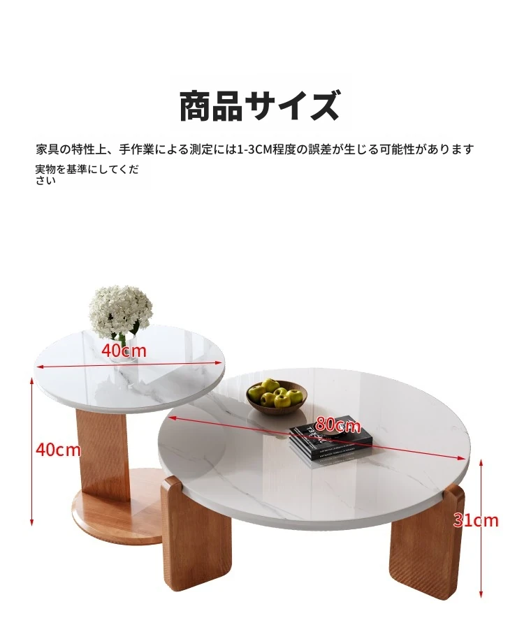 サイズ:円形テーブル 80CM + 40CM【クリームホワイト】