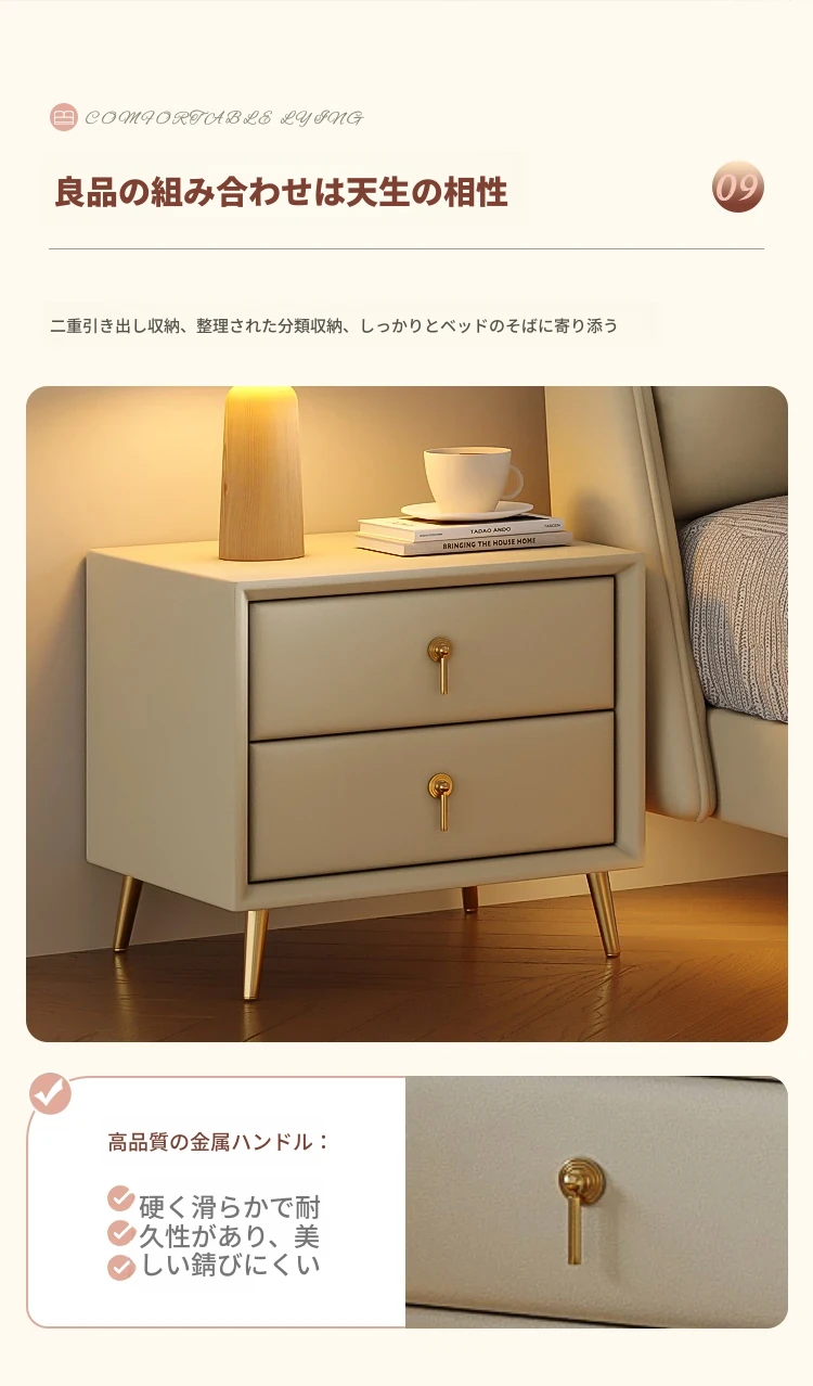 クリーム軽奢浮床+5D羊乳ゴムマットレス+ナイトスタンド*1