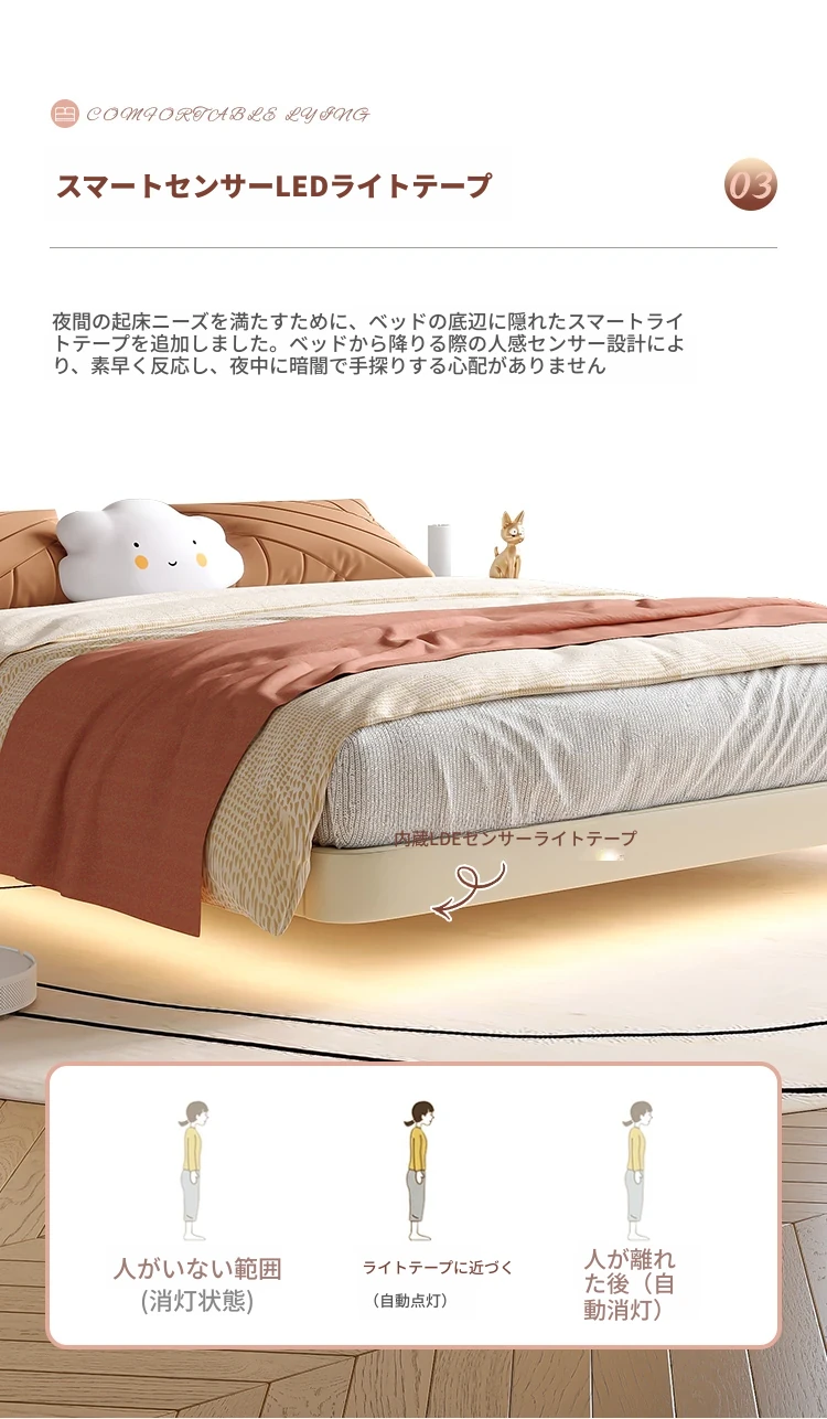 クリーム軽奢浮床+3Dココナッツマットレス+ナイトスタンド*1