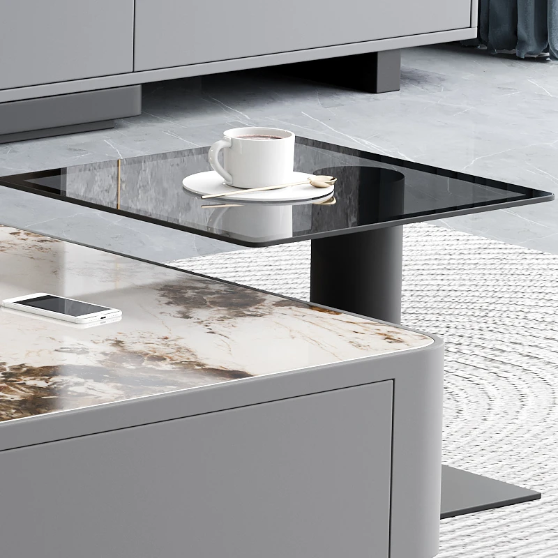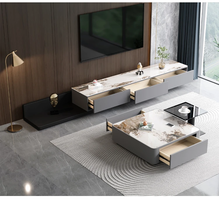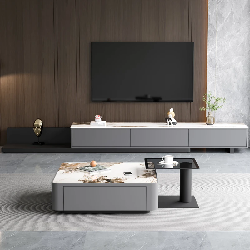 ミニマリスト軽奢スタイルのリビング用小型ティーテーブル新作!モダンでシンプルな伸縮テレビボードとティーテーブルのセット。おしゃれな四角形のデザインで、狭いスペースでも大活躍!お茶を楽しむ特別な時間を演出します。