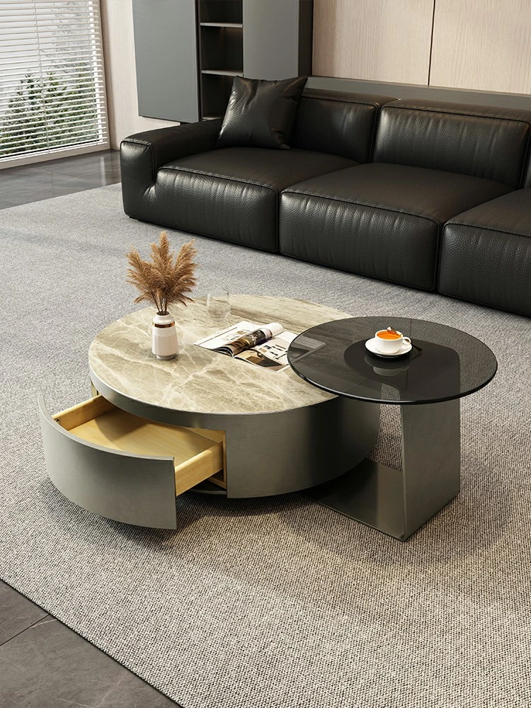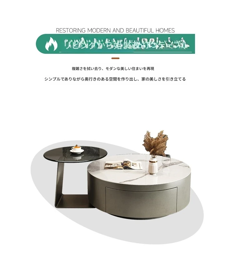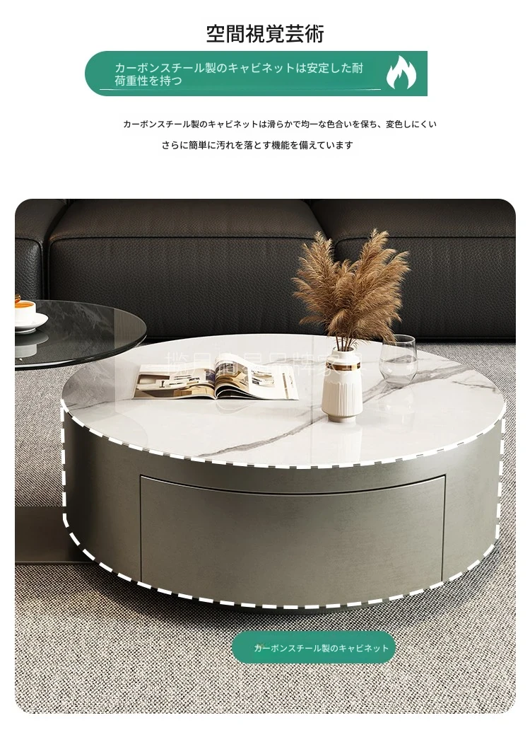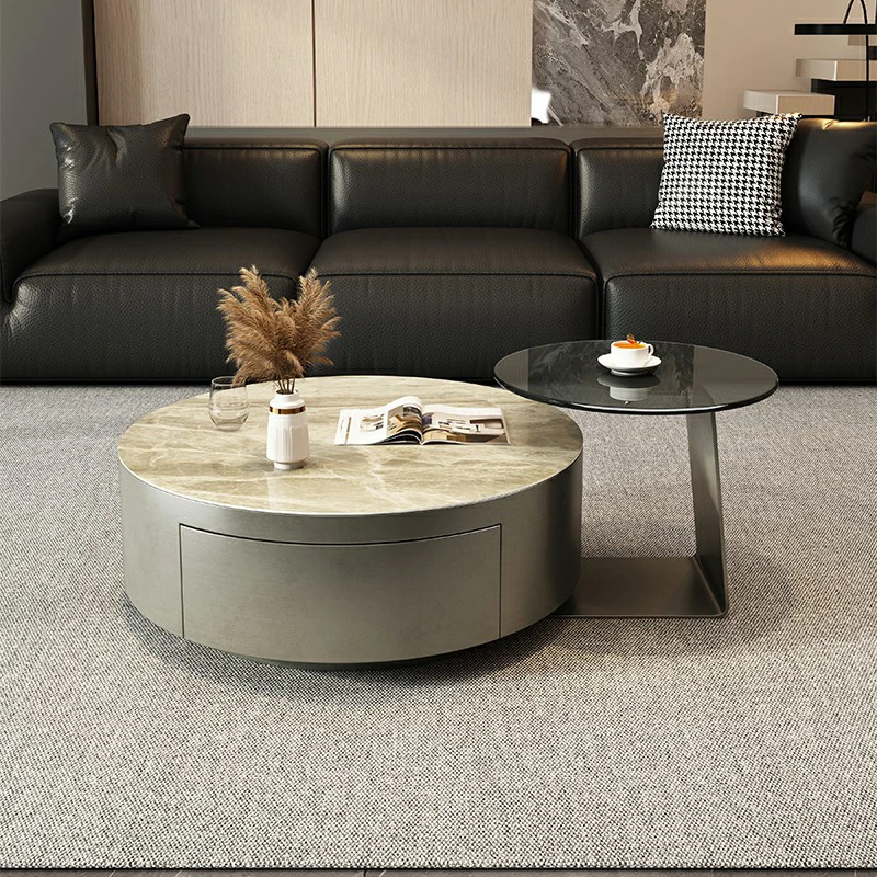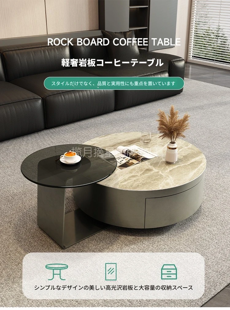 モダンミニマリストデザインのラウンドコーヒーテーブル - 抽斗付き、イタリアンラグジュアリー、小スペース対応のスタイリッシュなリビング用テーブル。デザイナーのこだわりが詰まった一品で、あなたの空間を格上げします!