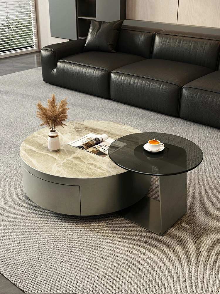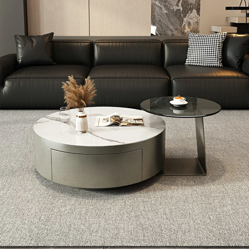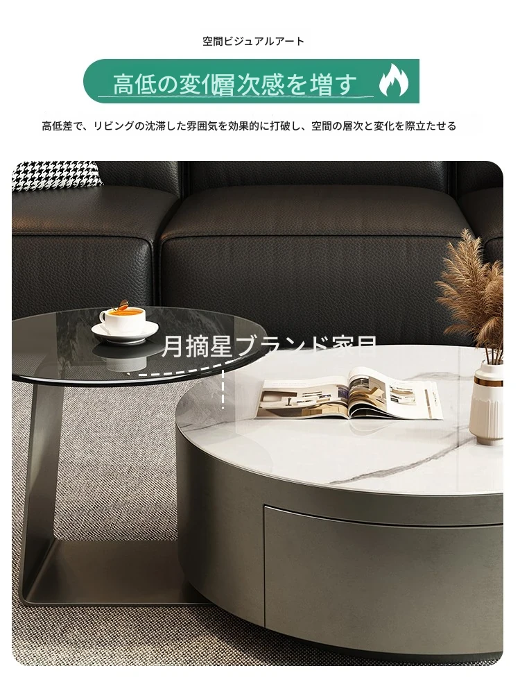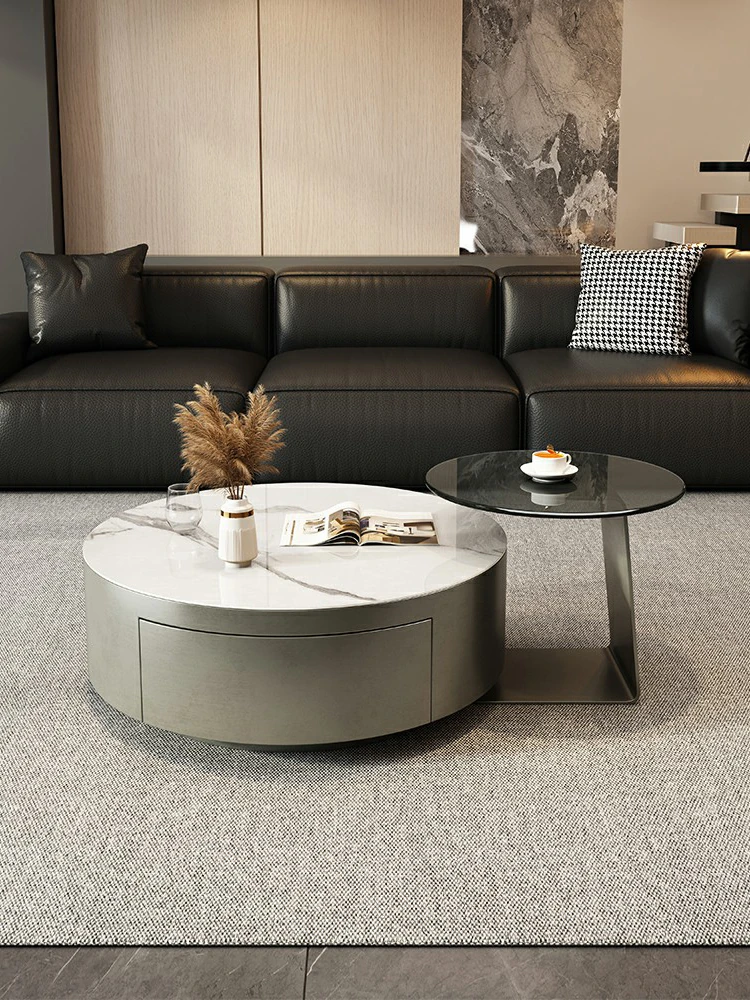モダンミニマリストデザインのラウンドコーヒーテーブル - 抽斗付き、イタリアンラグジュアリー、小スペース対応のスタイリッシュなリビング用テーブル。デザイナーのこだわりが詰まった一品で、あなたの空間を格上げします!