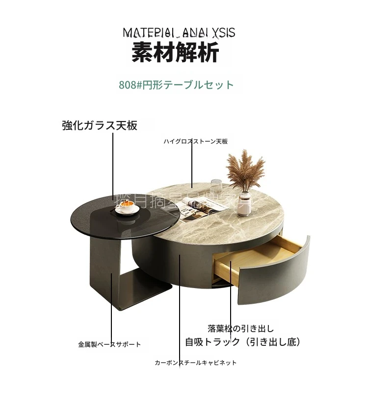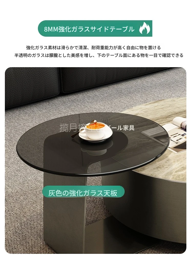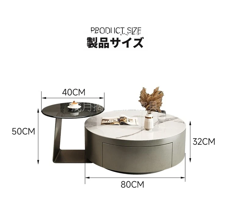 40CM+80CM円形テーブル【イタリアングレー岩板】