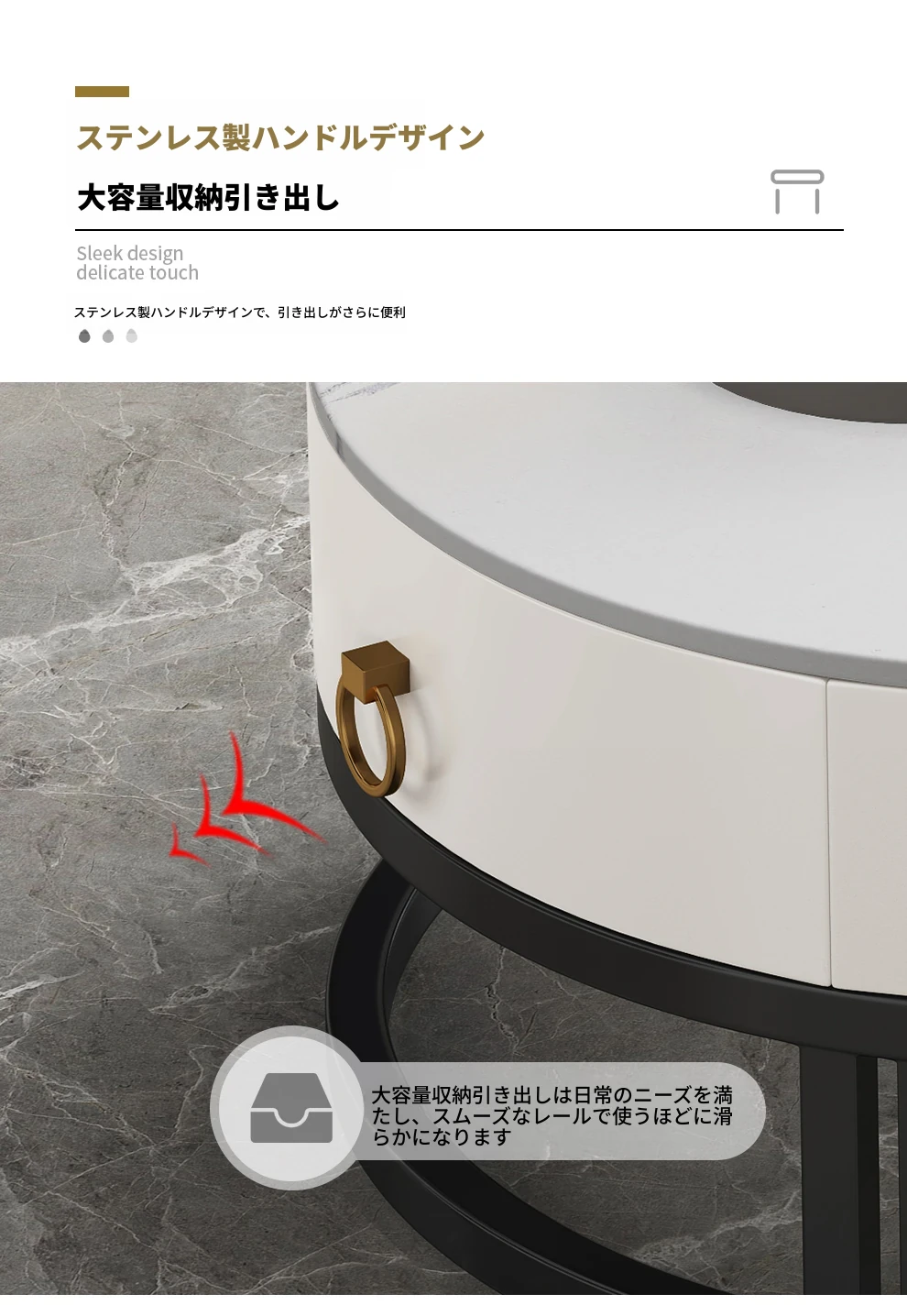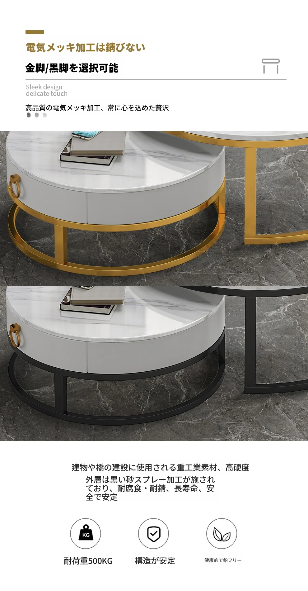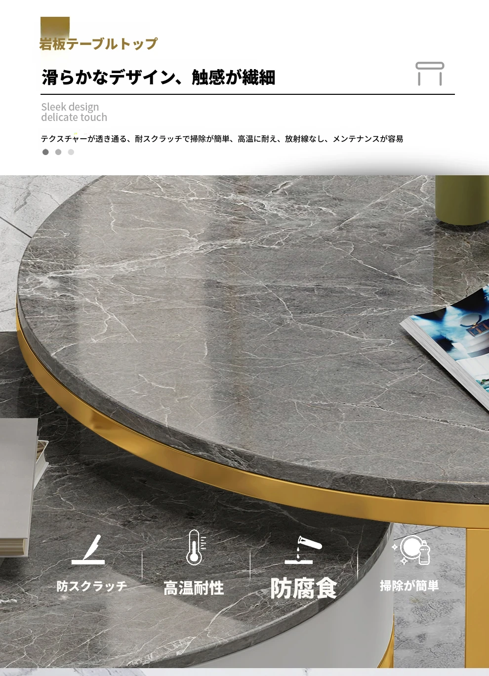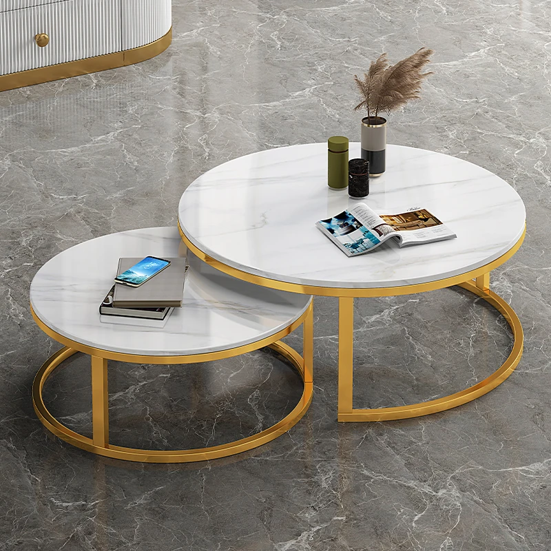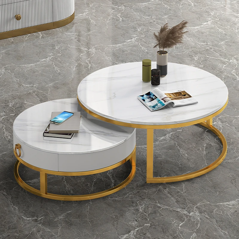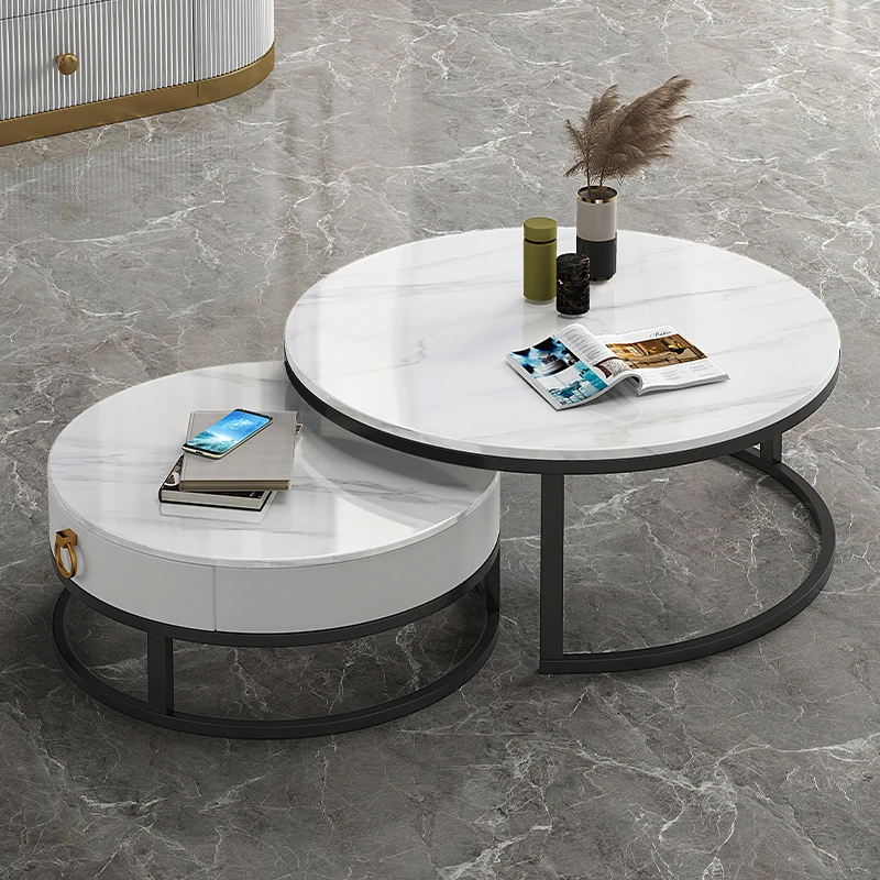 現代的ミニマルな円形デザインの岩板コーヒーテーブル - 小型住宅にぴったりのシンプルでスタイリッシュな新作、軽やかなラグジュアリーを演出します!