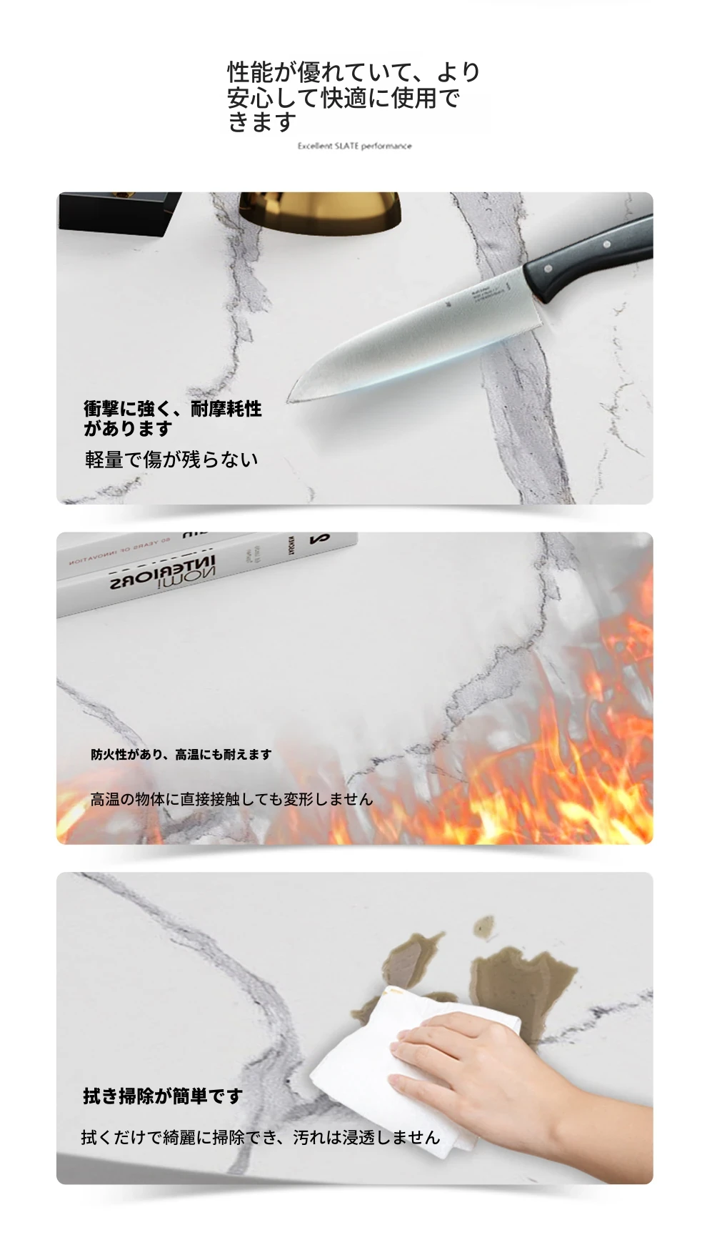 岩板【雪山白】ツートン収納タイプ (80cm*60cm)