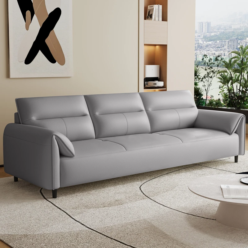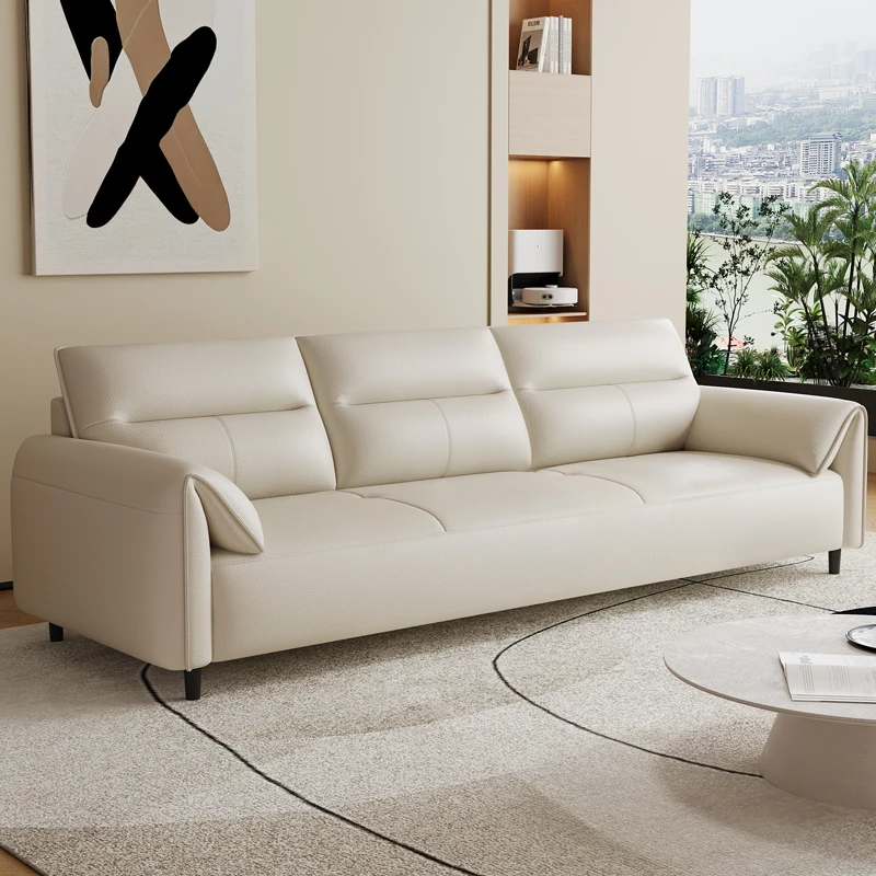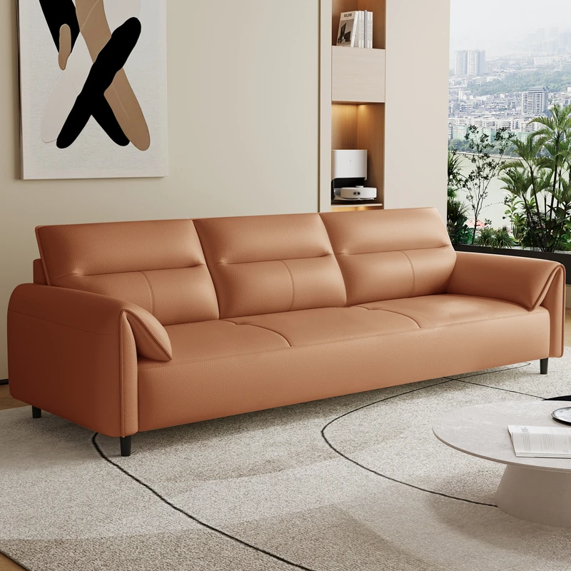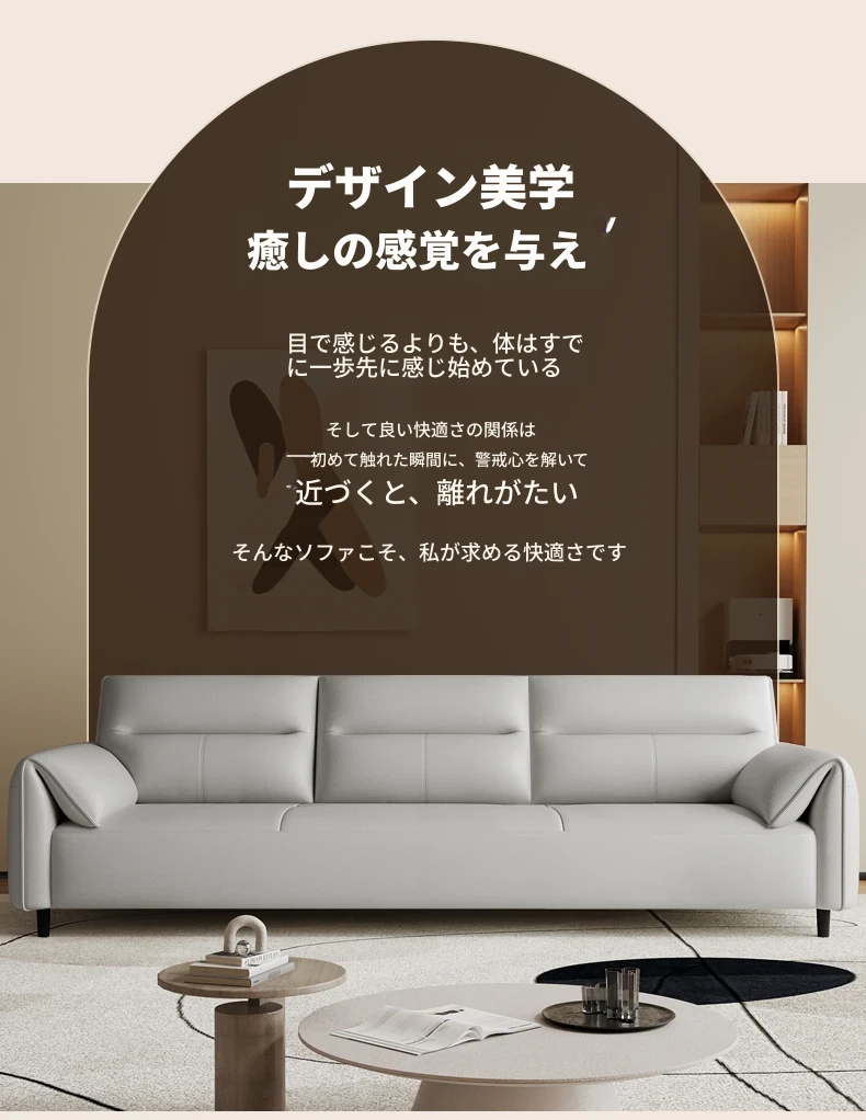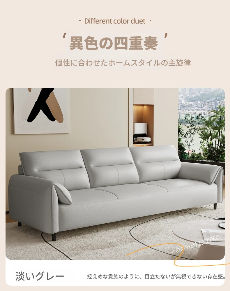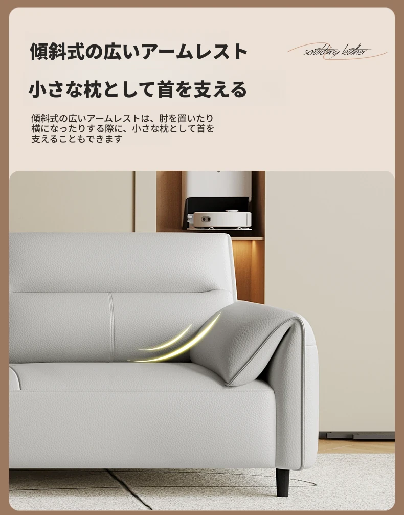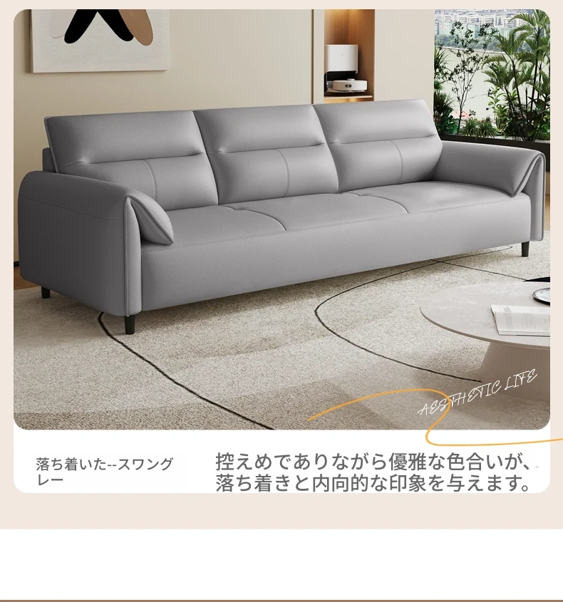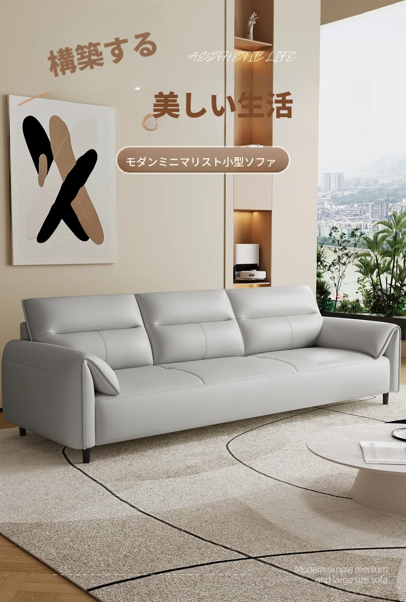 現代的なシンプルデザインの3人掛けソファ - 高品質の本革と頑丈な木枠で快適さを追求!猫の爪にも強い耐久性を持つ、大小様々なリビングルームにぴったりのコンビネーションソファ。おしゃれで機能的な空間を演出!