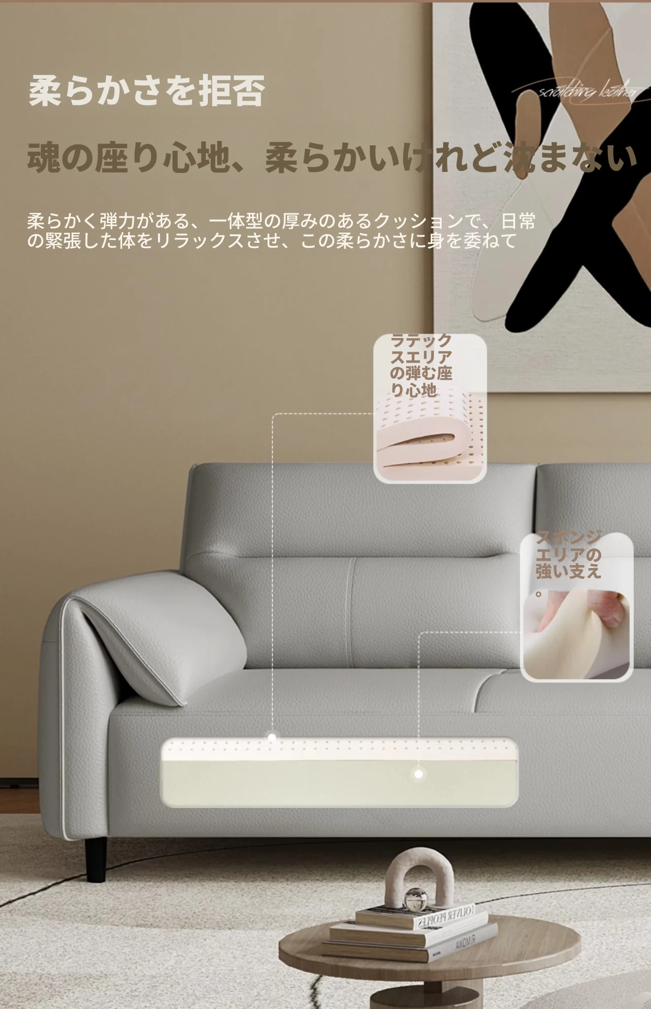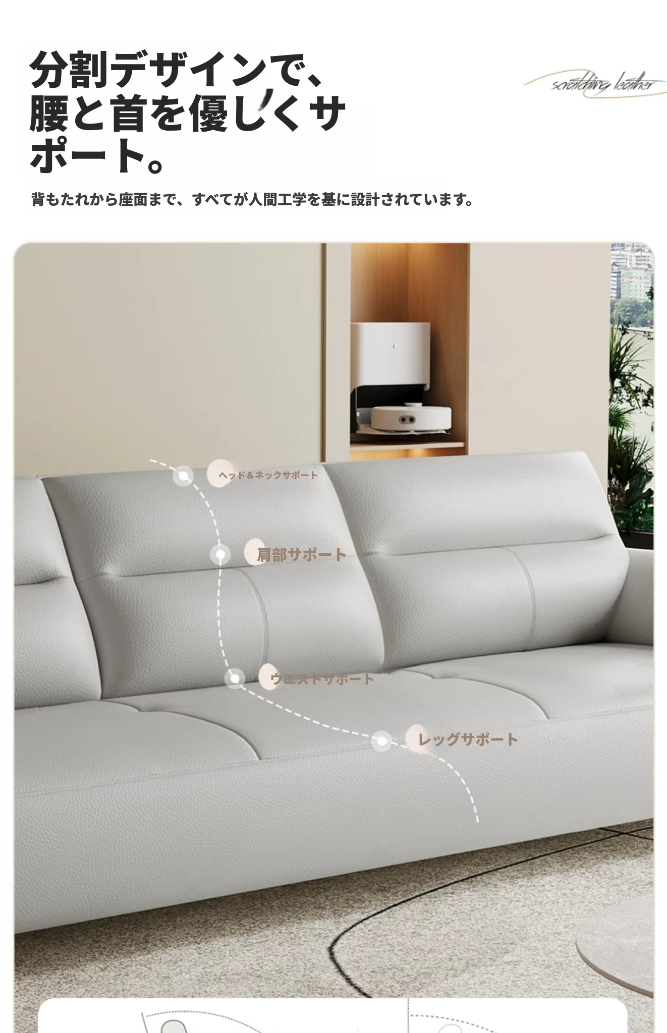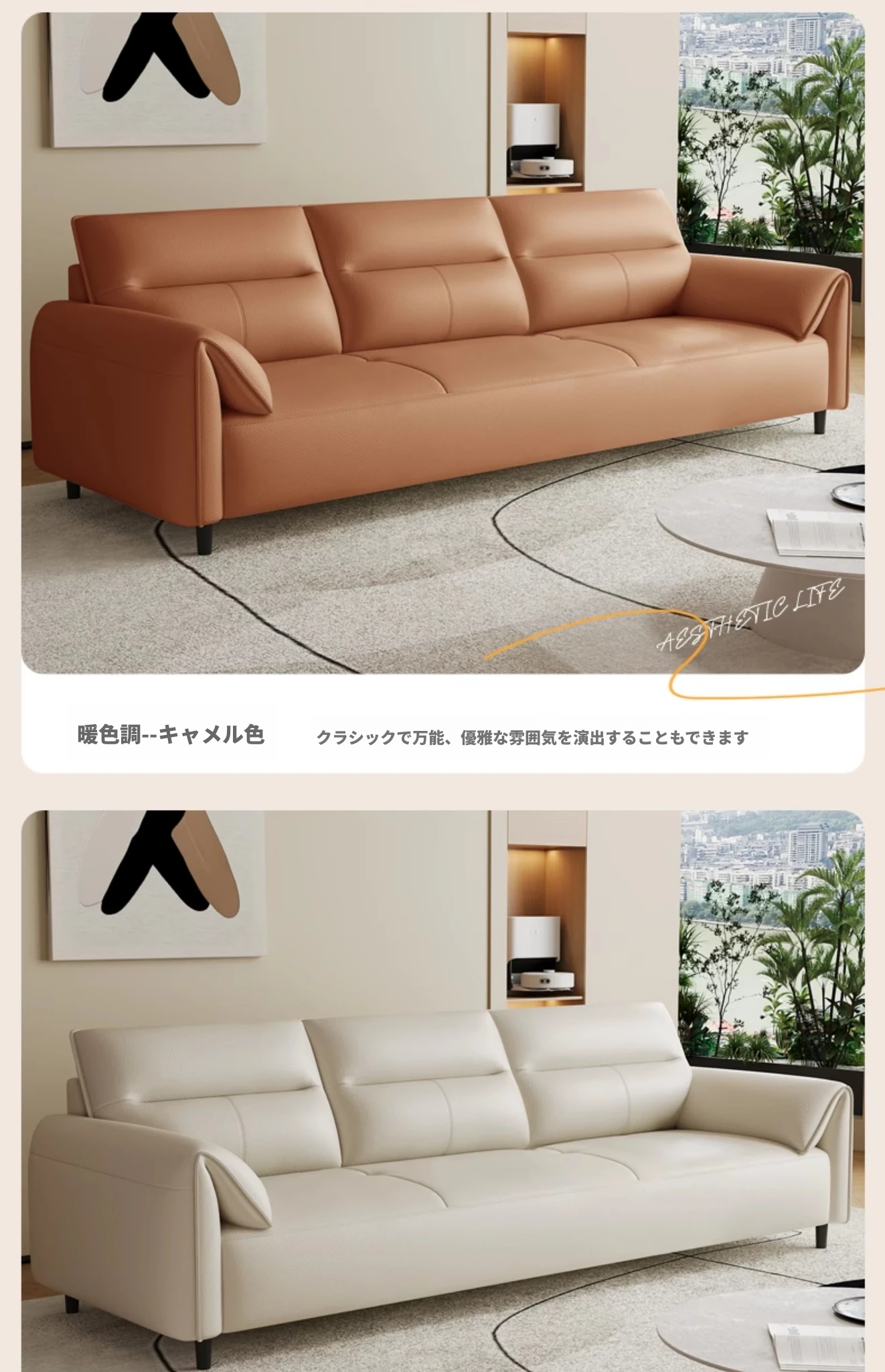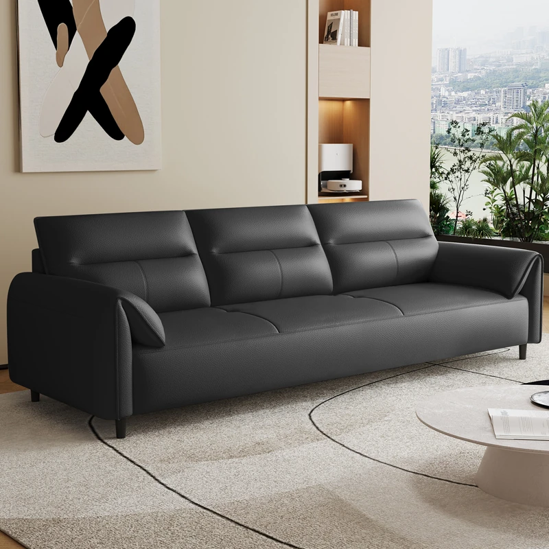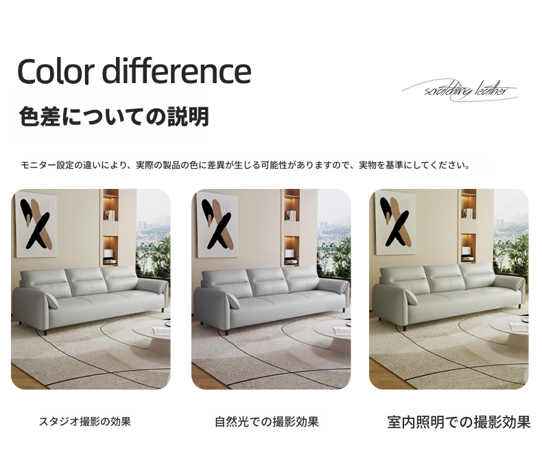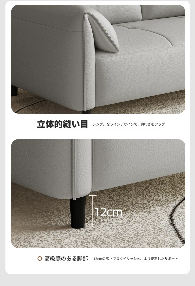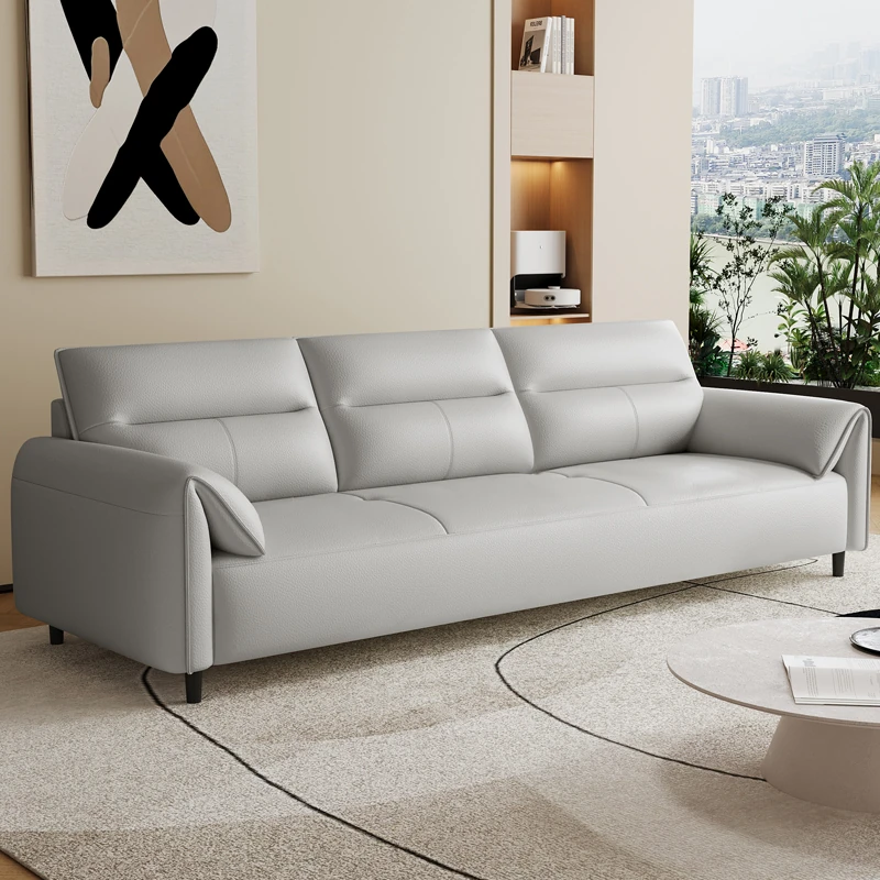 現代的なシンプルデザインの3人掛けソファ - 高品質の本革と頑丈な木枠で快適さを追求!猫の爪にも強い耐久性を持つ、大小様々なリビングルームにぴったりのコンビネーションソファ。おしゃれで機能的な空間を演出!
