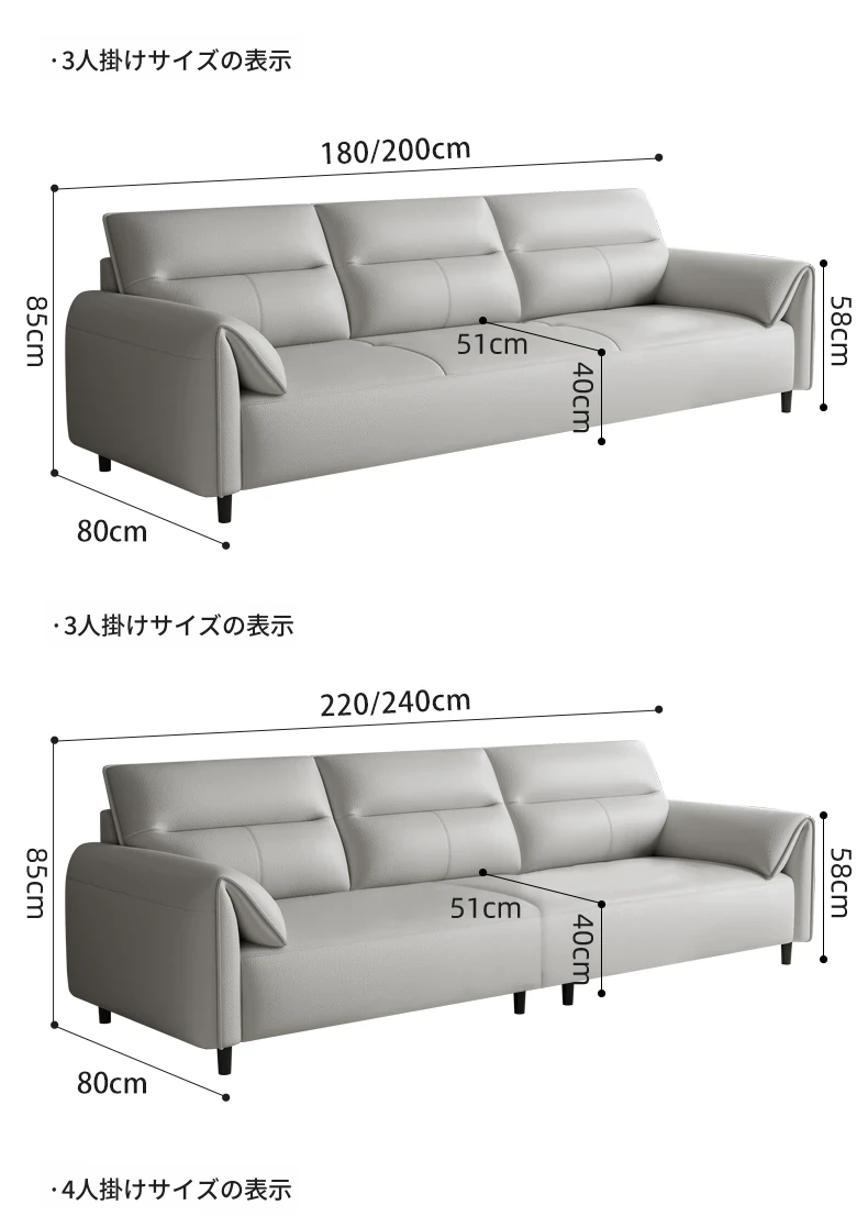 3人用(1.8m長)ストレートソファ