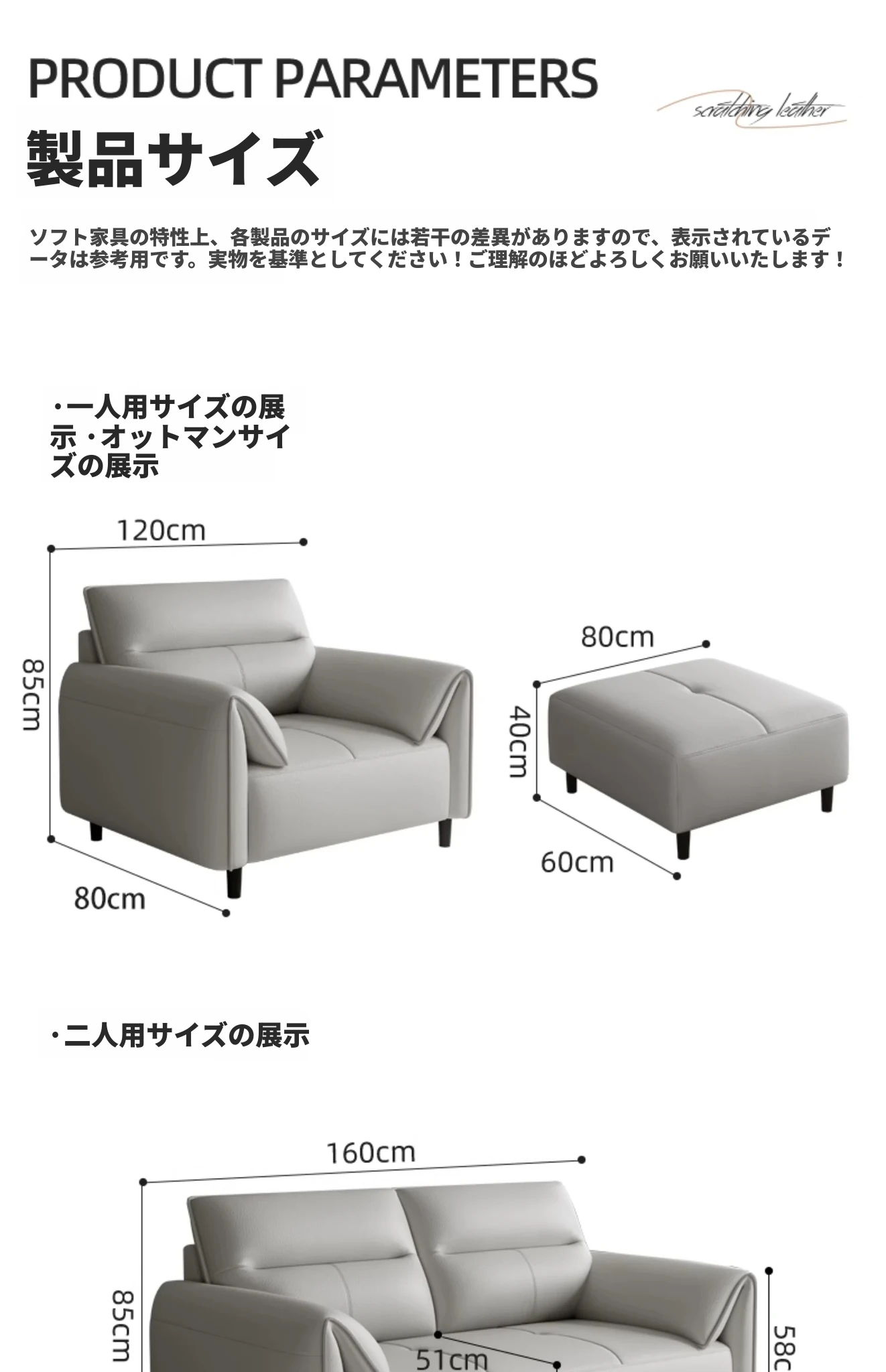 1人用(1.2m長)ストレートソファ