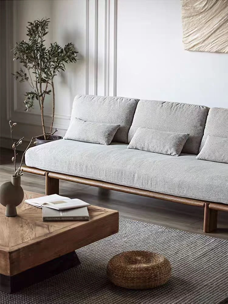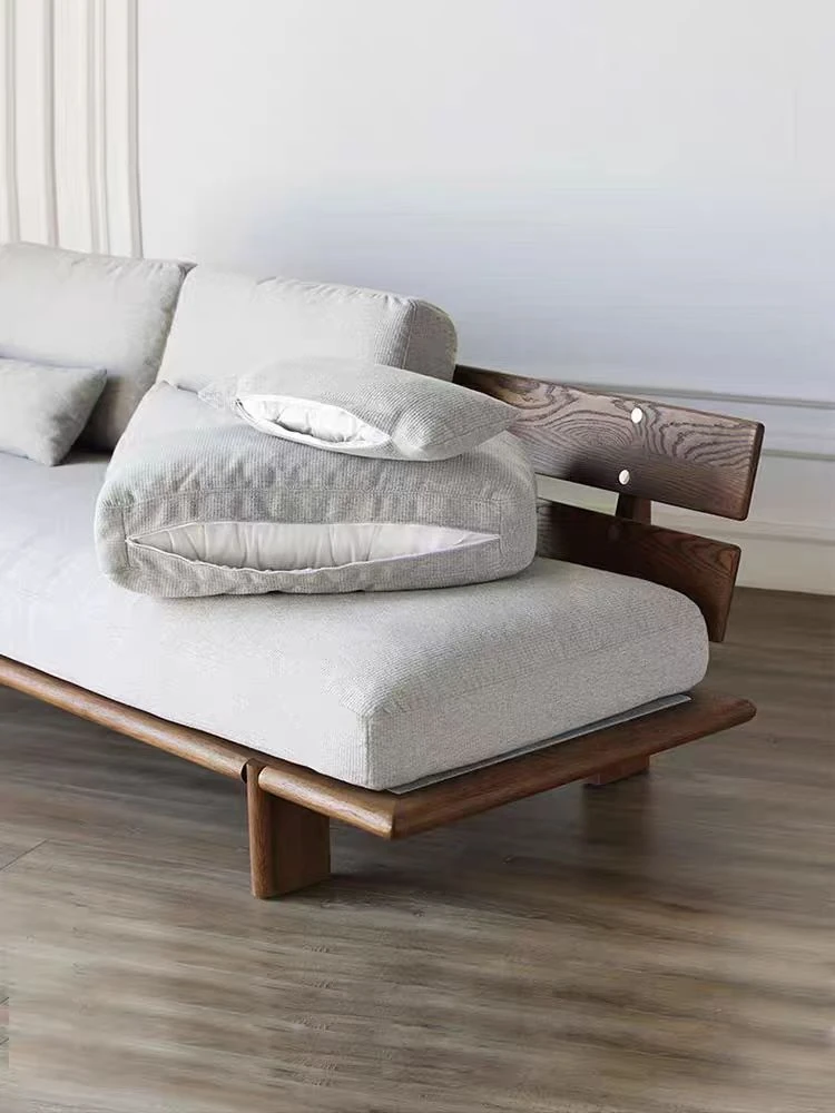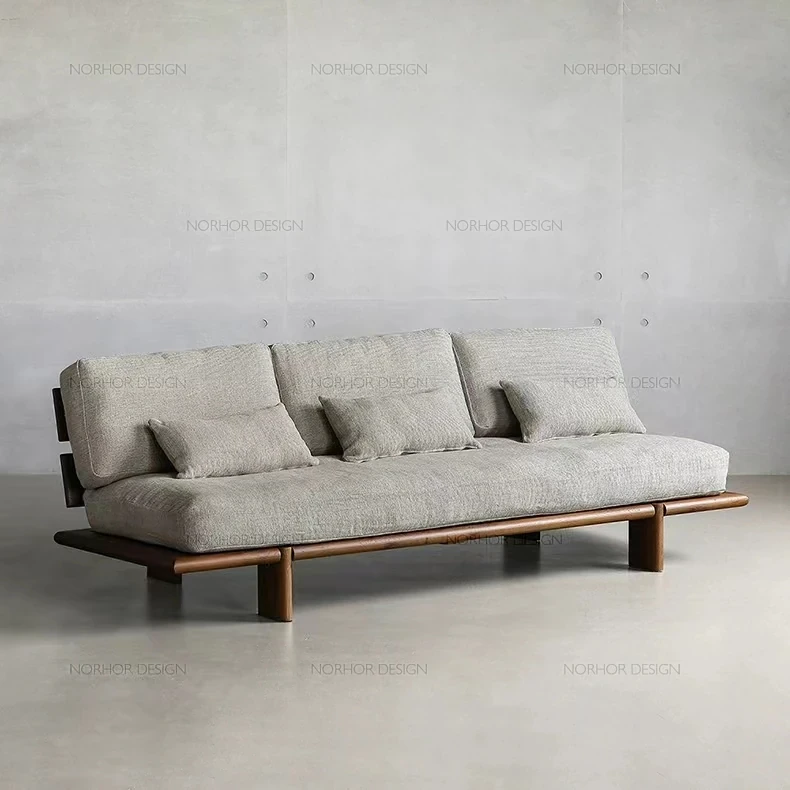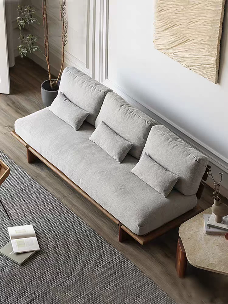 現代的シンプルな三人掛け布張りソファ - リビングに最適な実木製、コンパクトなデザインのアームレスソファとトレンドの一人掛けチェアで、狭いお部屋にもぴったり!