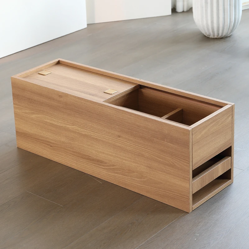 ピエモンテスタイルの豆腐ブロックソファサイドテーブル - モダンでシンプルな四角形のコーヒーテーブル、収納力抜群のティーキャビネット付き!あなたのリビングに洗練された雰囲気をプラスします。