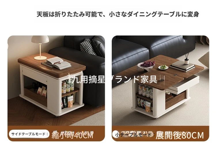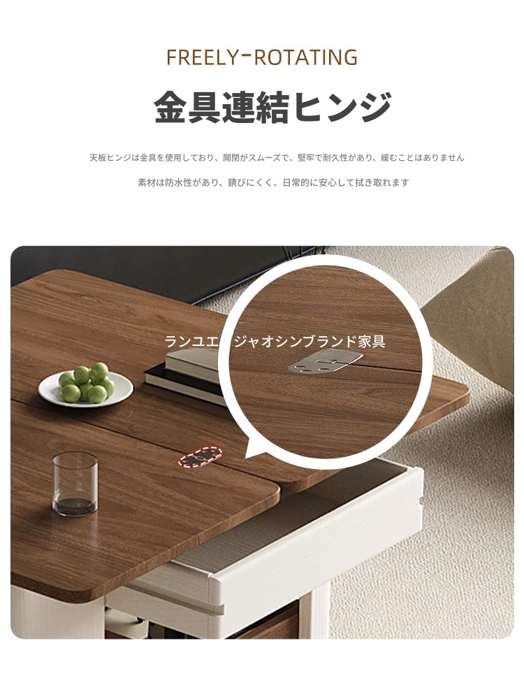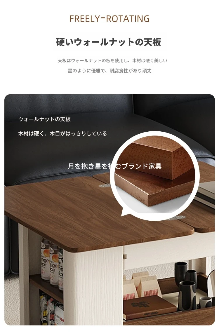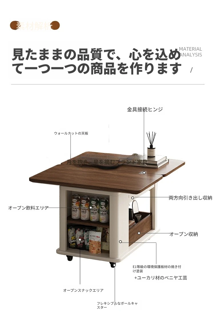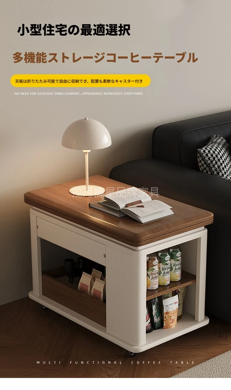 移動式の無垢材製モダンティーコーヒーテーブル - リビングに最適なソファサイドキャビネット!コンパクトな小型住宅向け、伸縮可能で折りたたみ式の便利なサイドテーブル。