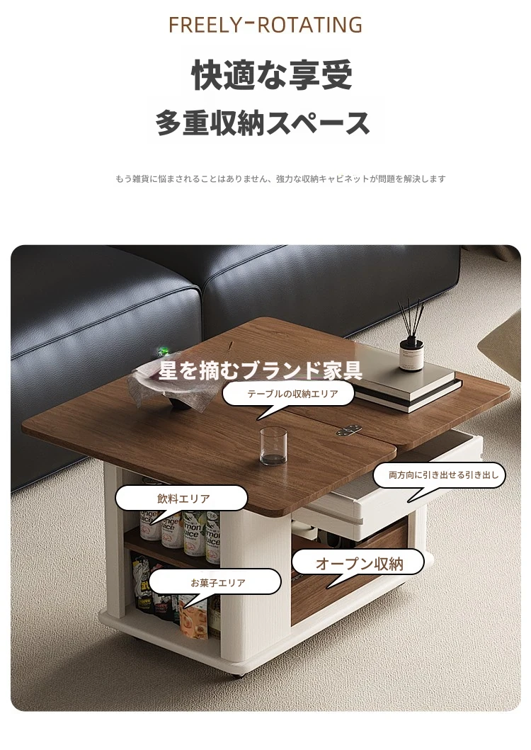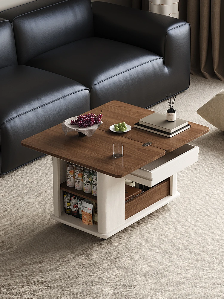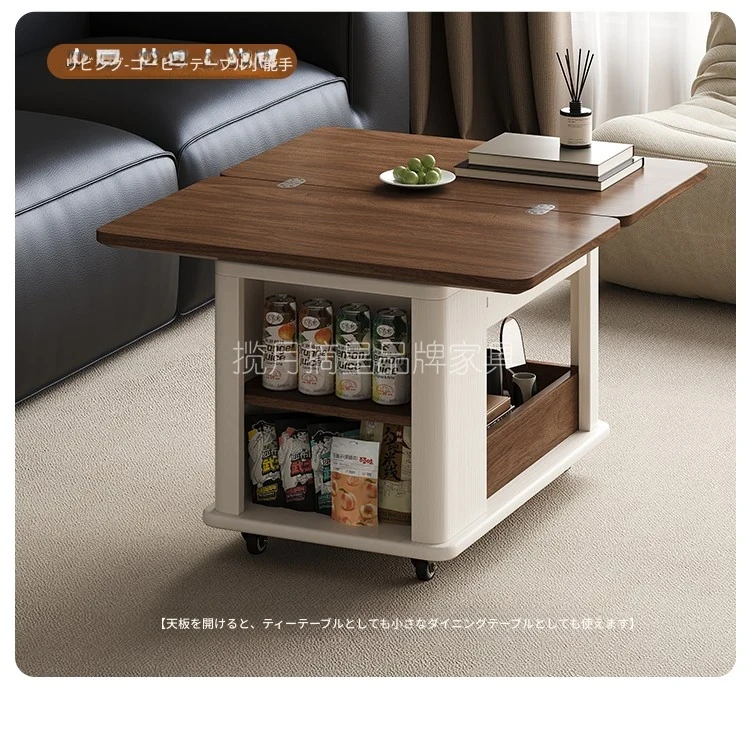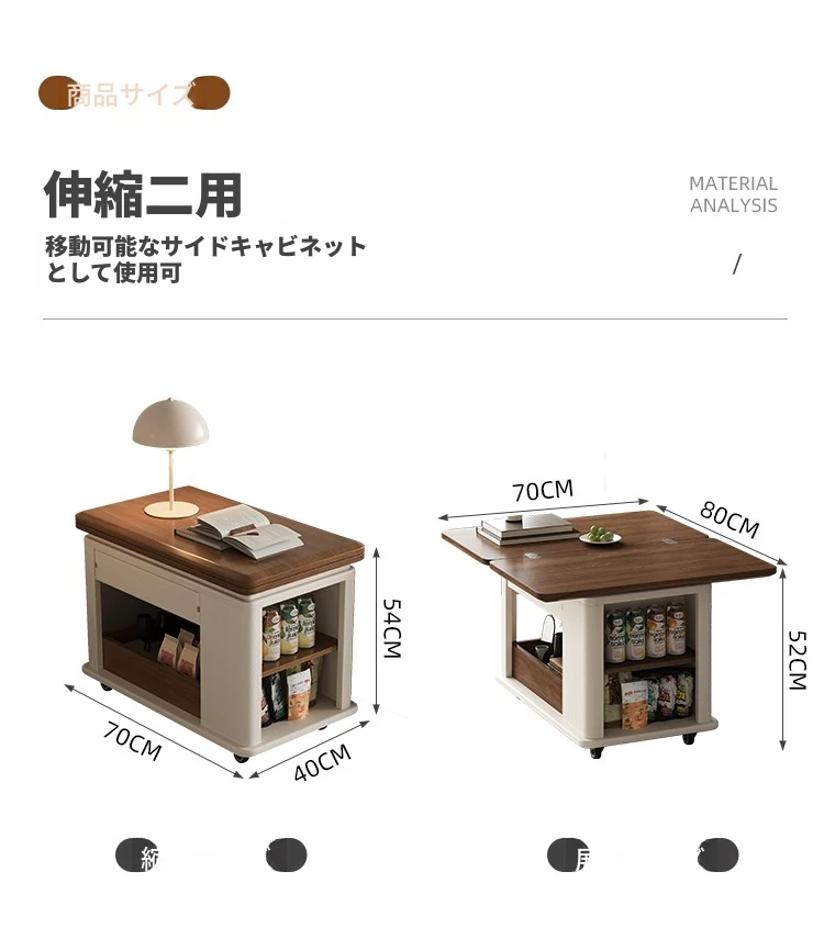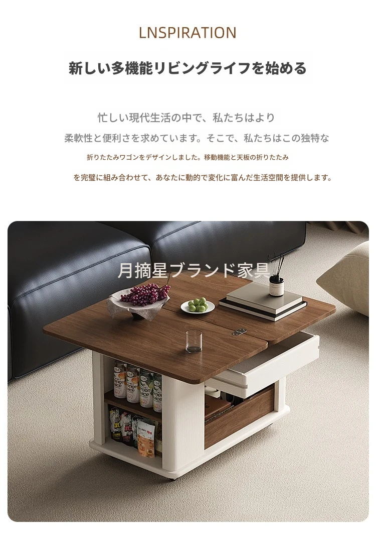 移動式の無垢材製モダンティーコーヒーテーブル - リビングに最適なソファサイドキャビネット!コンパクトな小型住宅向け、伸縮可能で折りたたみ式の便利なサイドテーブル。