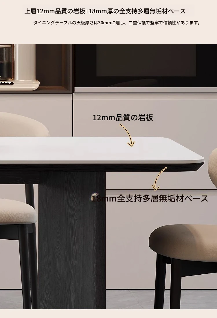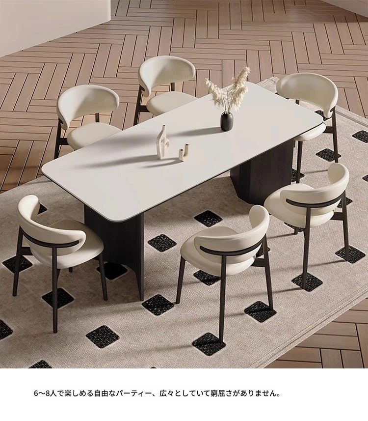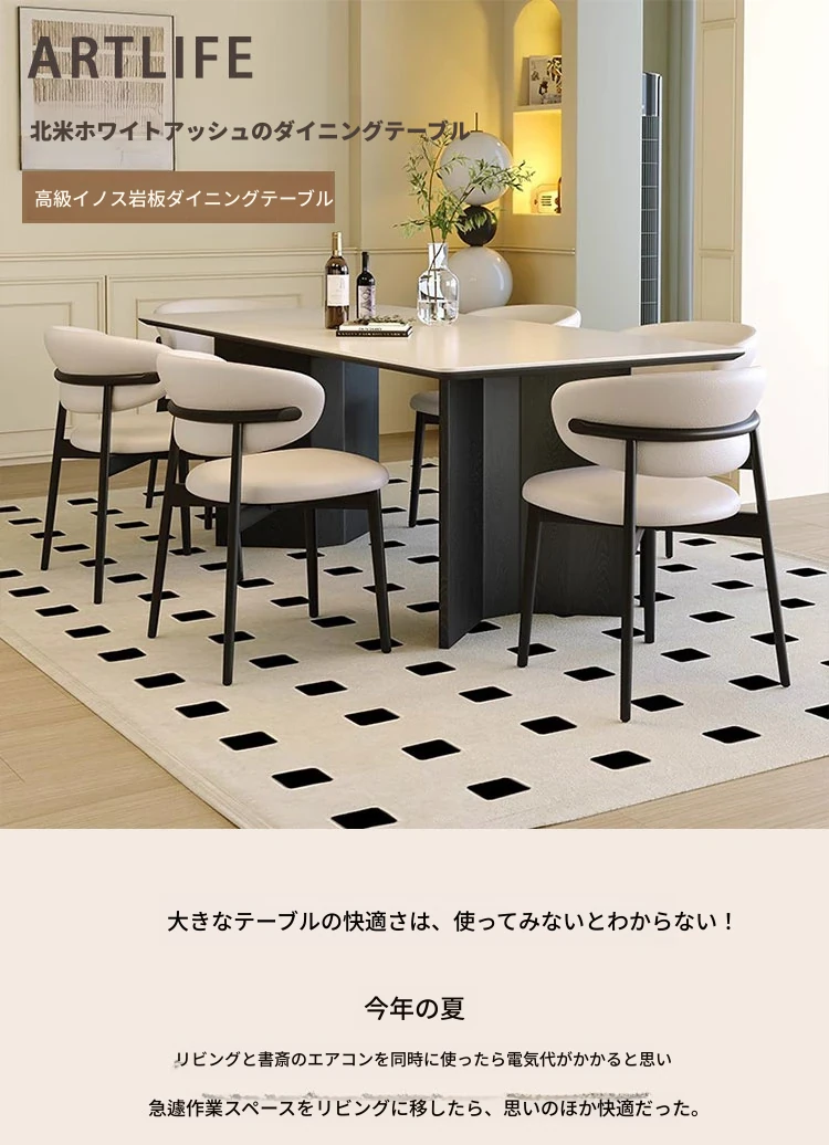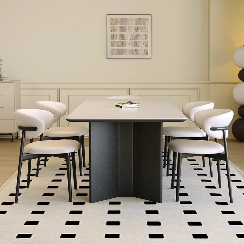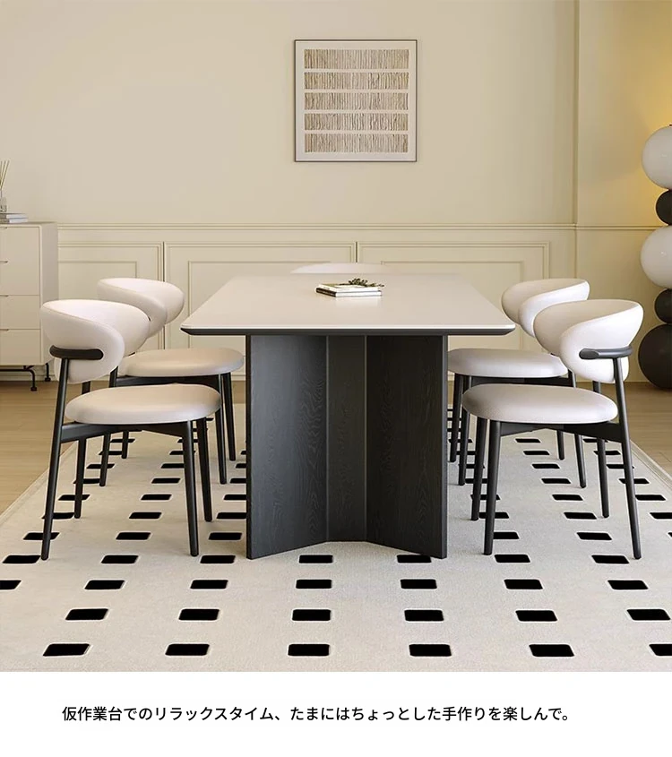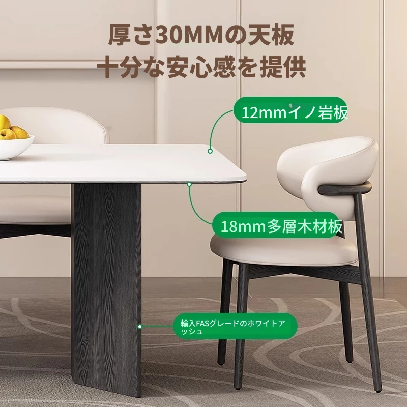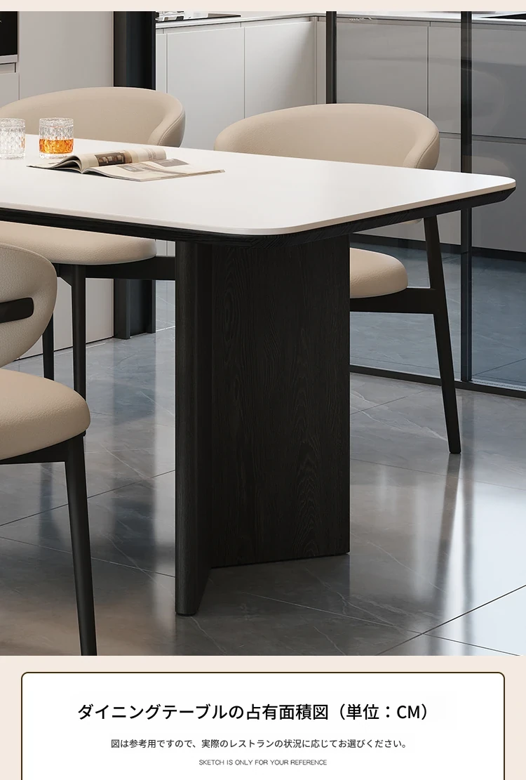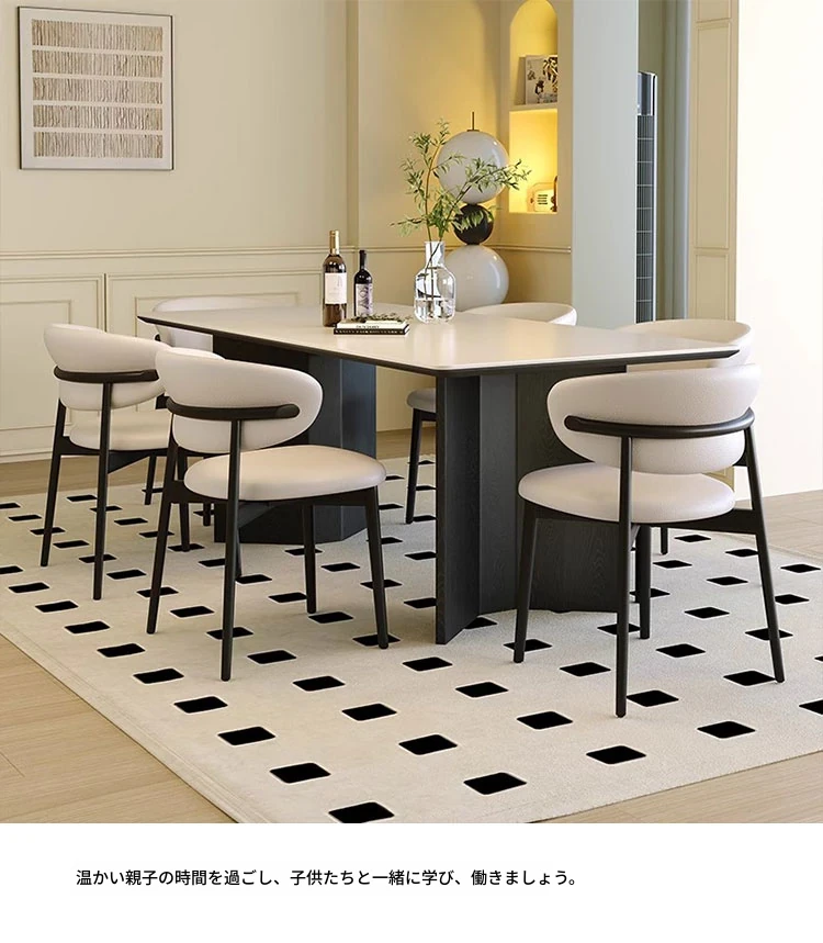 モダンな実木製ダイニングテーブルセット - スタイリッシュなブラックの軽奢デザイン、コンパクトな長方形で小さなスペースにも最適!イタリアンミニマリズムを体験し、食事の時間を特別に演出します。