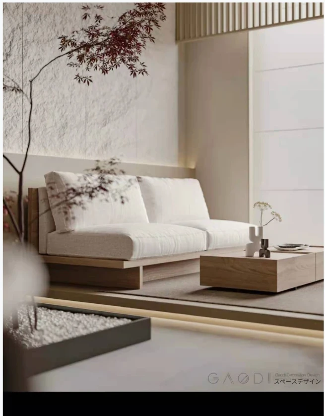 北欧風・和風の無垢材ソファ|洗える布製・シンプルでおしゃれな一人掛けソファ|民宿やリビングに最適な組み合わせ可能な木製チェアセット