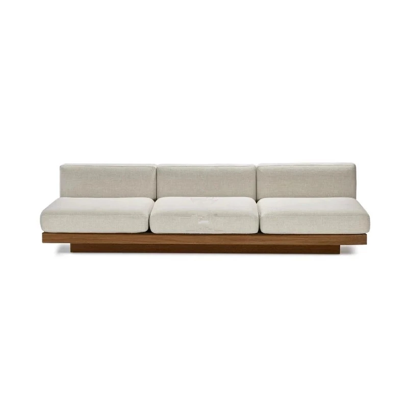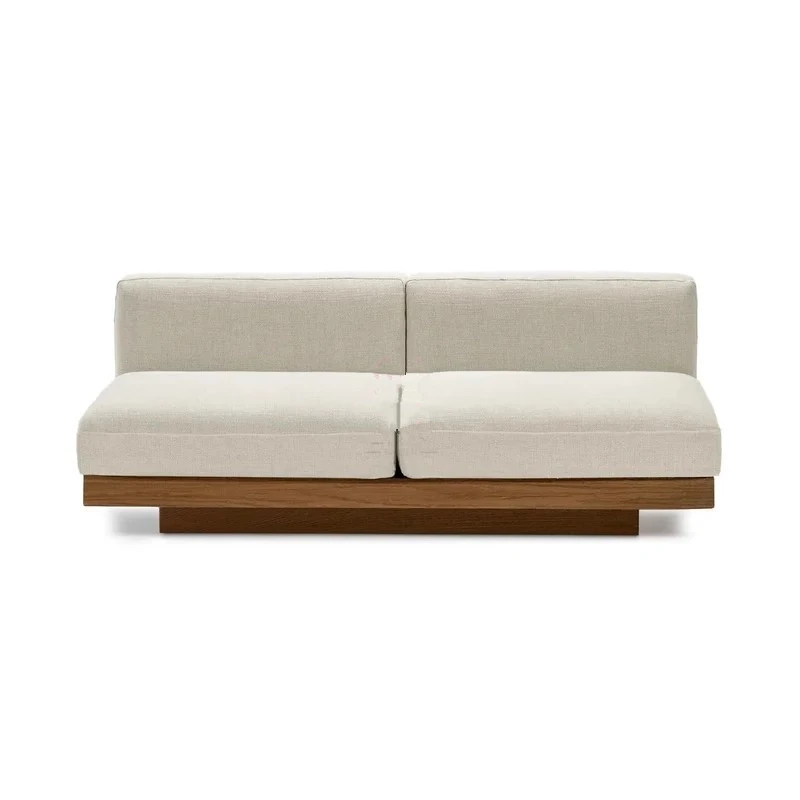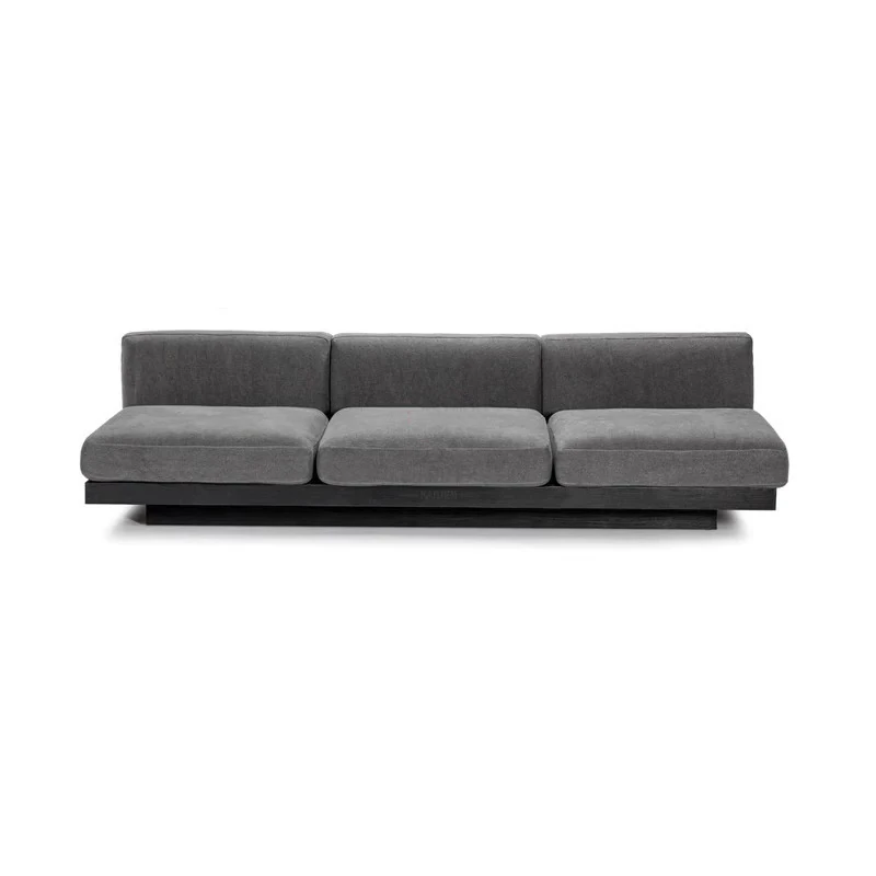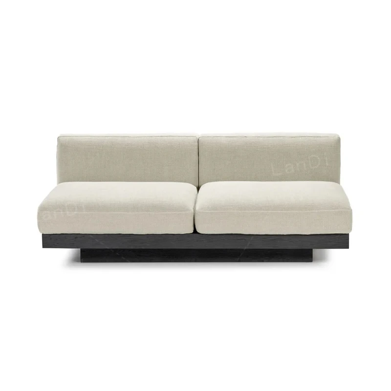 北欧スタイルのシンプルな無垢材とファブリックを使用した民宿・ホテル向けのデザイナー創造的レトロ直線ソファ、アームレスで洗練された空間を演出します。おしゃれで居心地の良い接客空間に最適です!