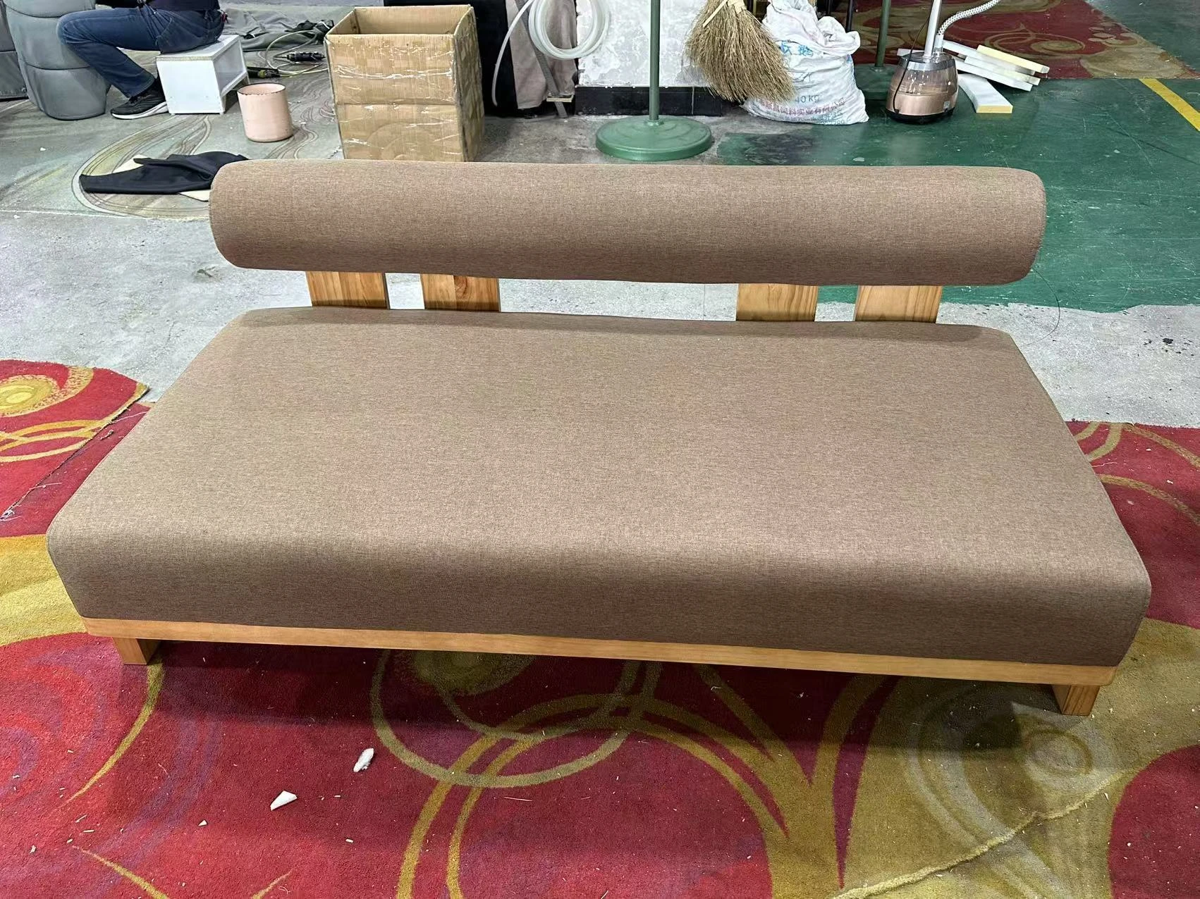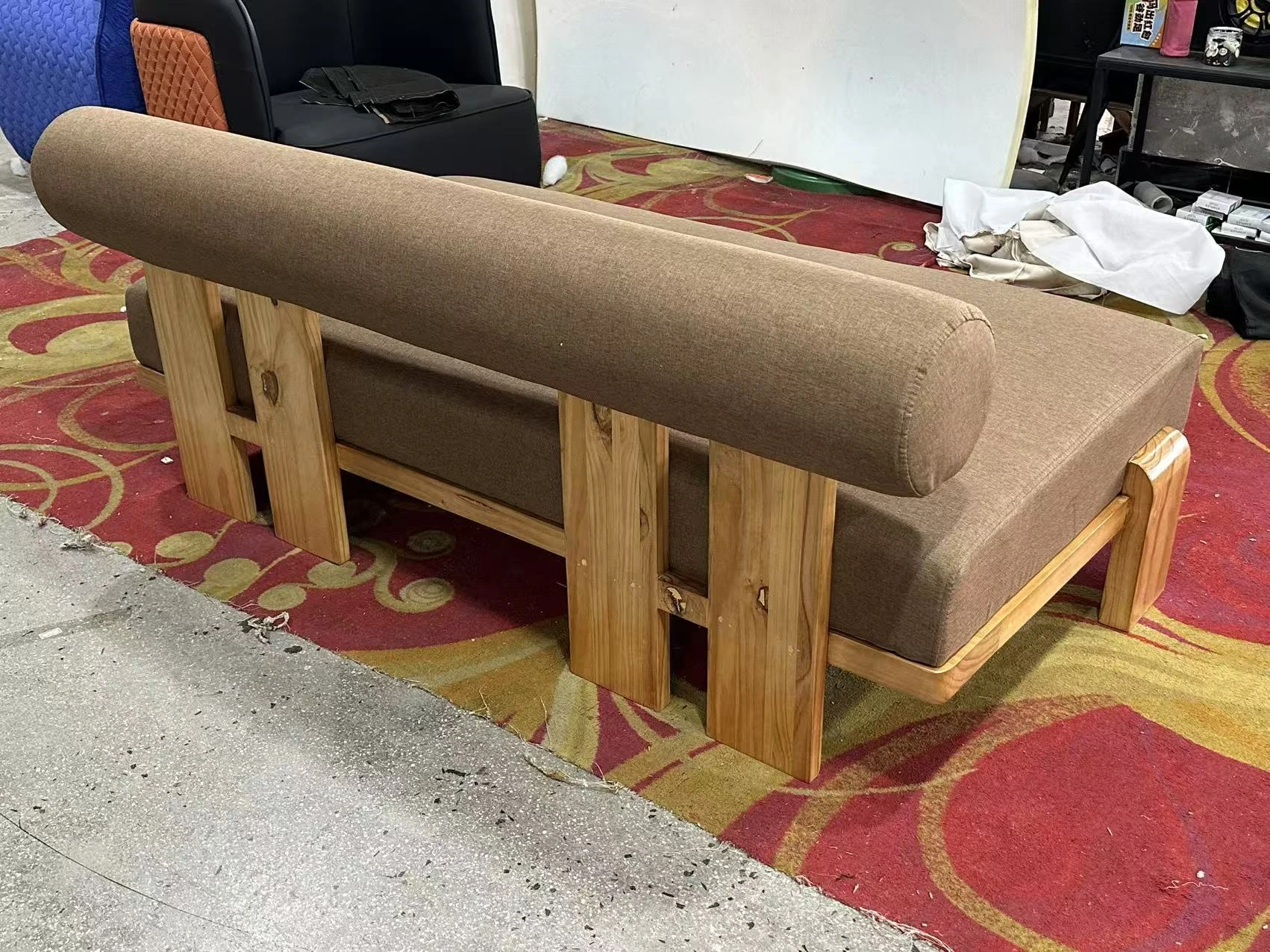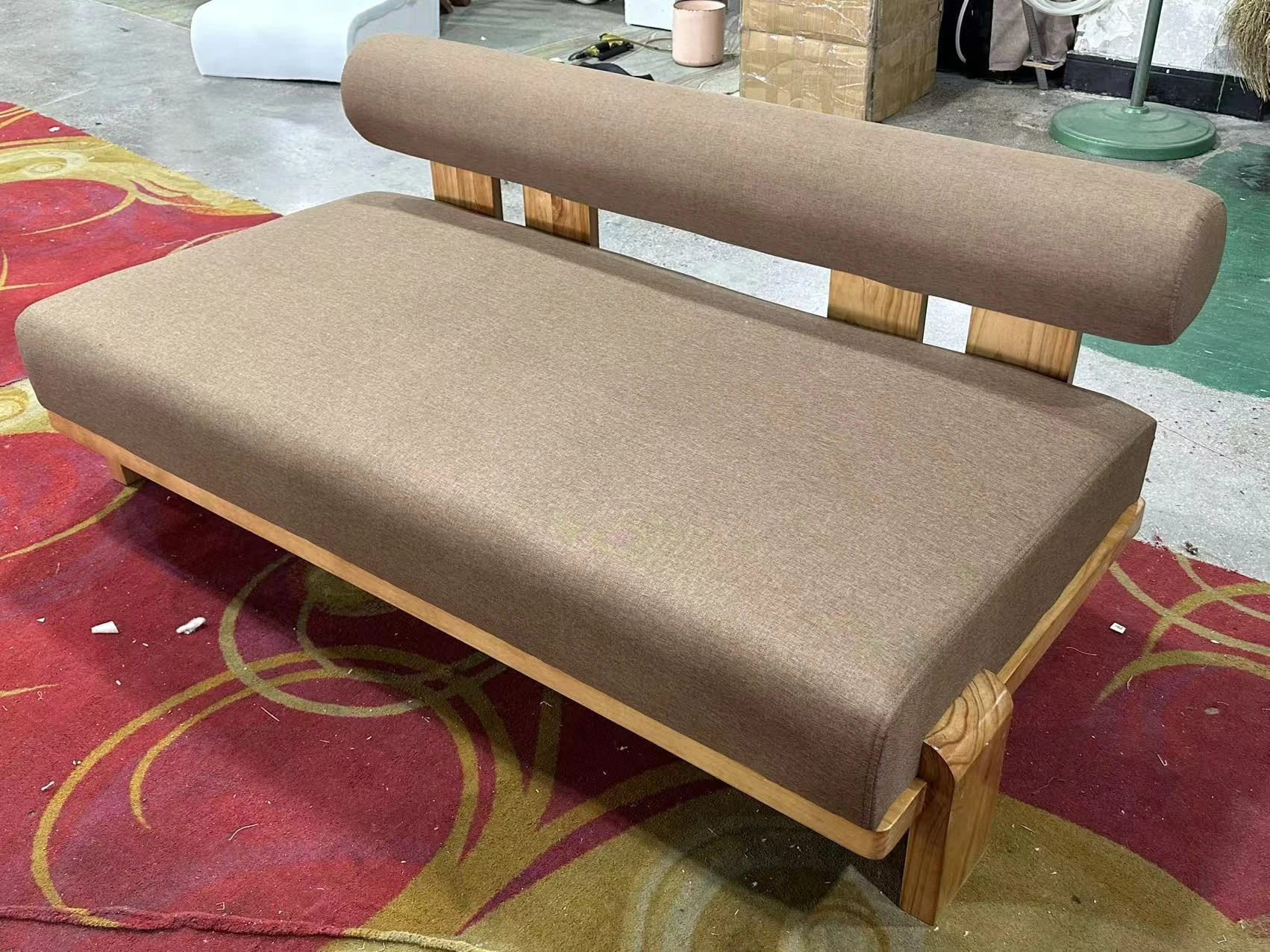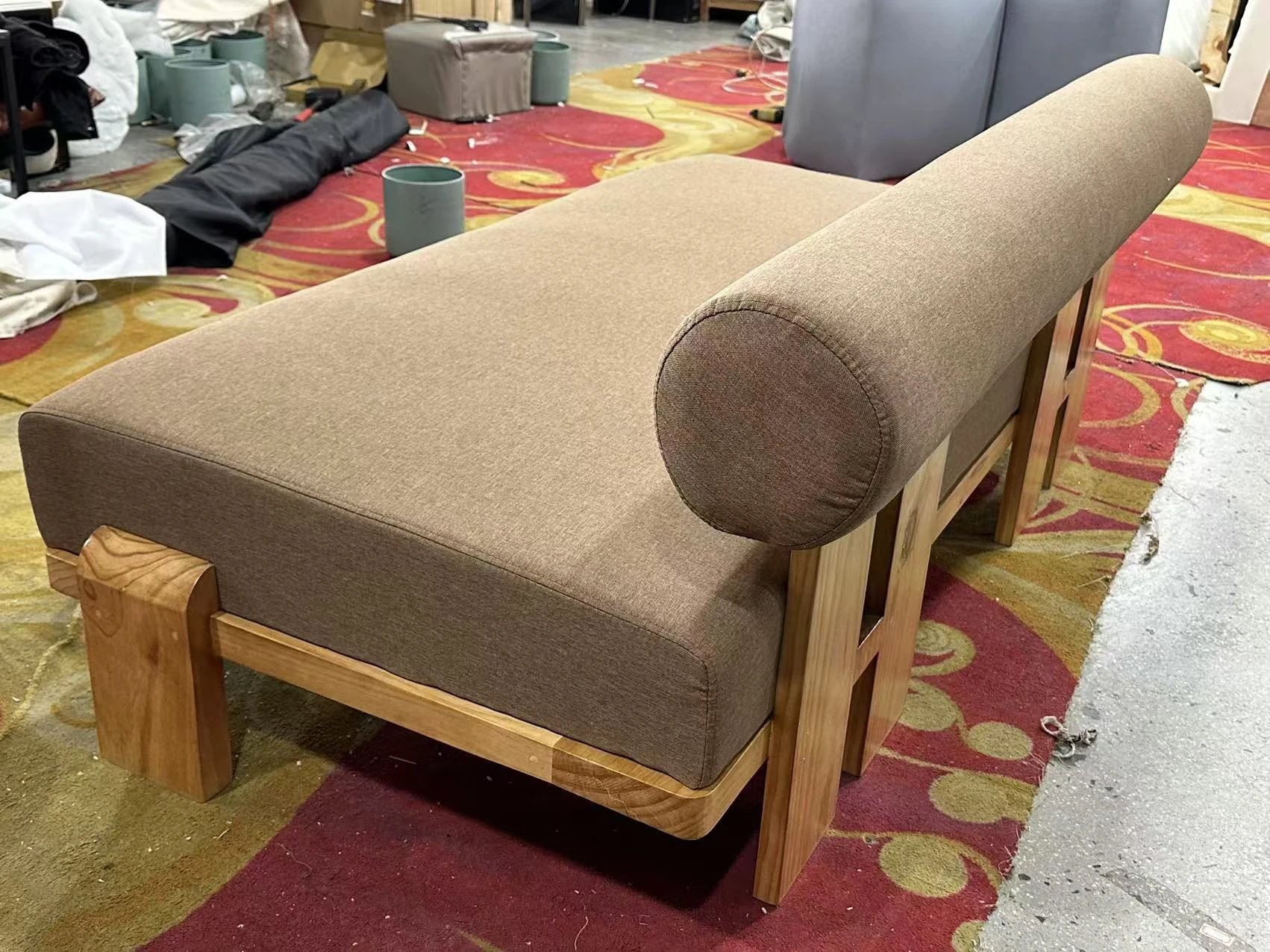 北欧風シンプルデザインの無垢材ソファ|布張りのリラックスチェア|民宿やホテルのモデルルームに最適|コンパクトな小型住宅にもぴったりのラウンジチェア!
