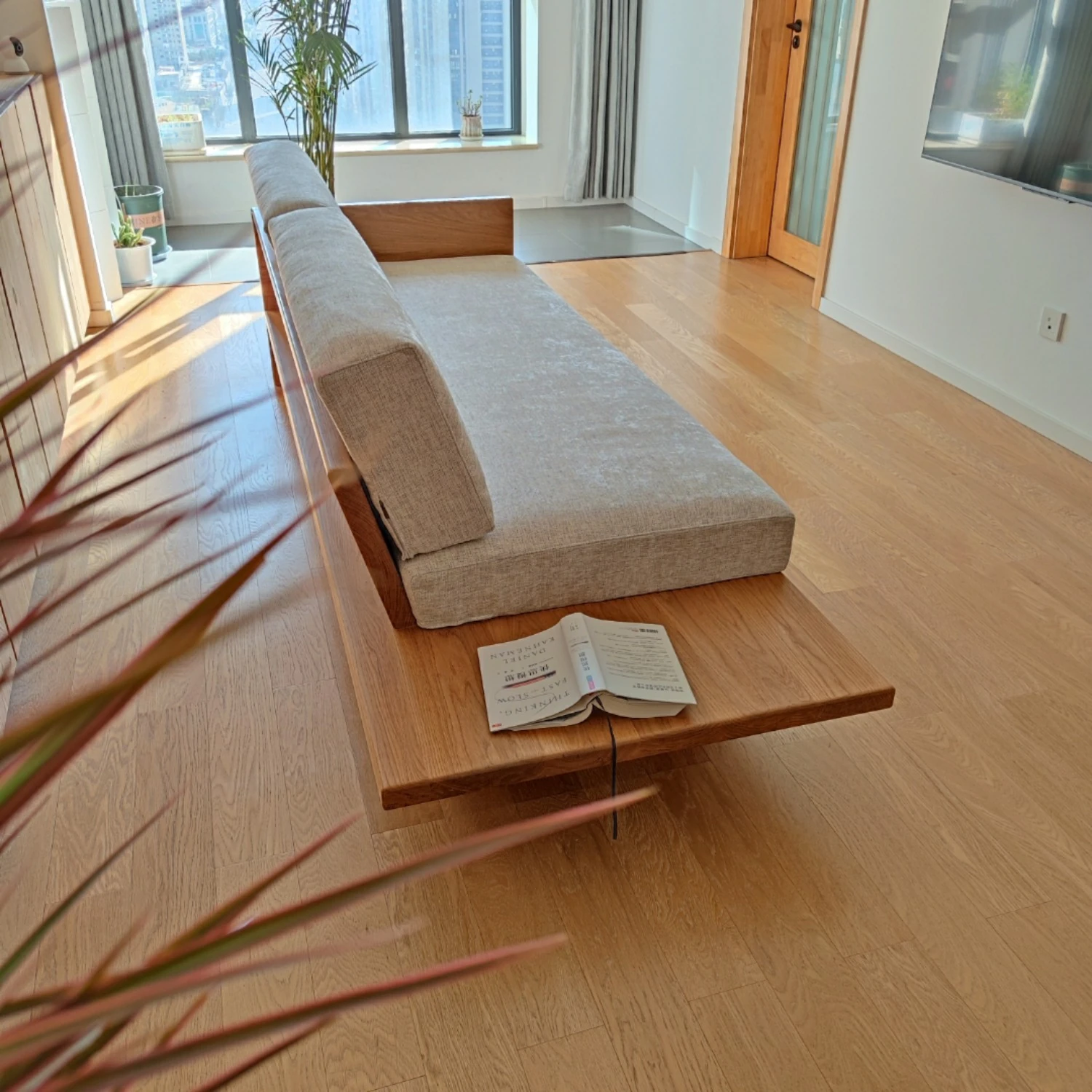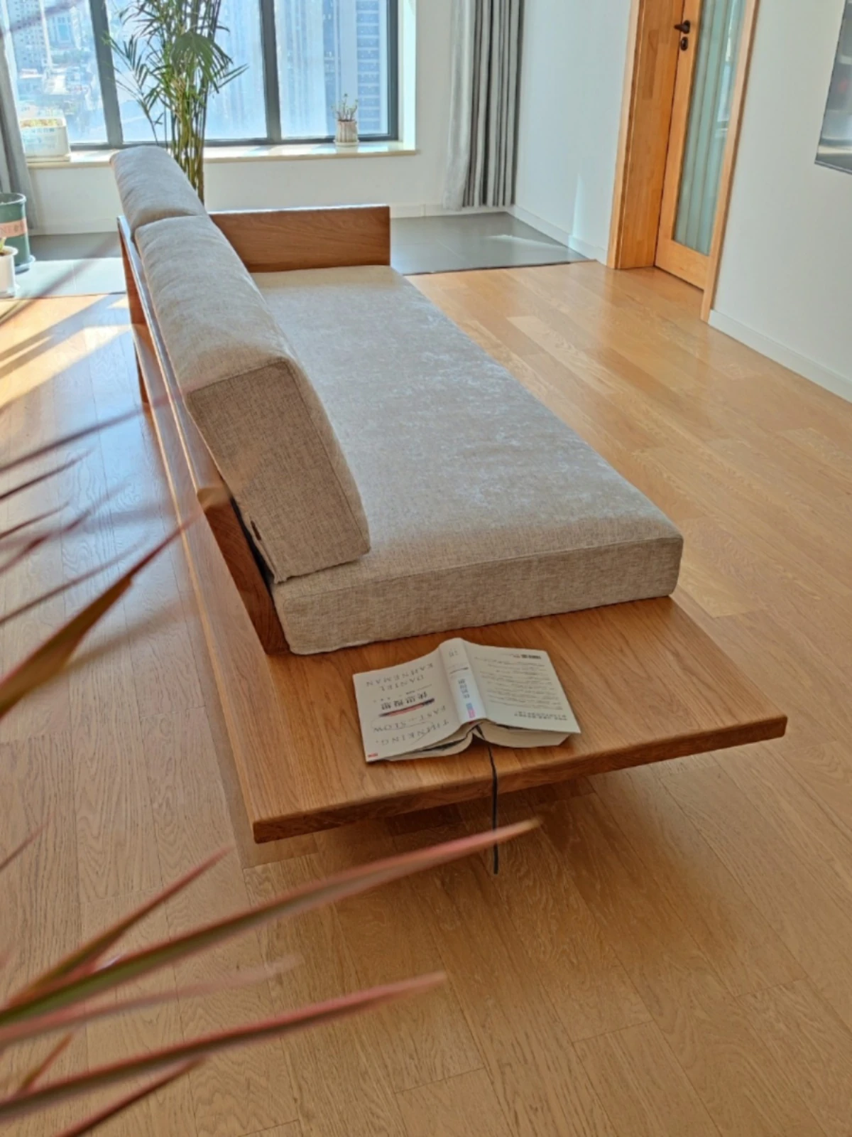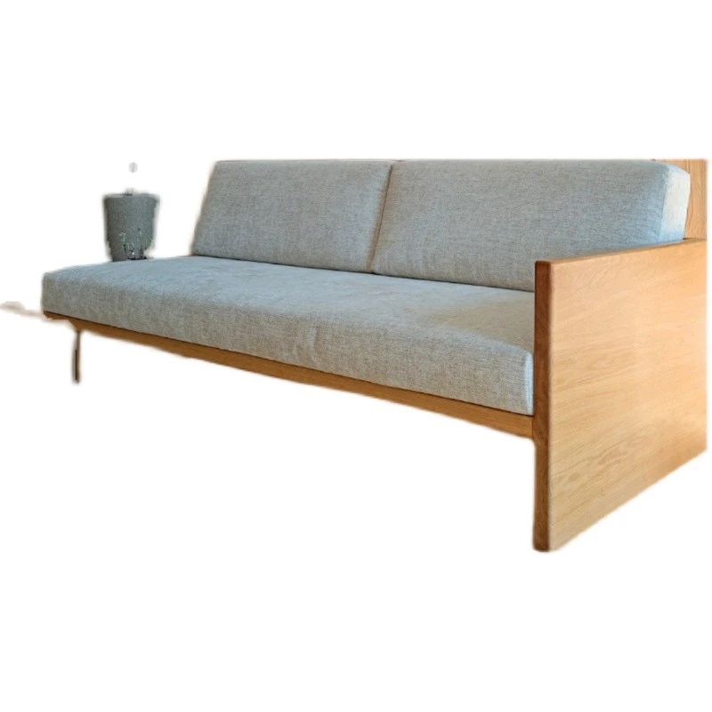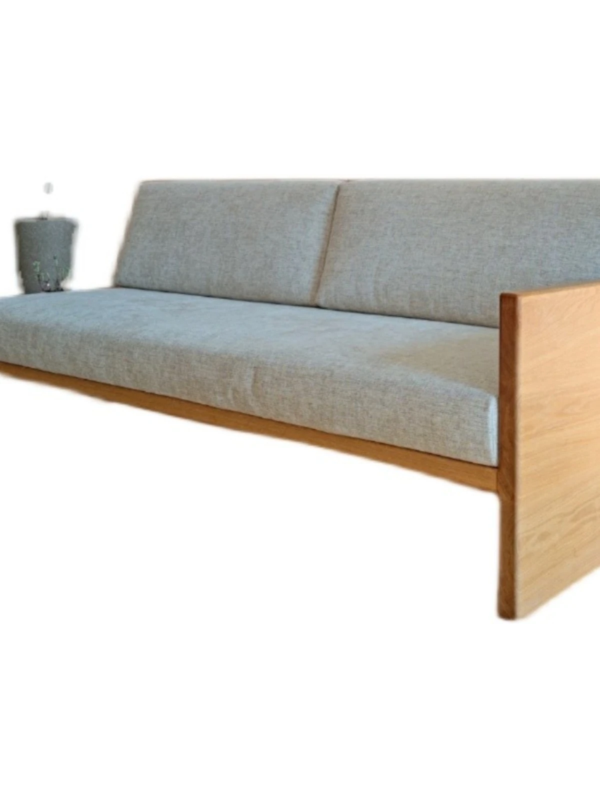 北欧スタイルの小型日式無垢材ソファ、侘び寂びの風情が漂うリビングにぴったり!洗える布製、モダンな三人掛けで民宿やおしゃれな空間に最適です。あなたの生活空間を上品に演出します!