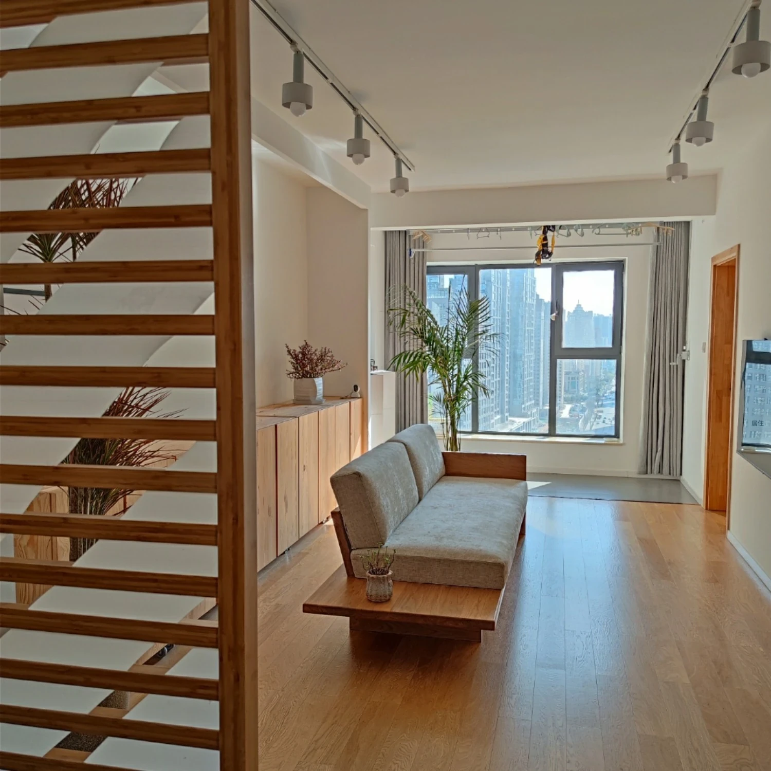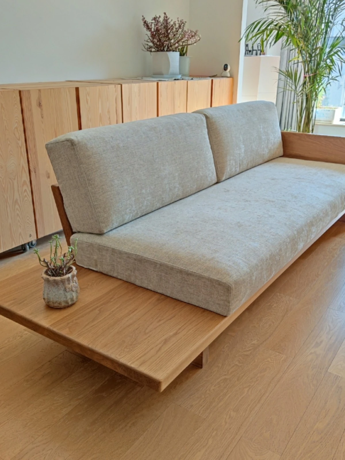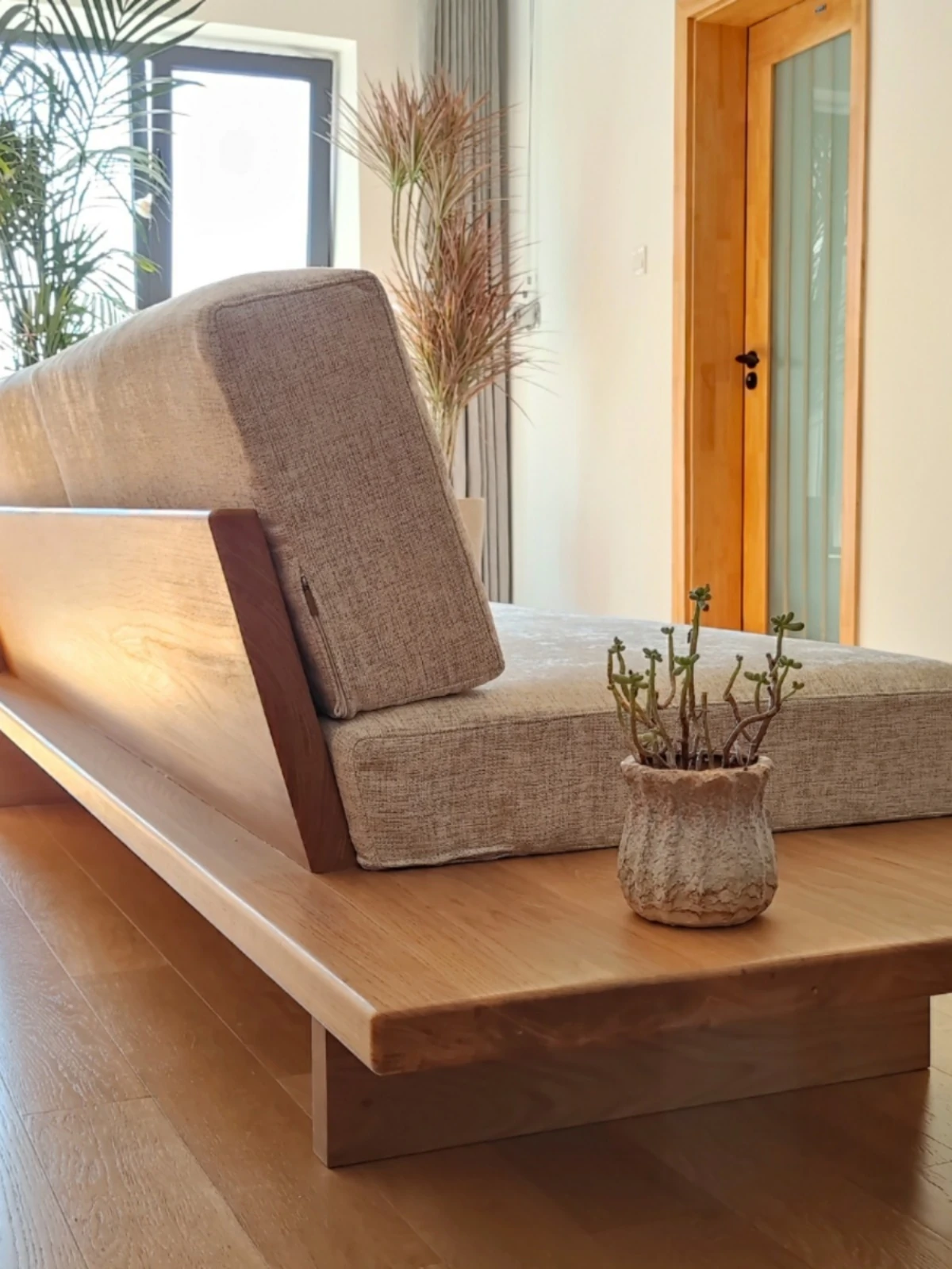 北欧スタイルの小型日式無垢材ソファ、侘び寂びの風情が漂うリビングにぴったり!洗える布製、モダンな三人掛けで民宿やおしゃれな空間に最適です。あなたの生活空間を上品に演出します!
