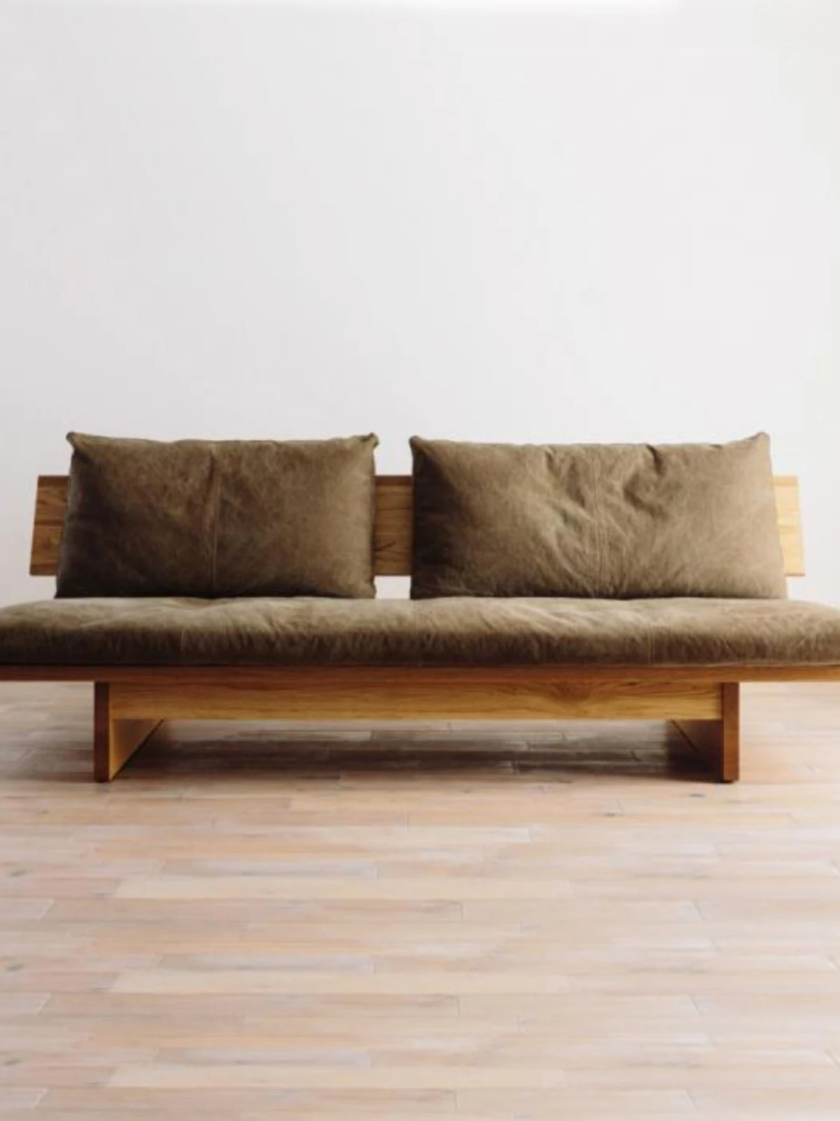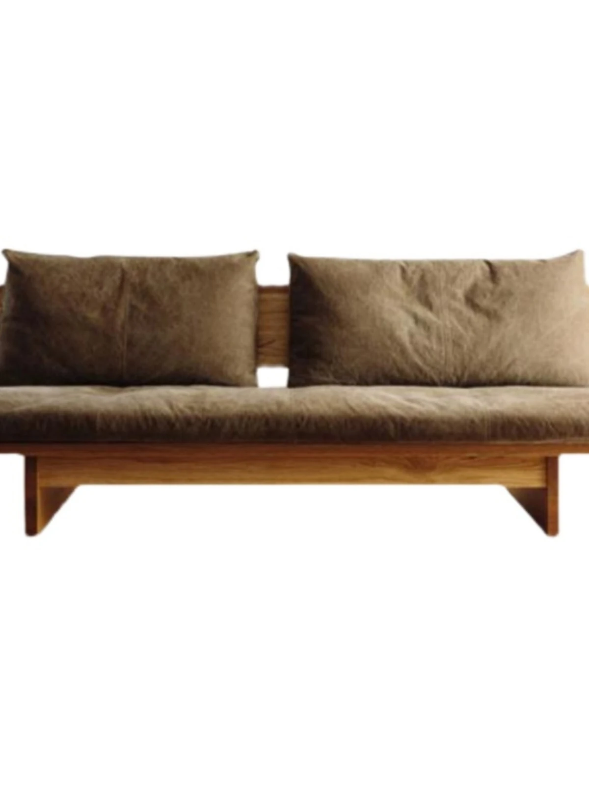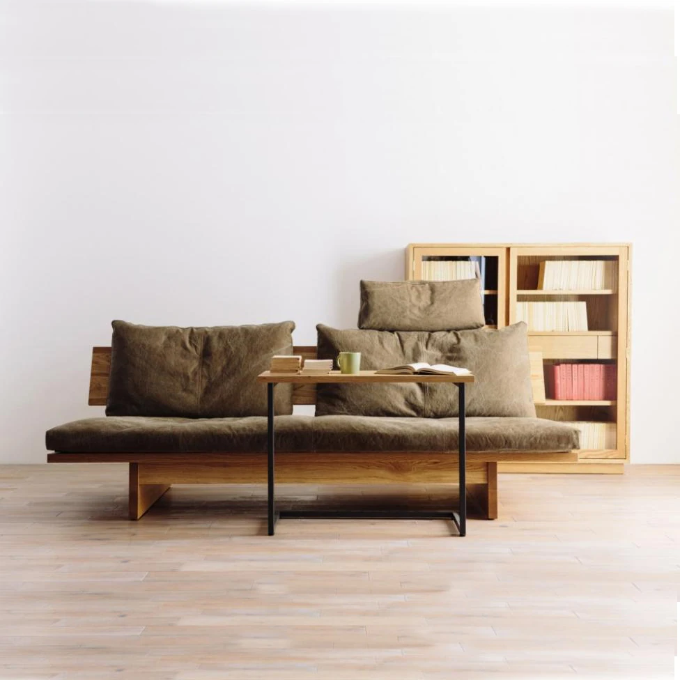 北欧風の実木製小型ソファチェア - リラックスできるダブルソファと組み合わせた侘び寂びスタイルの布製貴妃椅子。おしゃれな民宿にぴったりな、コンパクトで快適なリビングの必需品!