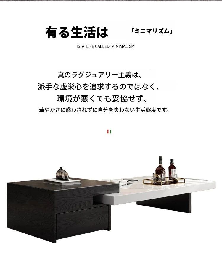 イタリアンミニマリズムの浮遊式ロングテーブル - シンプルで洗練されたデザイン、リビングルームにぴったりの収納力を持つ長方形のコーヒーテーブル。どんなサイズの家にも調和するモダンな一品!