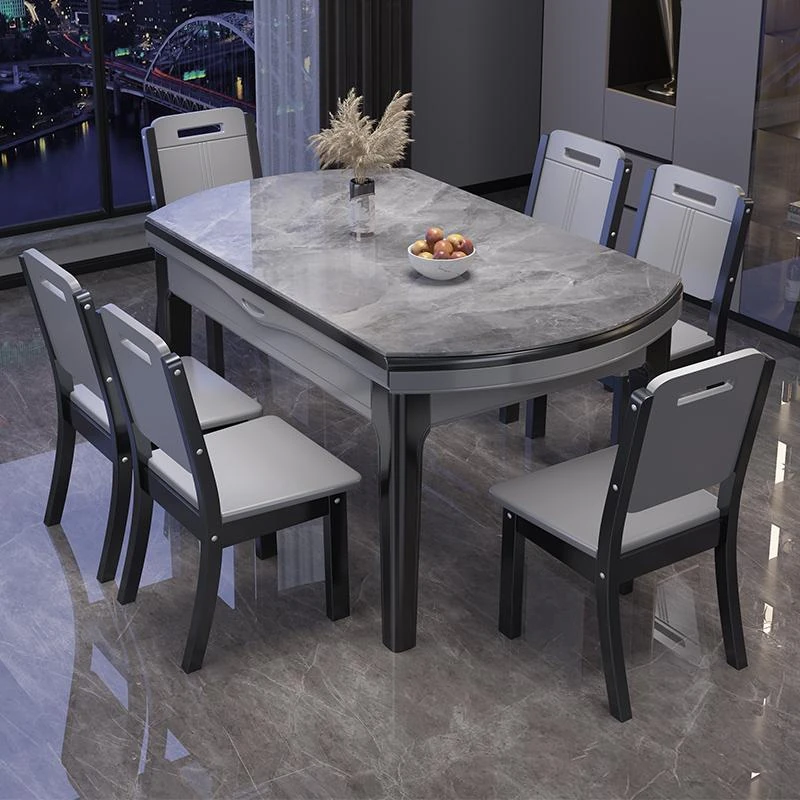 新疆・チベットから送料無料!実木製の岩板ダイニングテーブル&チェアセット。小型住宅に最適なモダンでシンプルなデザイン。伸縮可能で、使い勝手抜群の軽やかさを実現!