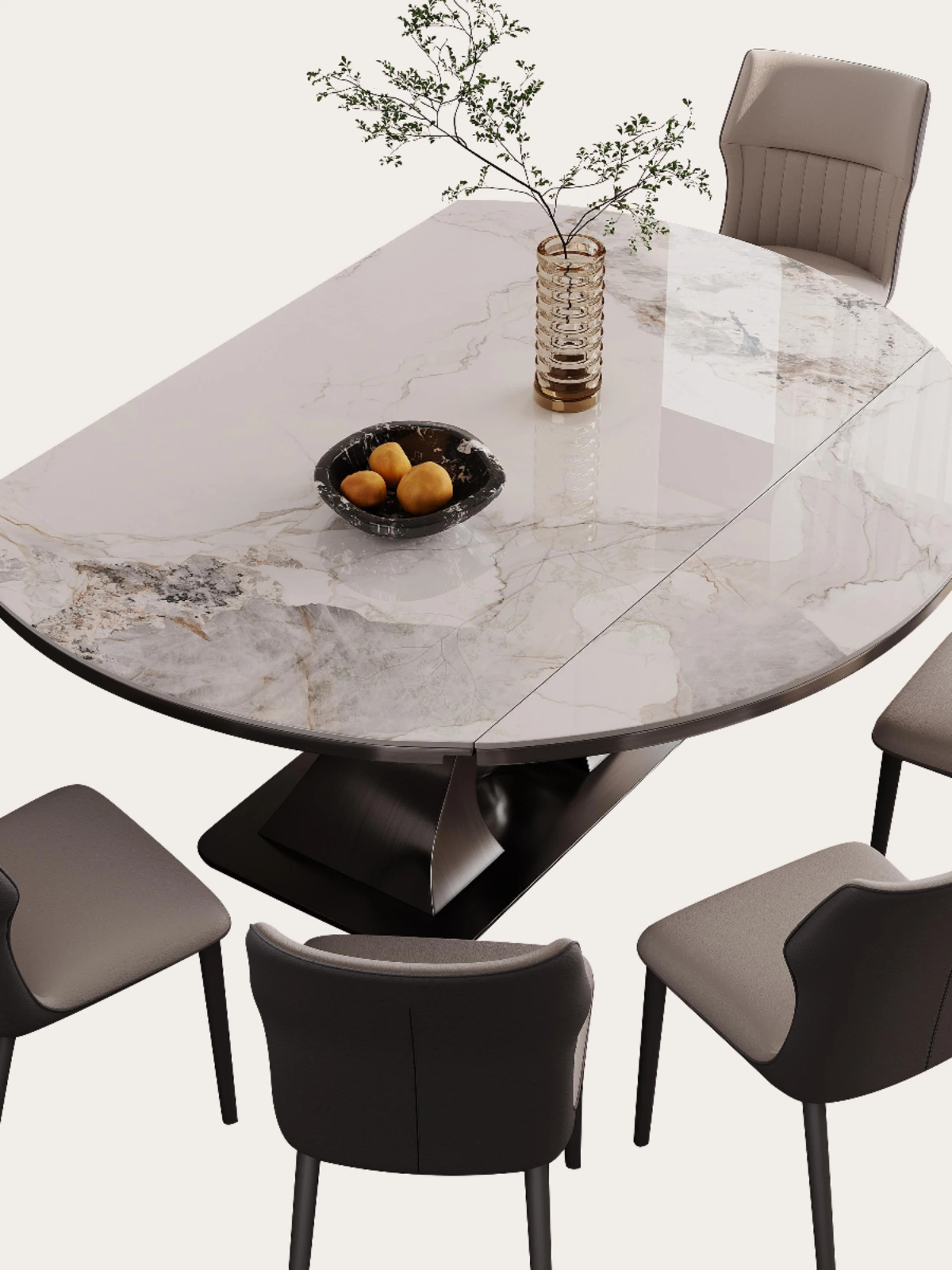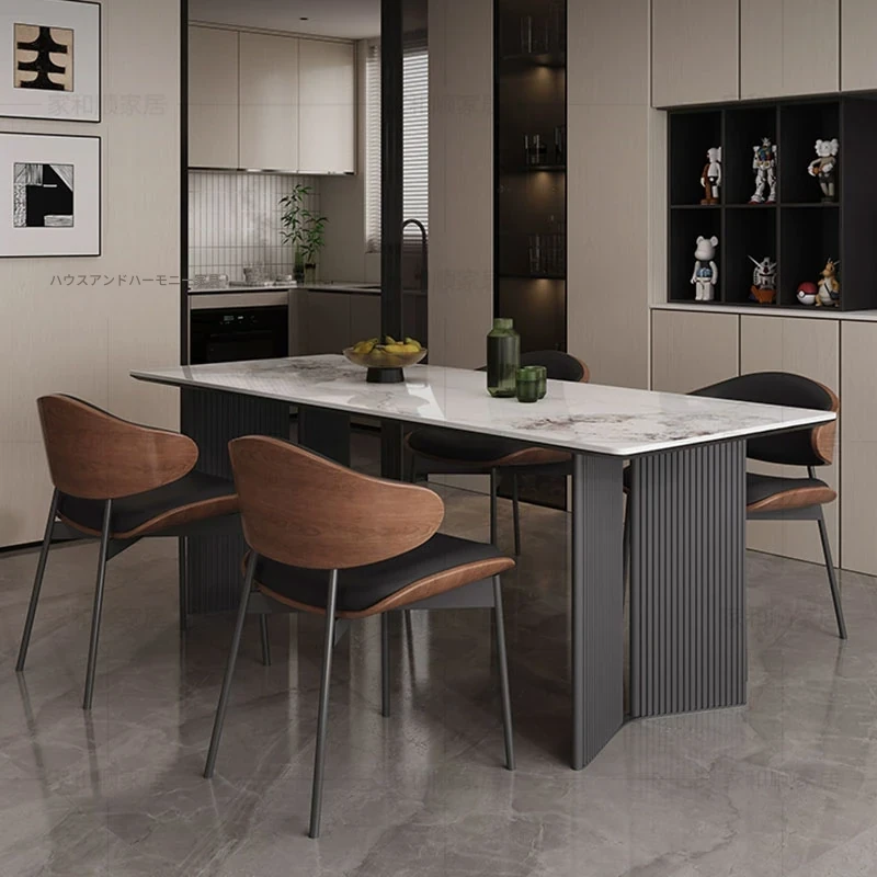 2025年新作!小戸建てにもぴったりな軽奢感溢れるモダンシンプルな岩板ダイニングテーブル&チェアセット。おしゃれな空間を演出し、食事の時間を特別なひとときに!