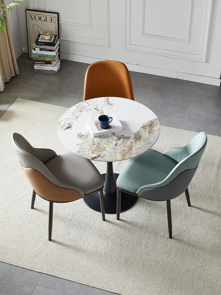 多機能!スタイリッシュな岩板製ダイニングテーブルセット - オフィス、リラックス、接客に最適な陽台用テーブルとチューリップ型小丸テーブル、ティーテーブルとしても活躍!