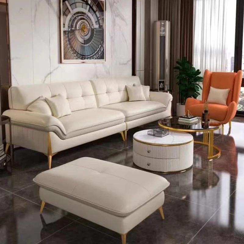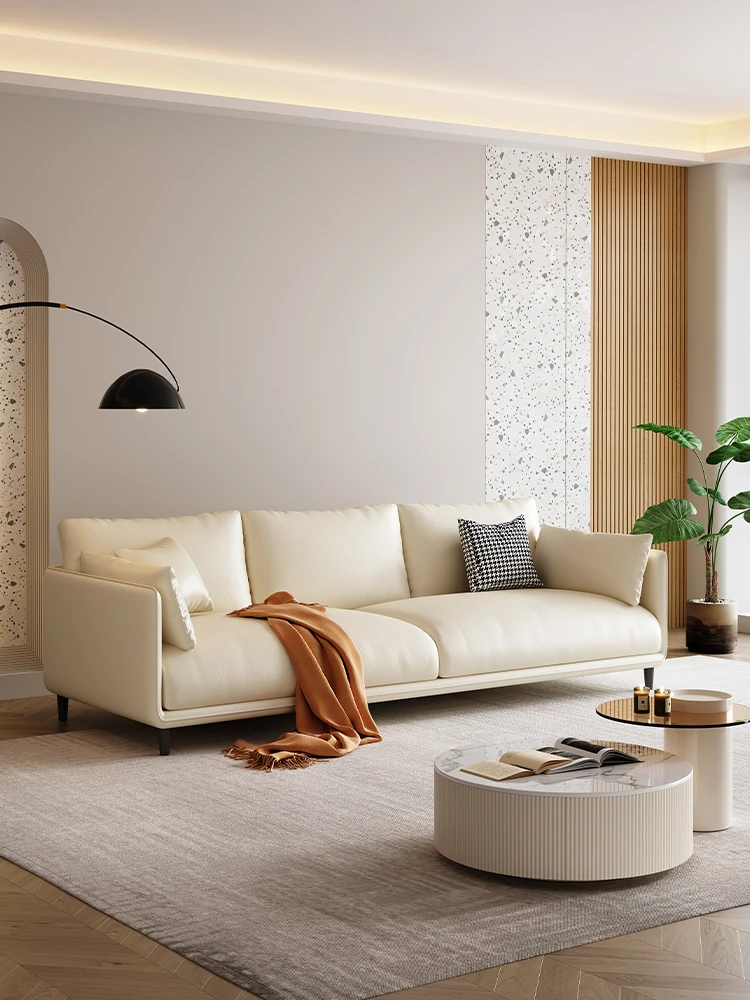 シンプルでモダンな小さなリビングにぴったり!イタリアンライトラグジュアリーデザインの新作キャットグラブレザーソファ、インスタ映えするコンビネーションセット!おしゃれで快適な空間を演出します!