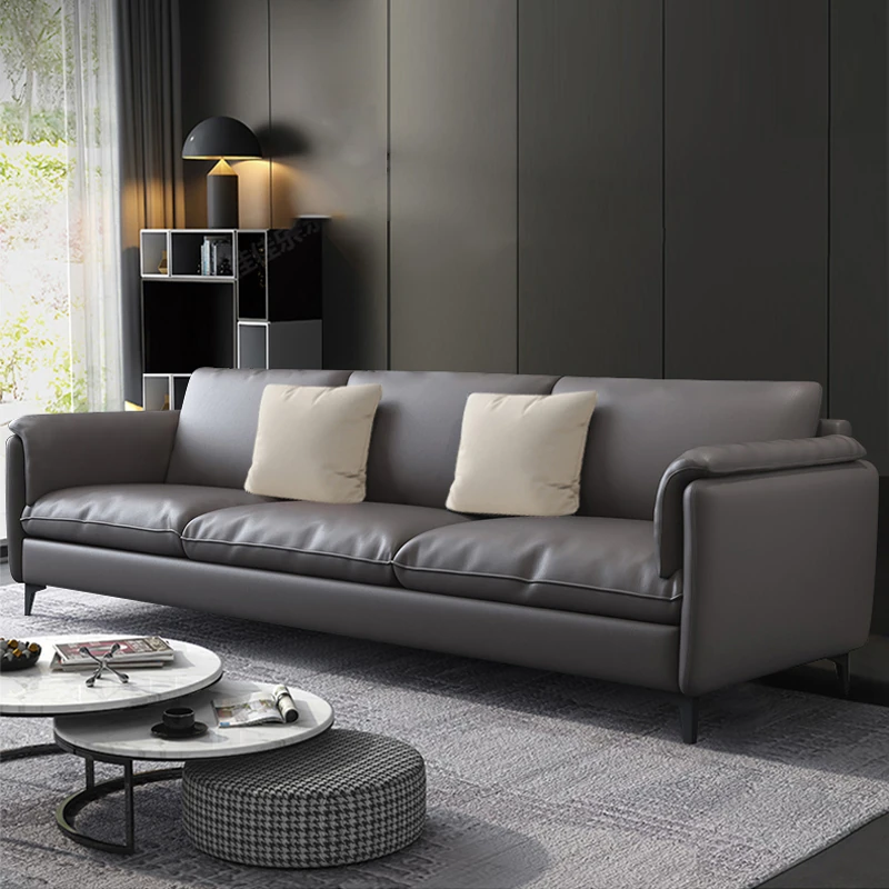 イタリアンミニマリズム真皮ソファ|直角3人掛け|小型リビングに最適|上質なナッパレザー使用|北欧風のラグジュアリー感を演出!