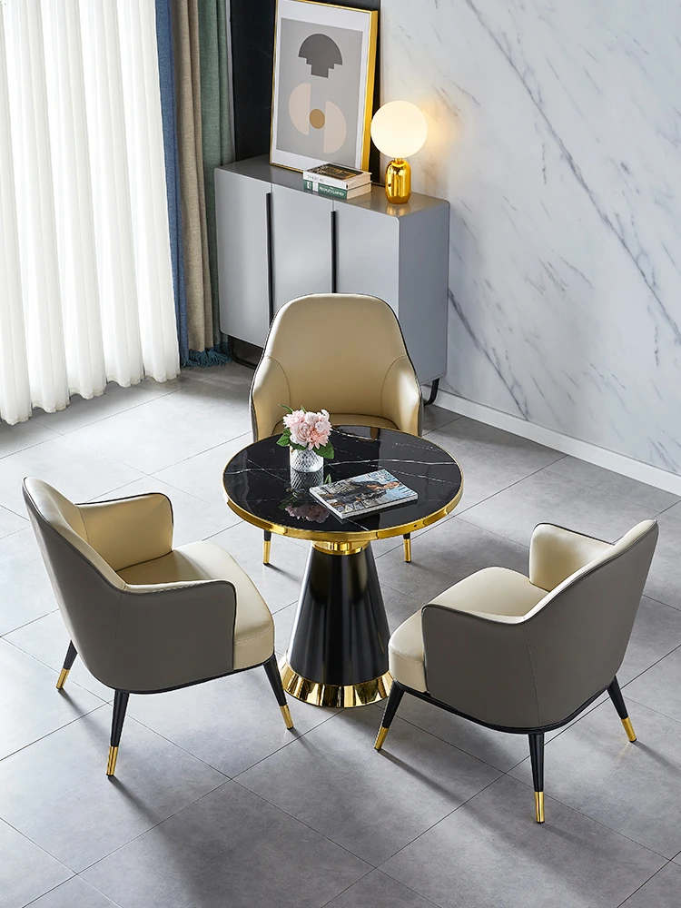 現代的ラグジュアリー大理石製小型円卓&椅子セット - ビジネス接待や商談に最適!店舗での会議や談判にもぴったりなスタイリッシュなデザイン。あなたの空間を格上げするアイテムです!