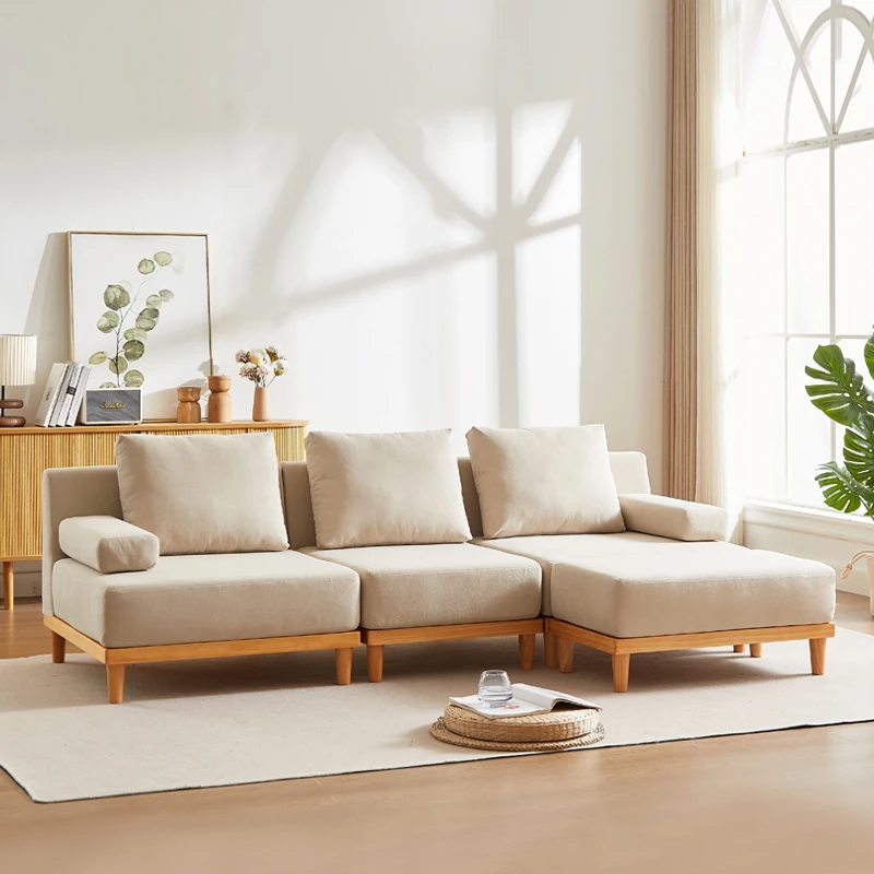 クリーム風リビングモダンミニマリスト小型フレンチヴィラ原木和風リラックス布製ストレートソファー - スタイリッシュで快適な空間を演出!