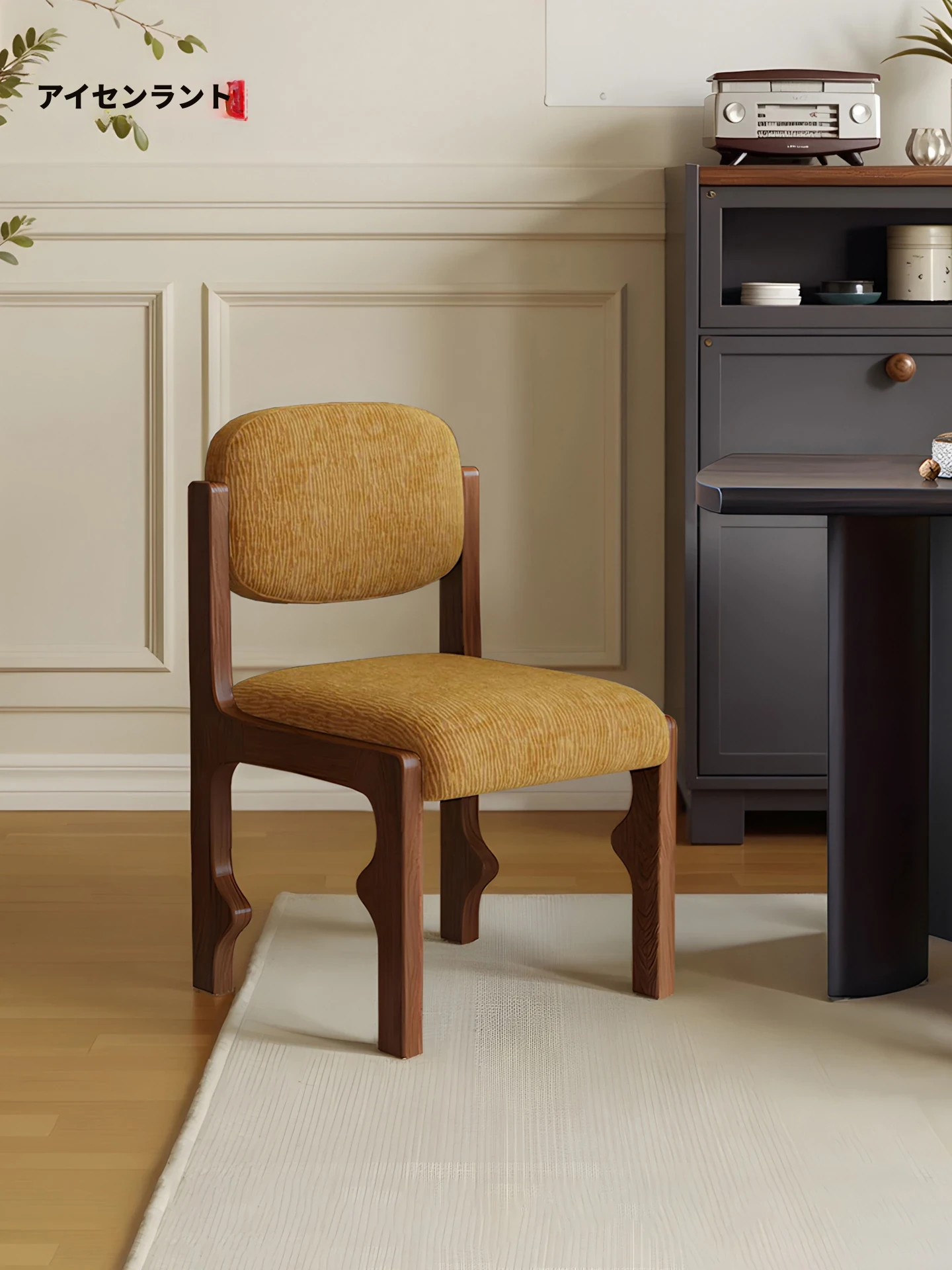 アイセンラントのイタリアンミニマルダイニングチェア - 高級感あふれるデザイン、家庭用に最適な無垢材製。フレンチヴィンテージスタイルのヒッポダイニングテーブルとの組み合わせで、洗練された空間を演出します。