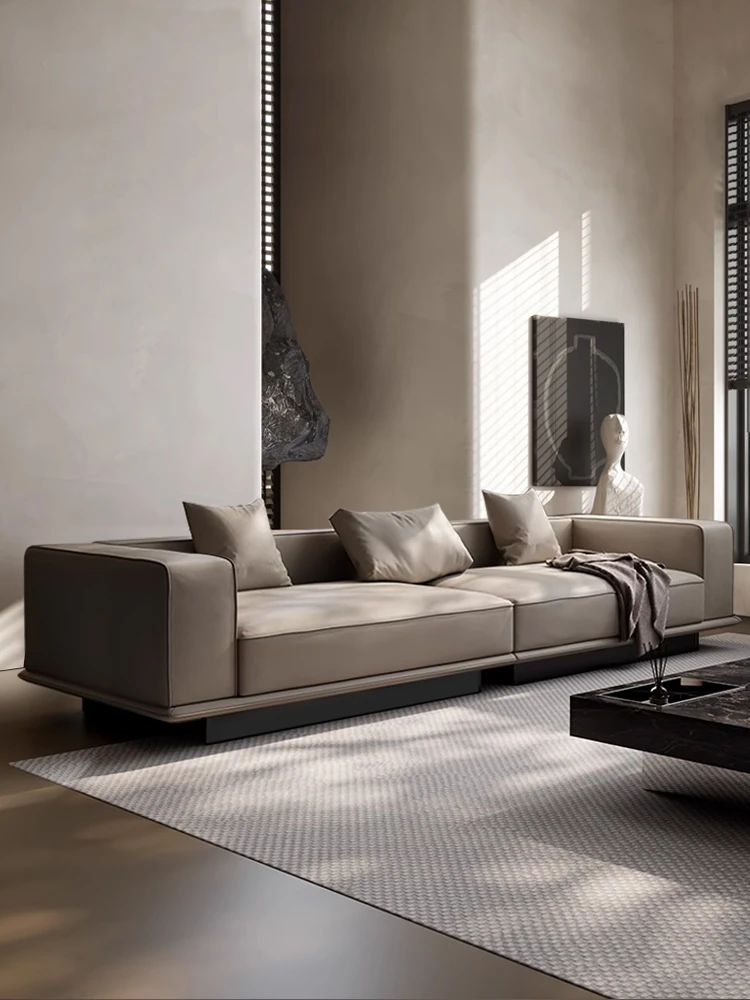 国補新作!イタリアンミニマルデザインの小型アパートメント向けリビング用、猫が爪を研げる皮革製シンプルモダン直置きソファ。狭い空間でもスタイリッシュに!