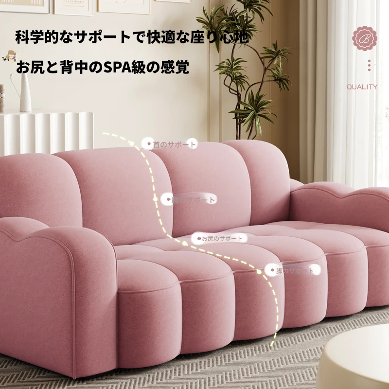 フレンチクリーム風の布製リビングソファ、カジュアルでトレンディなラムフリース使用!シンプルでモダンなデザイン、2人掛け・3人掛け両方対応。おしゃれで快適な空間を演出します。